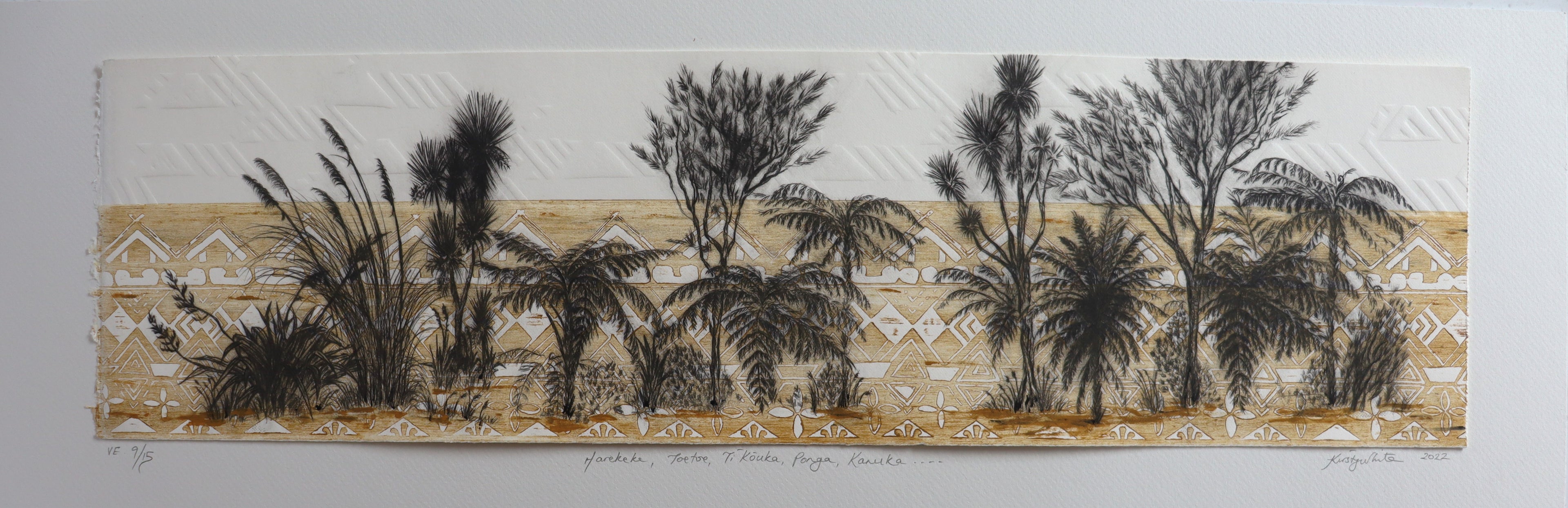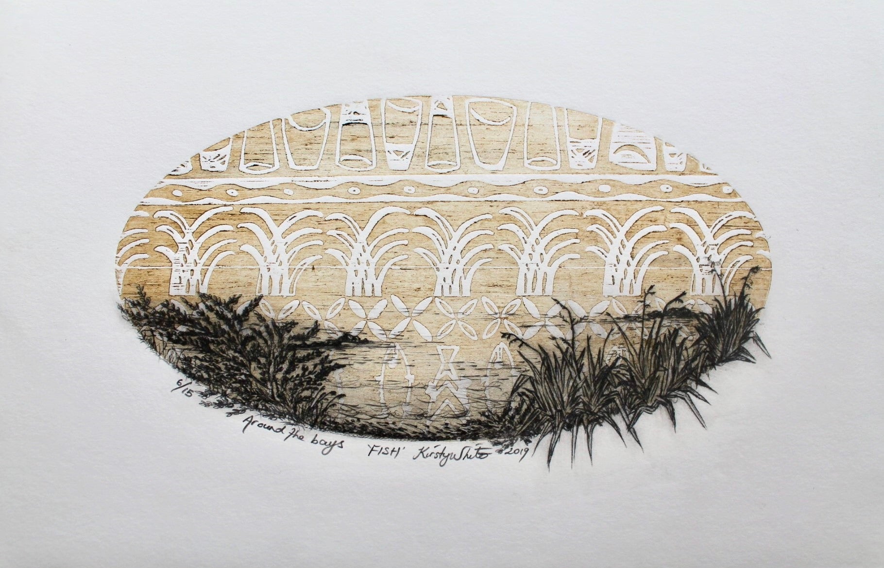 Inspired by Māori whakairo, Fijian masi cloth and Samoan tapa, Kirsty's landscapes are merged with patterning to reflect the history of a site.