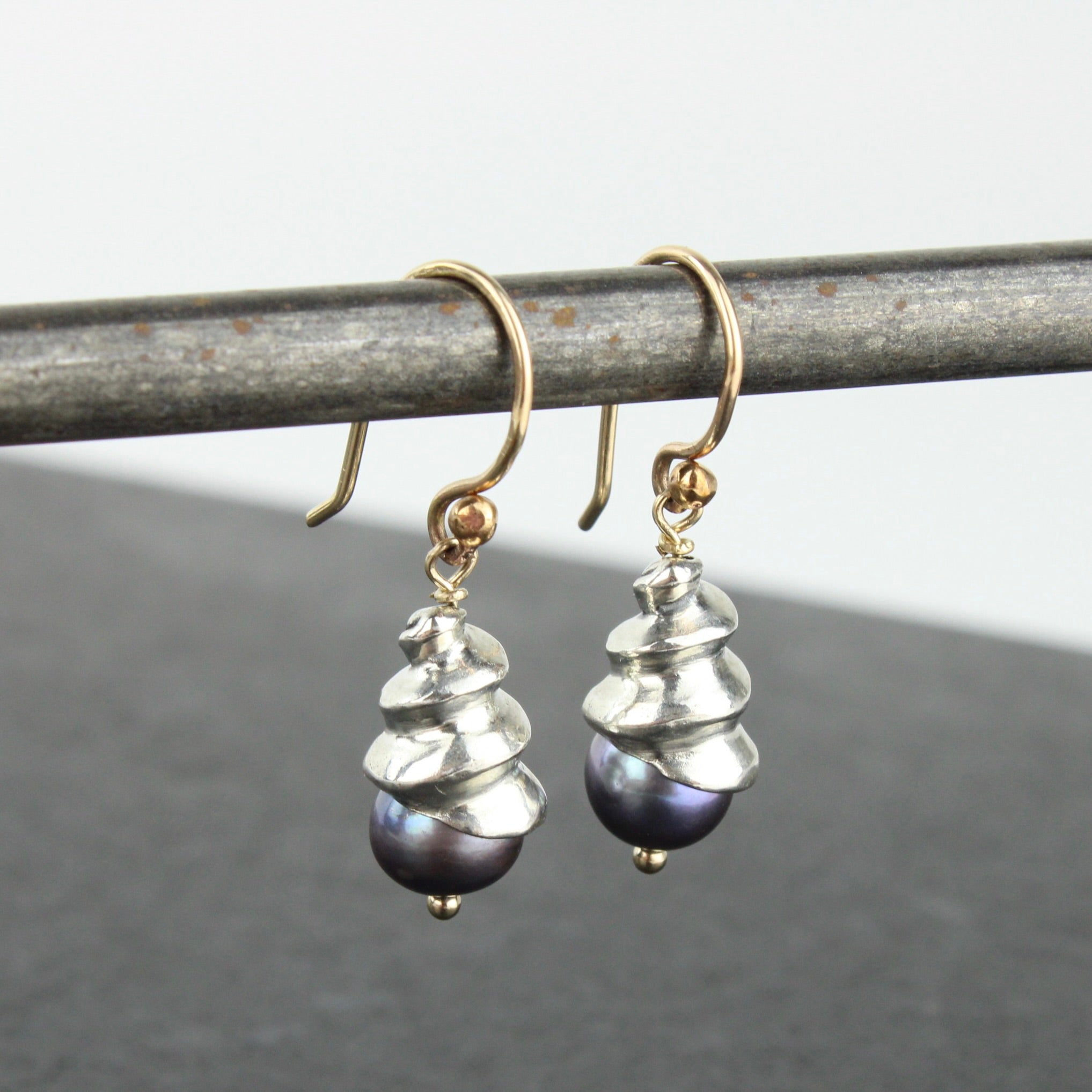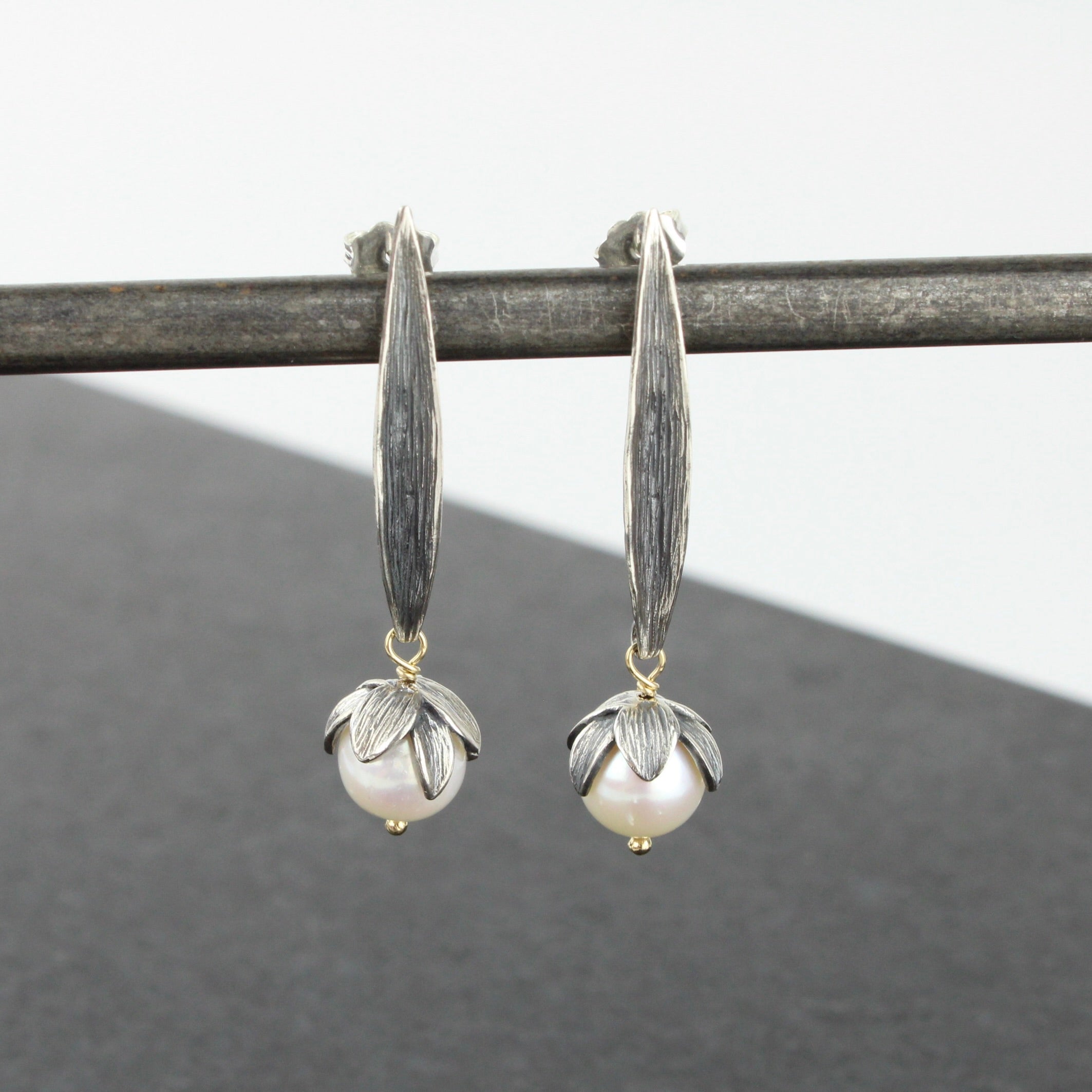 Each intricate design is originally carved from wax. These delicate models are then cast into silver and bronze and each is finished by hand. The sterling silver is oxidized for an antique finish, while the bronze is dipped in 22k satin gold. Chains, clasps, and ear-wires are sterling silver or 14k rolled gold. Many items are also embellished with an array of high-quality freshwater pearls or semiprecious stones. Louise Douglas Jewellery takes pride in the high quality and hand finishing of all their pieces.