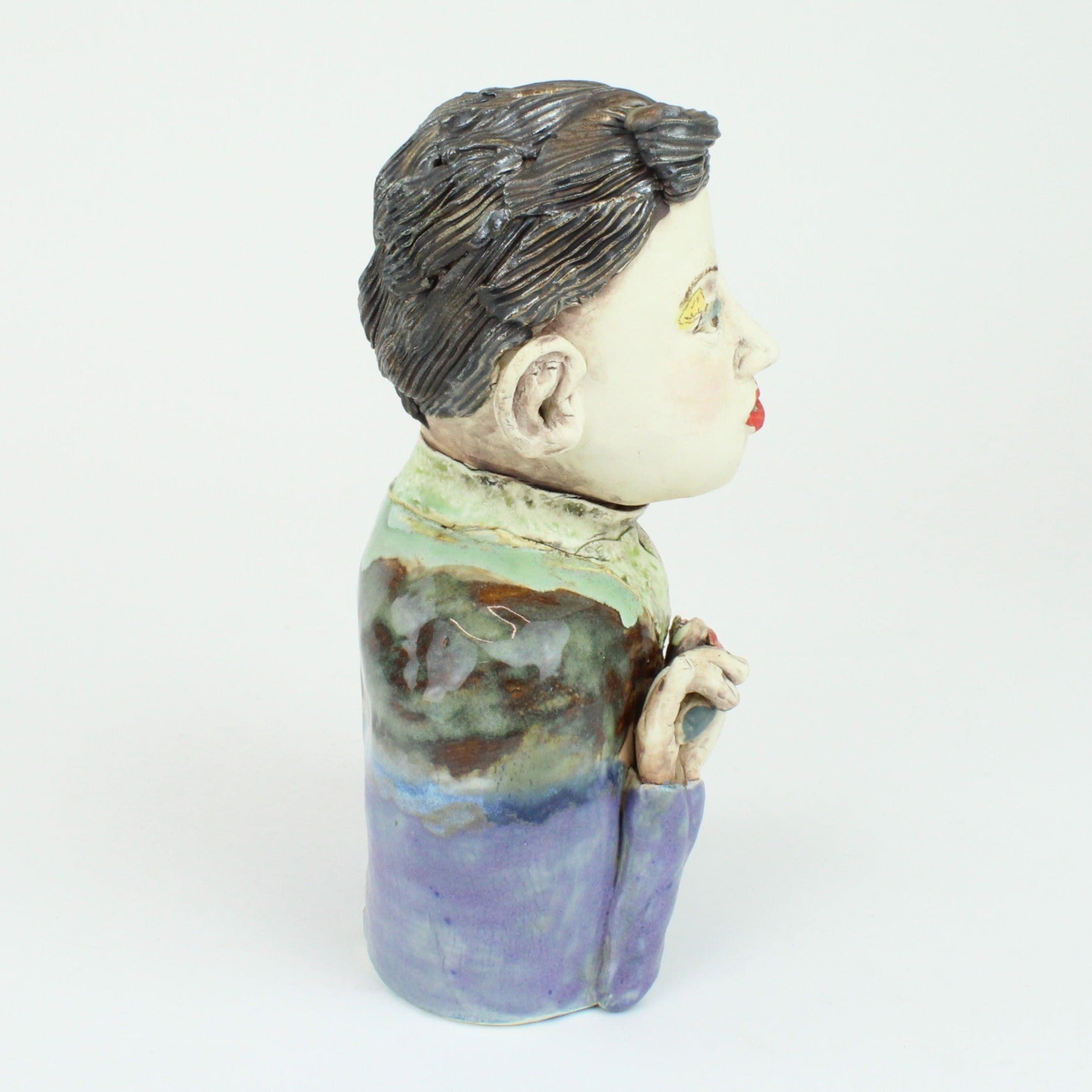 'My sculptures are response to my inner-talk where I choose subjects that speak to me visually and a process that unfolds like a layered revelation. I aim to create timeless pieces carefully elaborated with story-telling details. Through my small desk-top size studies, I hope to provoke conversation and cheer.' - Nachiko Schollum