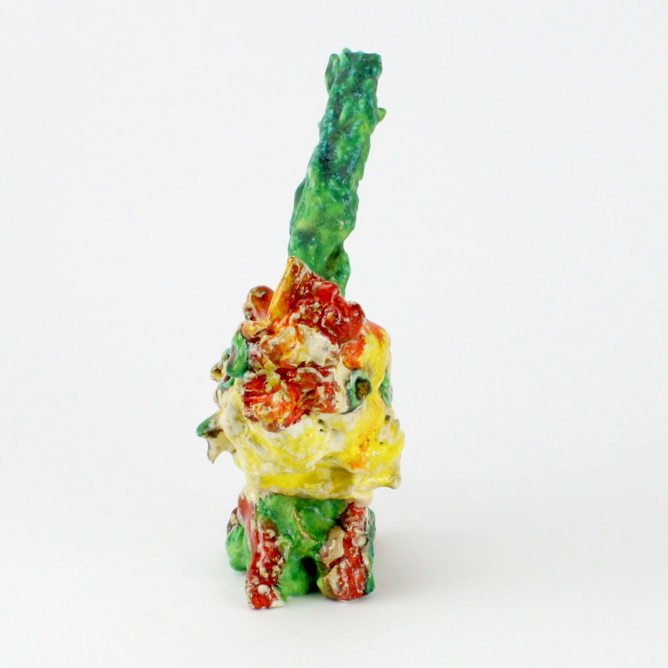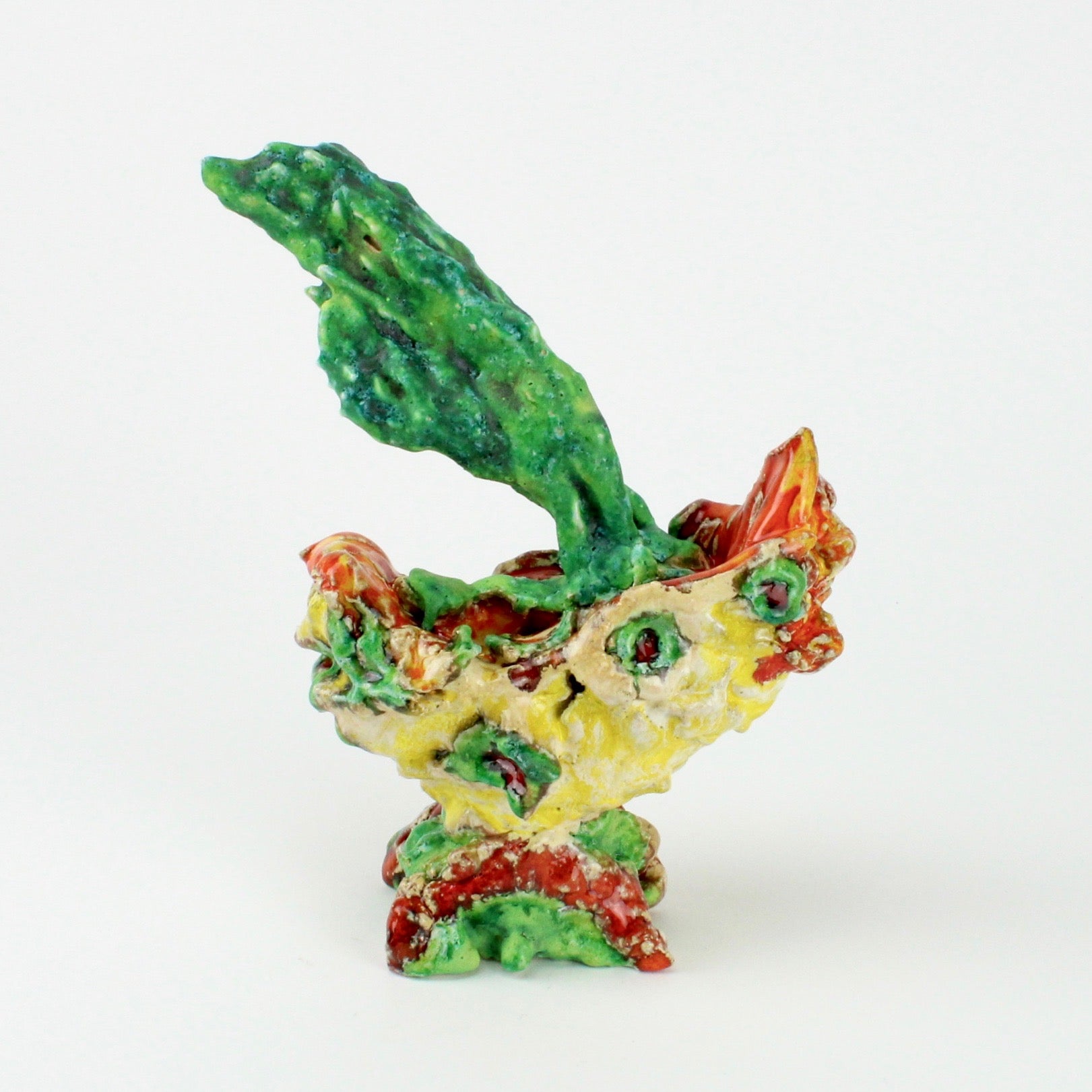 'Flotilla started with been given a tiny piece of old boat washed up on Aramoana Spit [Otago], which consisted of a water worn wood with a copper nail sticking out giving some sense of a mast and I mounted on a piece of clay. It gave a sense of a sea faring vessel tossed a round in the sea of life.