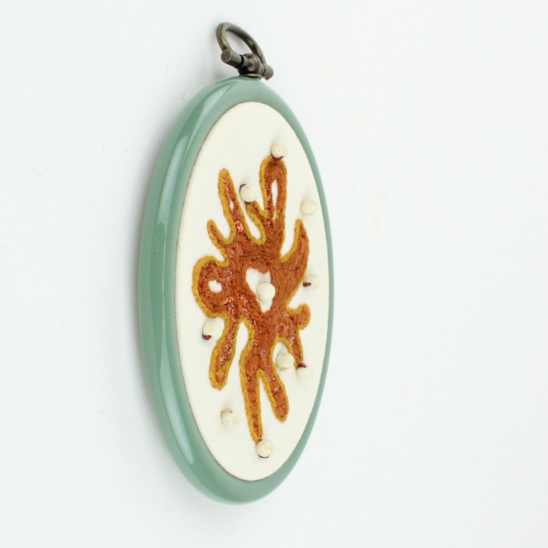 Vintage embroidery hoop, vintage cotton, cotton thread, metallic thread, beads