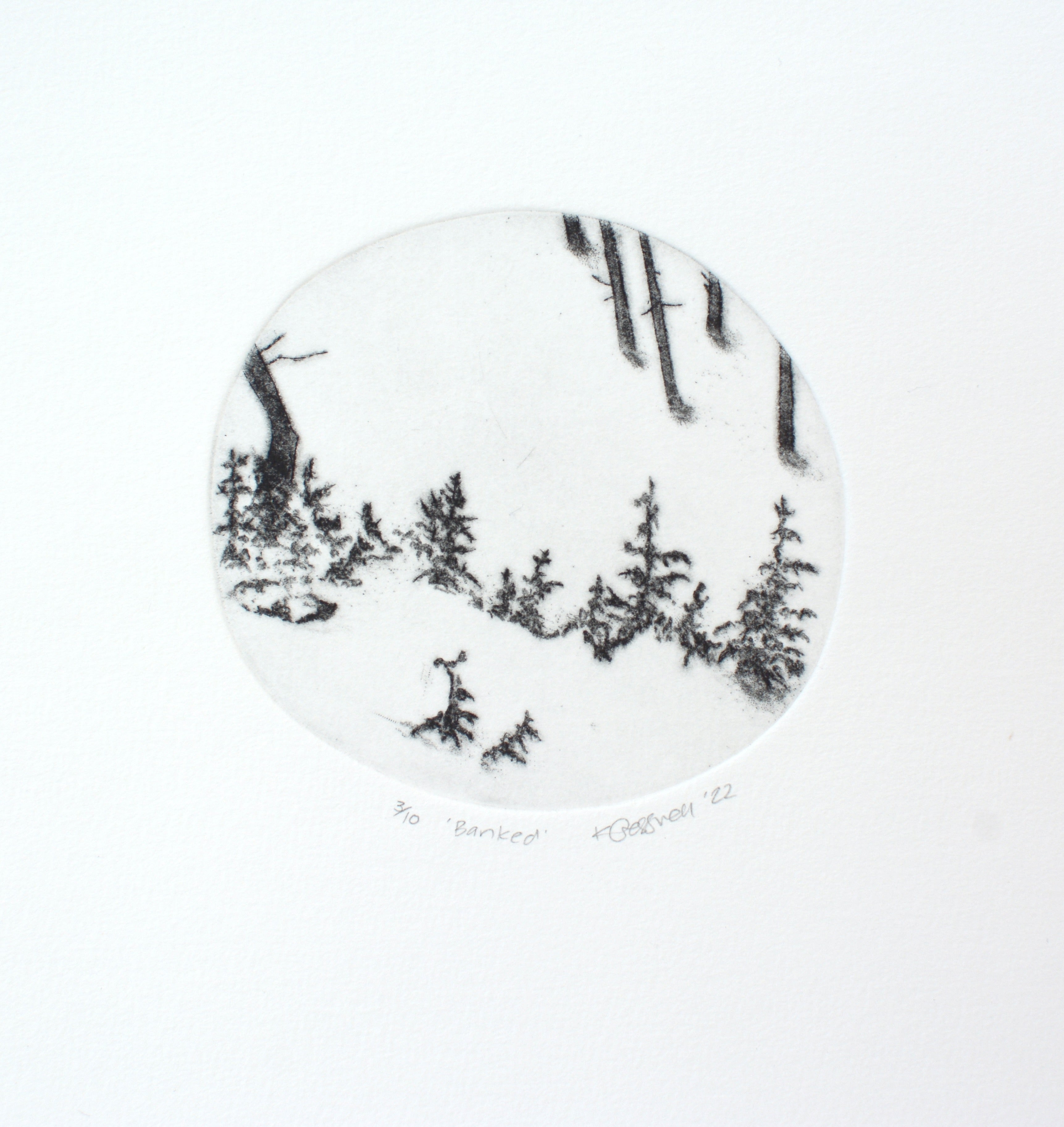 Kyla’s delicate work explores the physical impact of the elements on the environment as well as the consequences of human occupation of the land. Working mainly in mezzotint and drypoint, she strives to find a sense of stillness and a quiet celebration of nature.