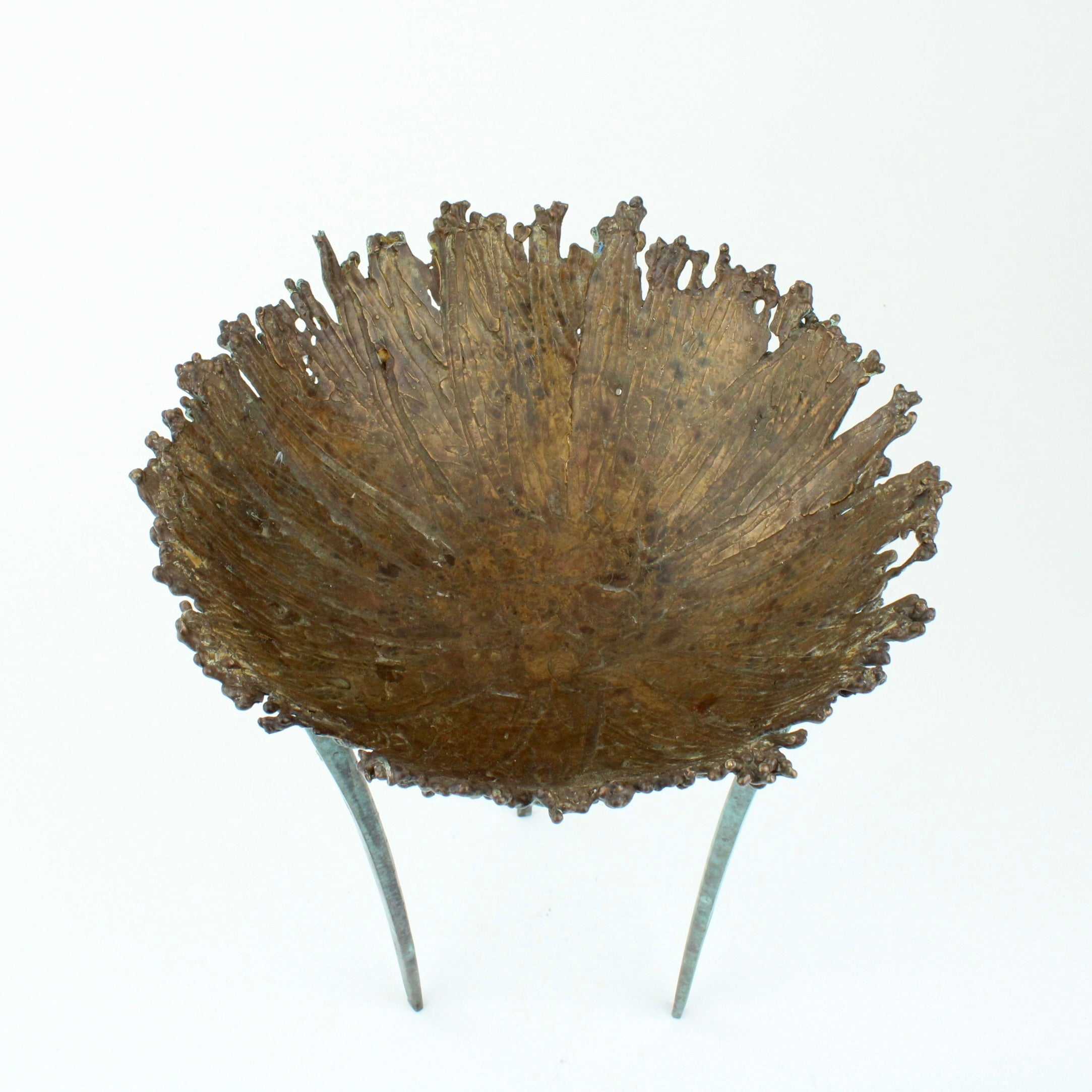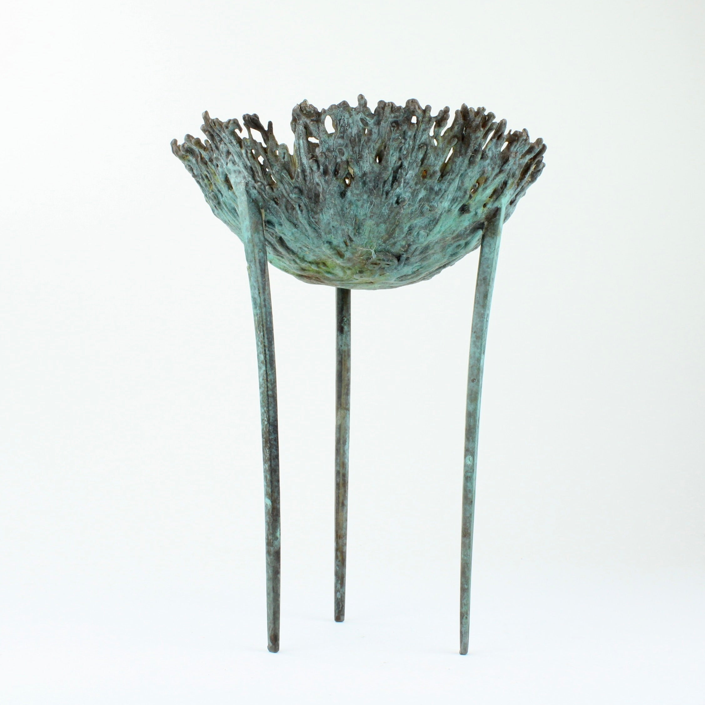 John Tullett is a former art teacher with a bachelor of Fine Arts. His bronze casting technique is a careful, multi-step process. Each piece begins as a wax model coated in layers of ceramic shell. The wax is melted out, and the mould is fire-cured. Bronze is heated to 1150°C in a gas-fired furnace and poured into the mould. As it cools, the shell breaks away. The casting is then fettled with files and sandpaper, and chased to refine surface textures and correct imperfections. After partial polishing and colouring with copper-reactive chemicals, a protective wax is applied. John works in batches of ten to twelve, with each batch requiring approximately sixty hours to complete.