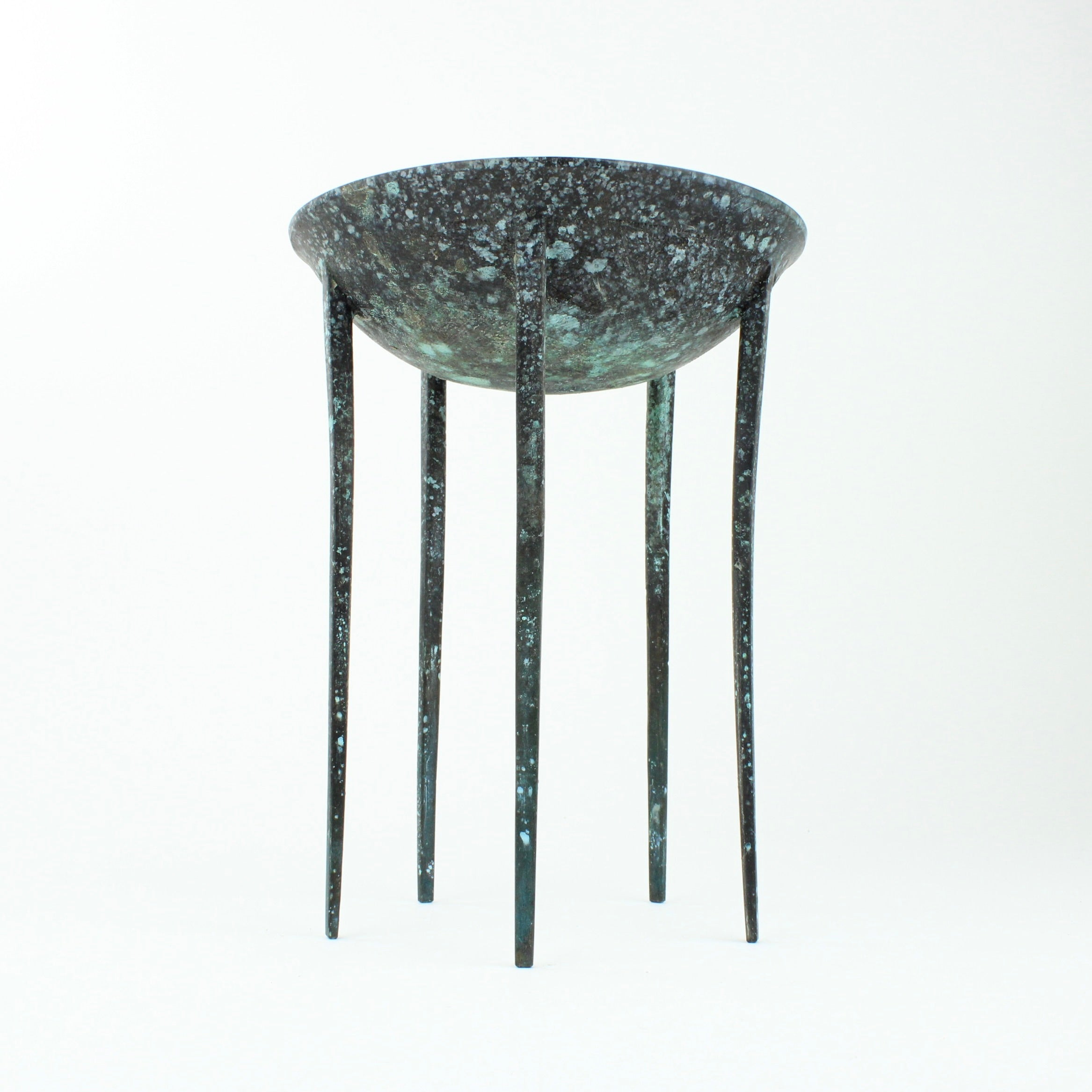 John Tullett is a former art teacher with a bachelor of Fine Arts. His bronze casting technique is a careful, multi-step process. Each piece begins as a wax model coated in layers of ceramic shell. The wax is melted out, and the mould is fire-cured. Bronze is heated to 1150°C in a gas-fired furnace and poured into the mould. As it cools, the shell breaks away. The casting is then fettled with files and sandpaper, and chased to refine surface textures and correct imperfections. After partial polishing and colouring with copper-reactive chemicals, a protective wax is applied. John works in batches of ten to twelve, with each batch requiring approximately sixty hours to complete.