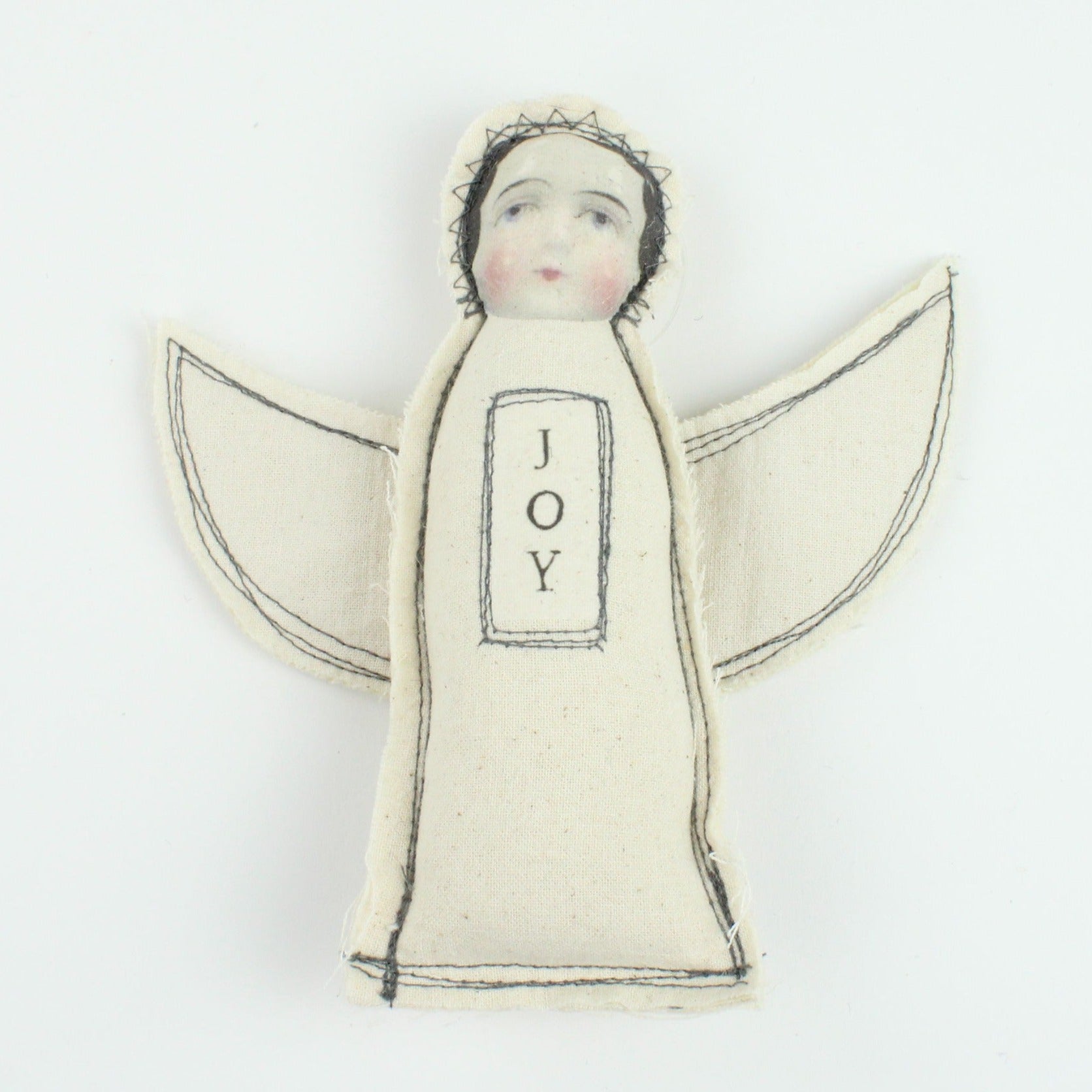 'Christmas angels were one of the first things I started to make when I wanted bespoke christmas decorations with a pared back, modern country kinda vibe. They are not perfect and neat, nor are they meant to be. They are perfectly imperfect, with a slightly wonky stitching and a delicious bit of frayed edge here and there. They have a small fishing line loop out of the tops of their heads so they can be hung on the tree or wall. I've also been known to stuff them into old pewter or silver candle stands or egg cups and stand them amongst the greenery.'