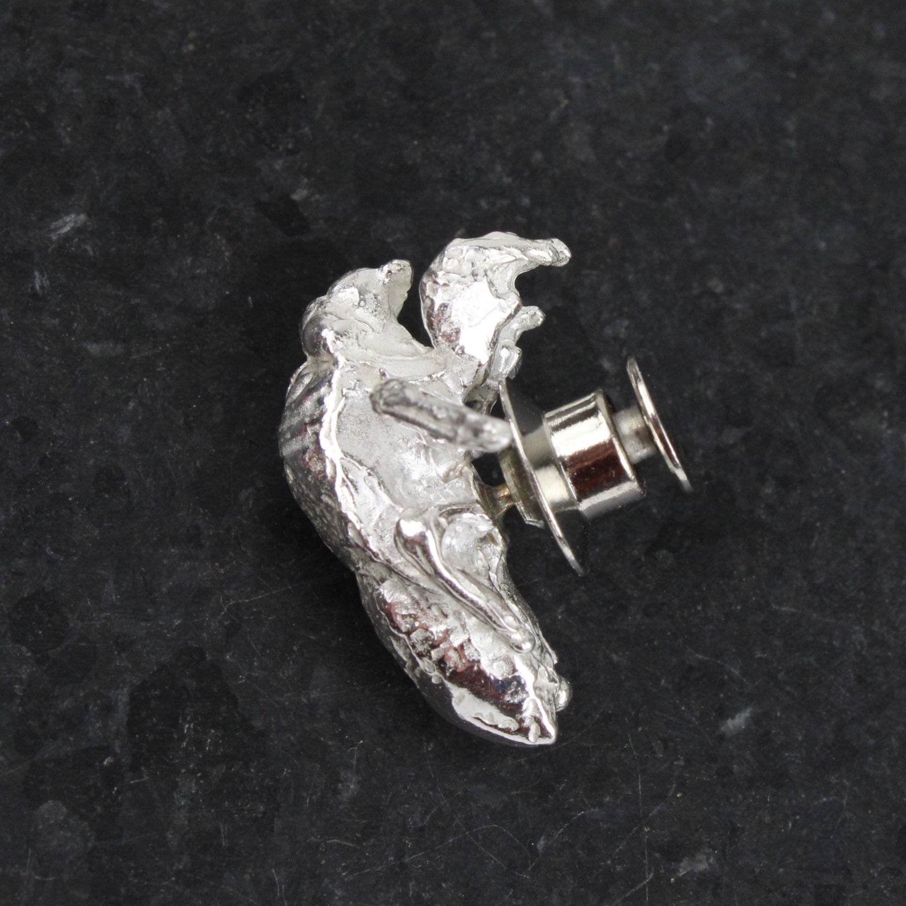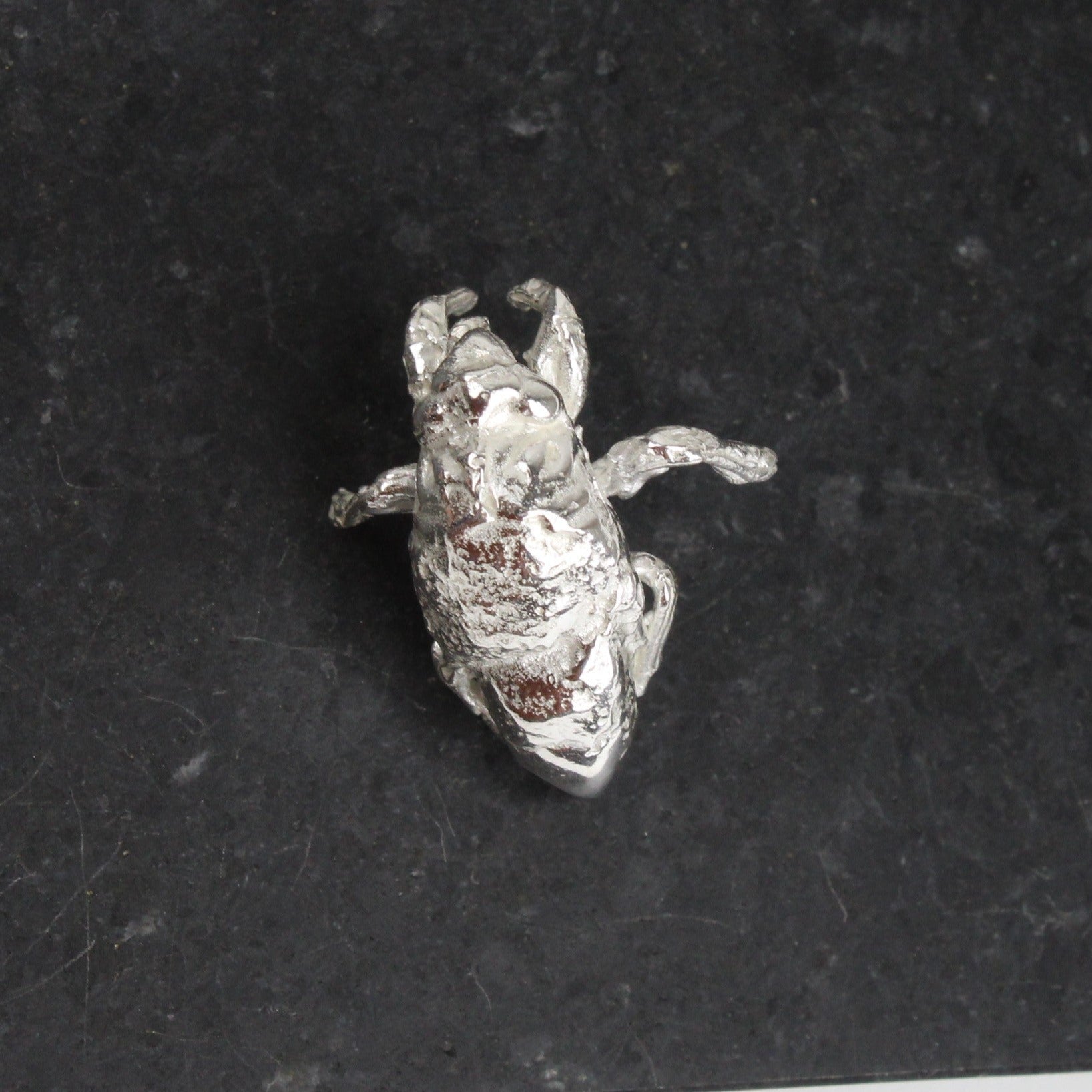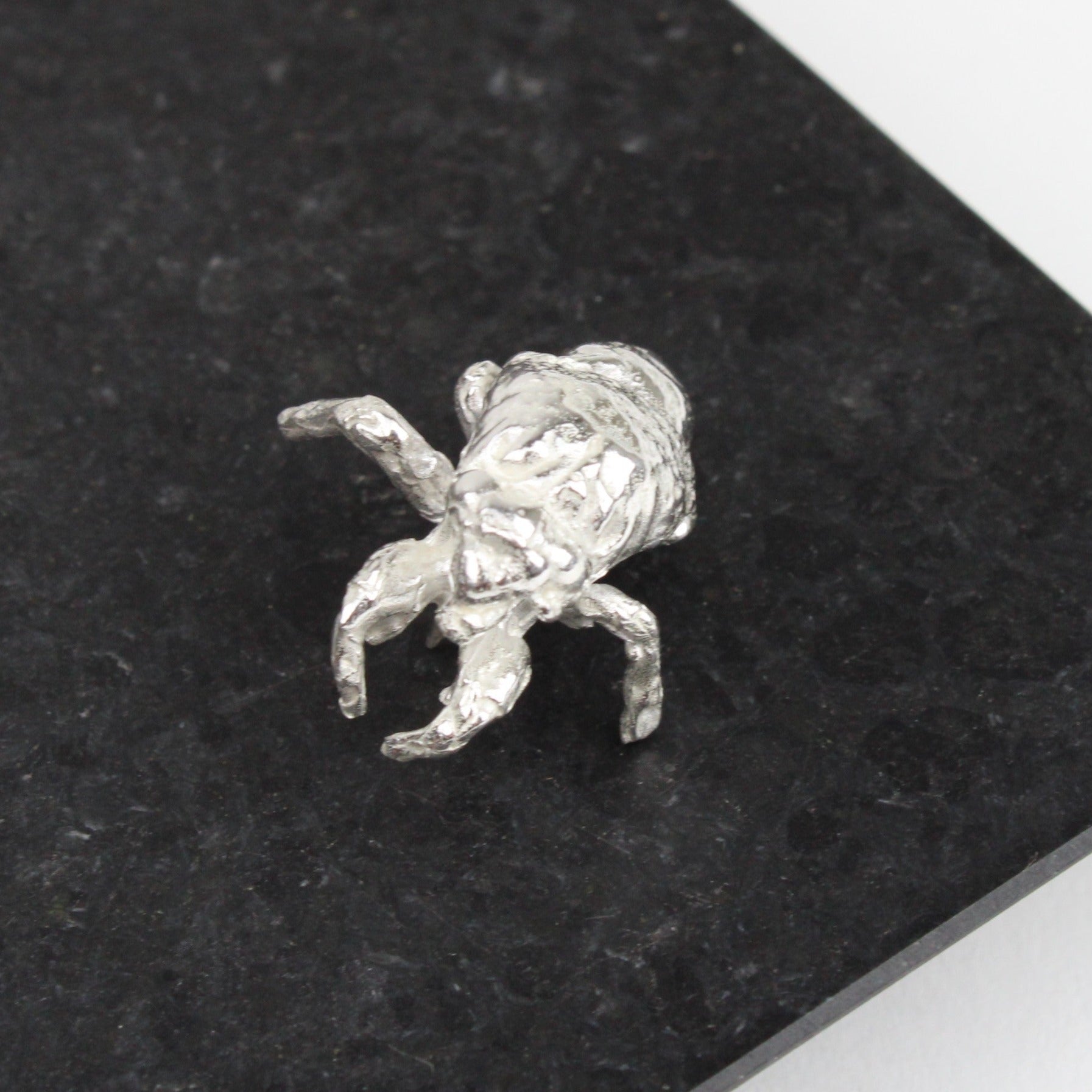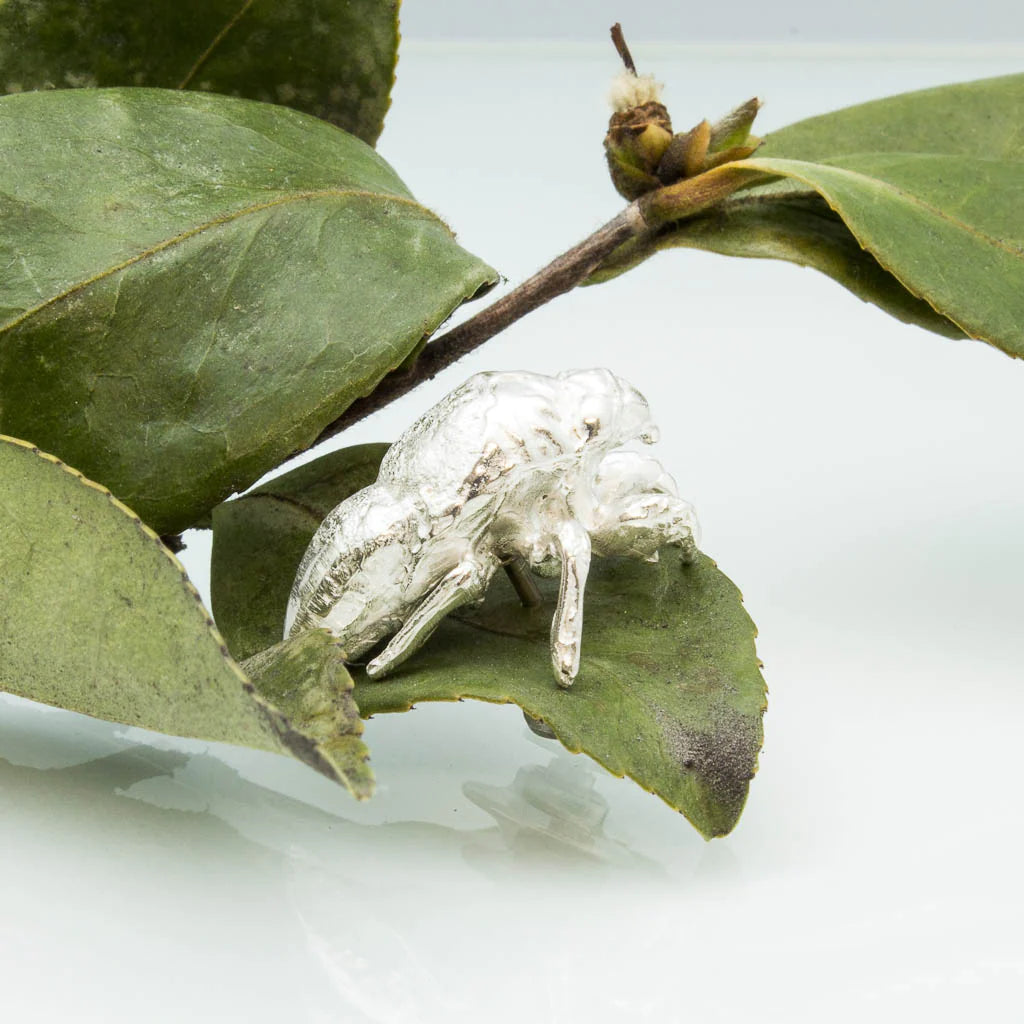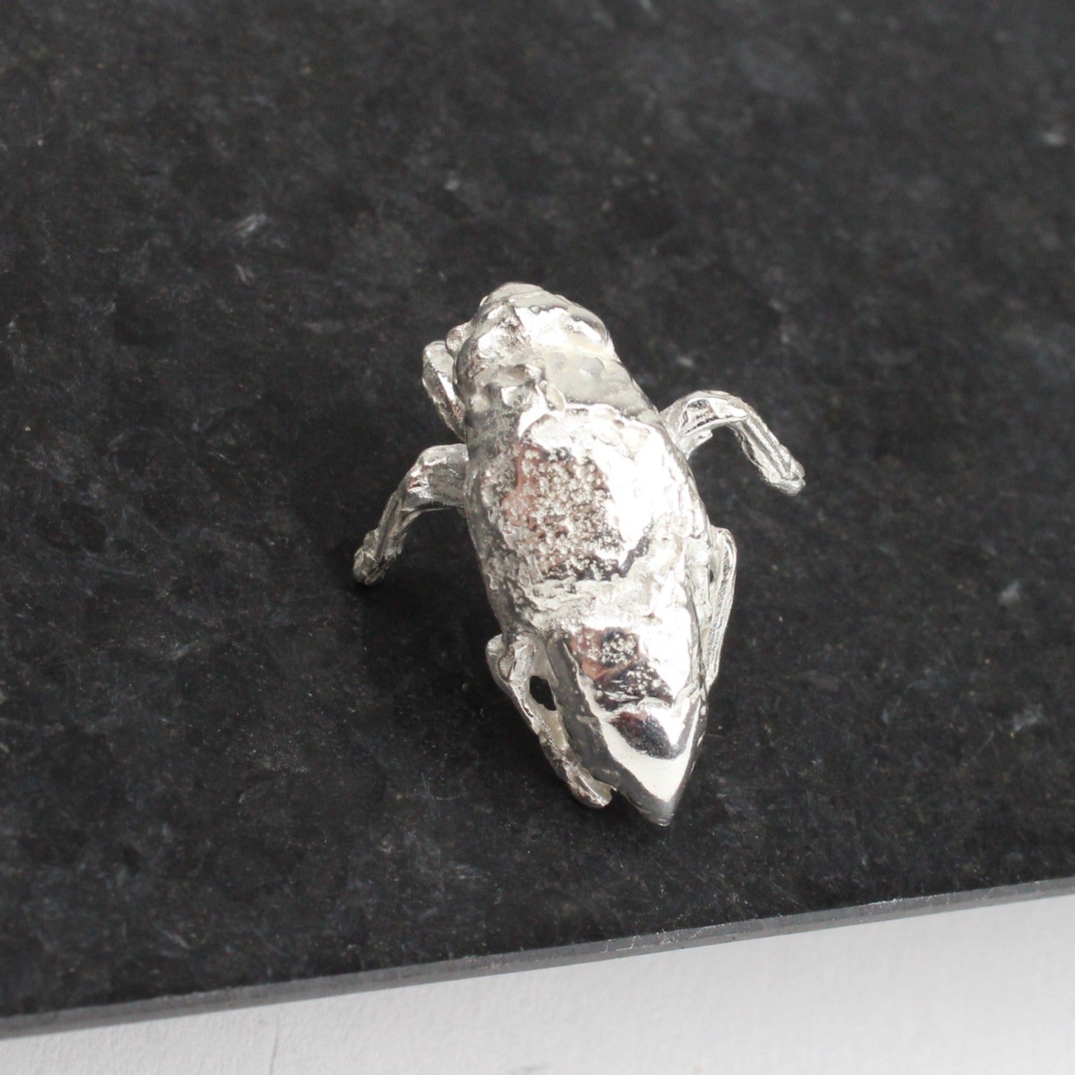 A single pin made from the shed shell of a cicada/kihikihi - hand cast in solid sterling silver.