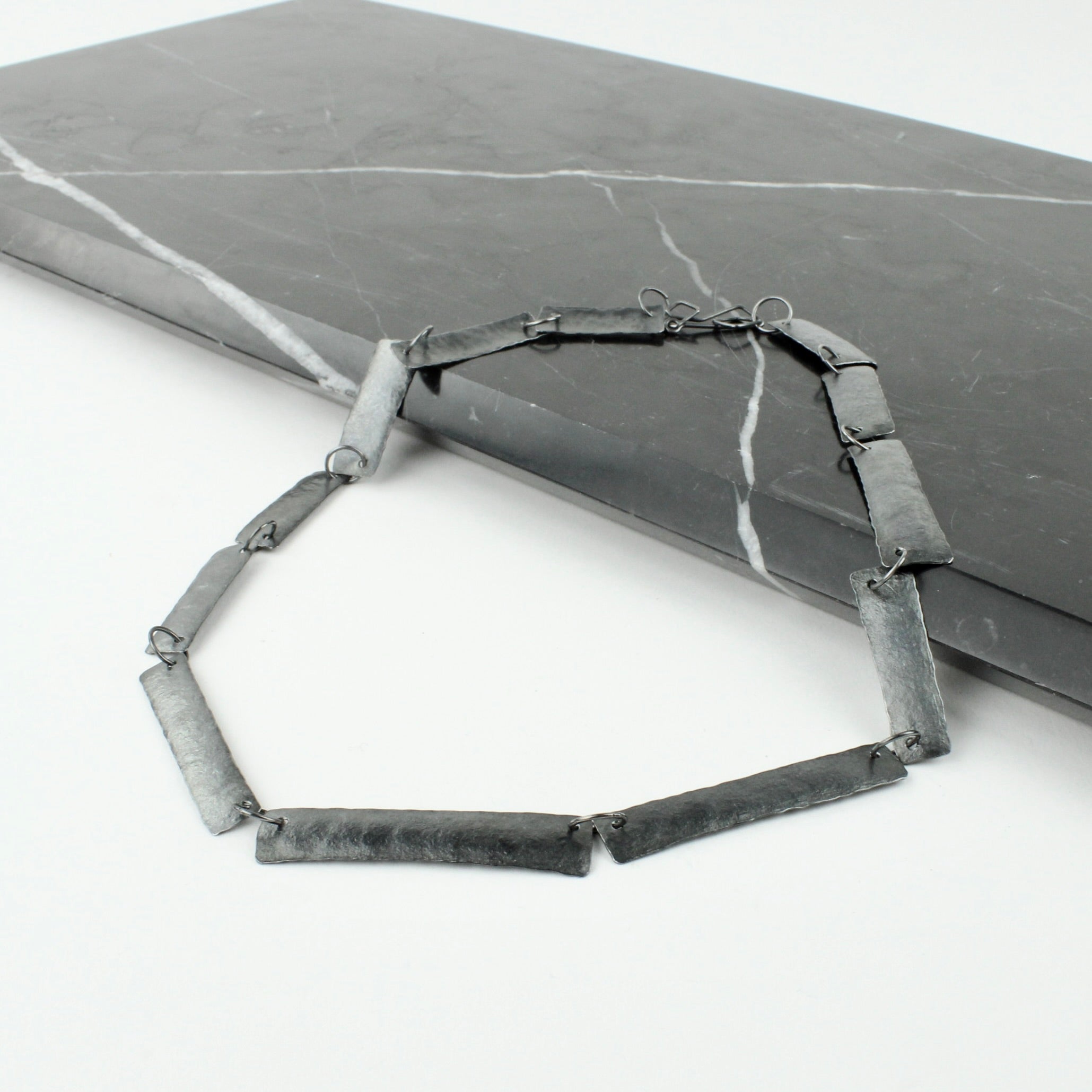 Ilse-Marie Erl enjoys exploring the tactile qualities of jewellery and playing with rhythm and texture. She finds inspiration for her work in her immediate environment where she moves between a busy urban life and a beautiful natural habitat. These urban and natural formal qualities are reflected in her designs.