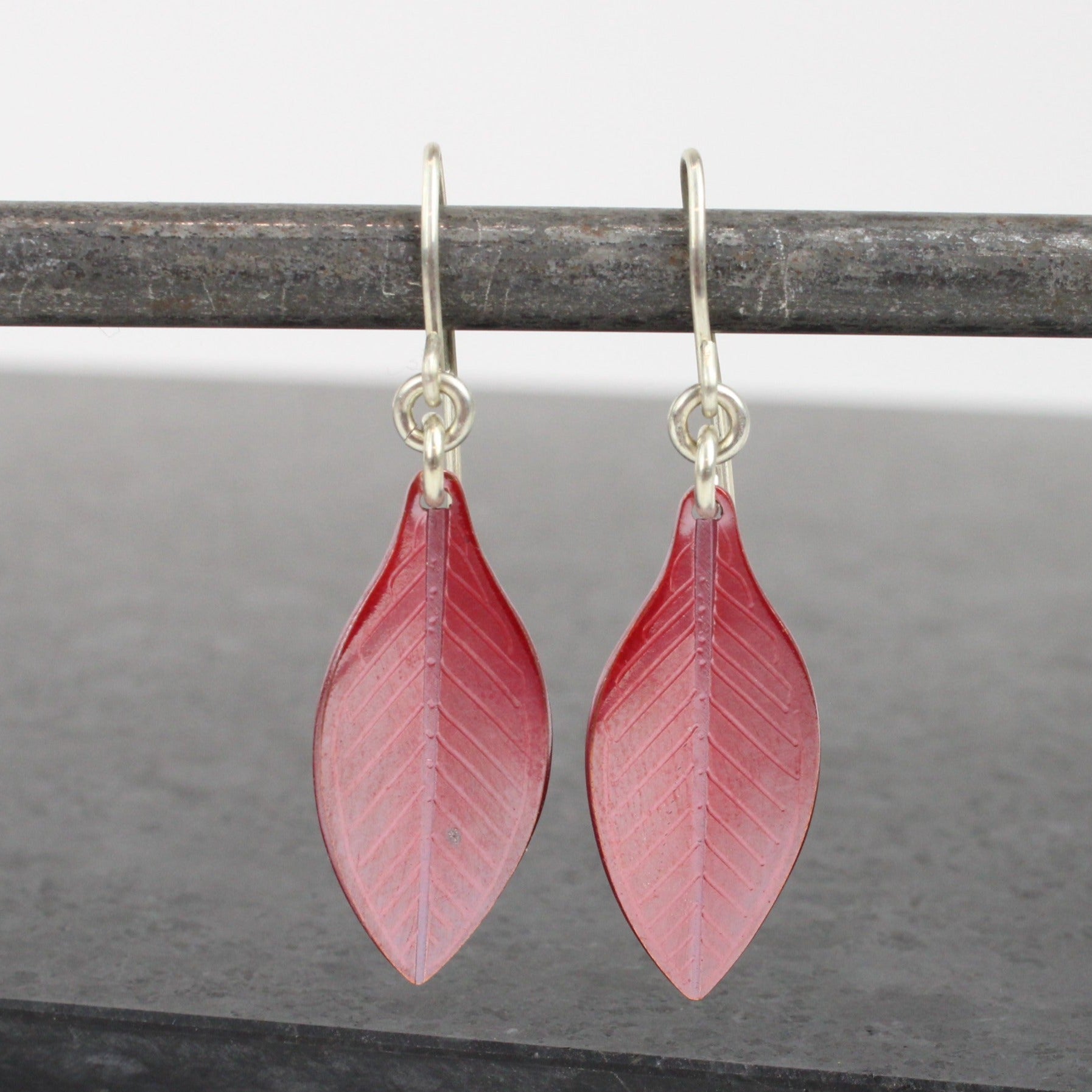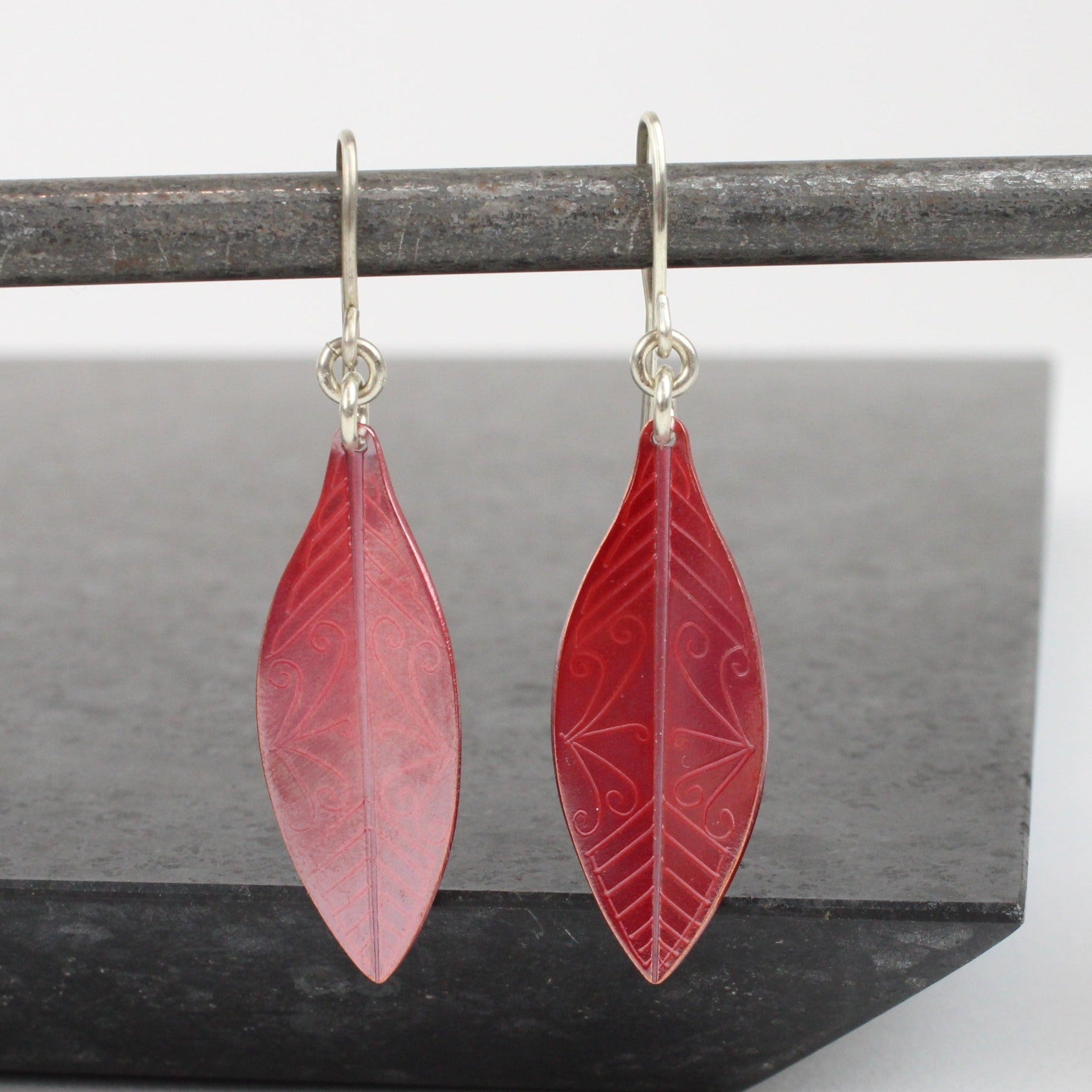 Rata sterling silver earrings by New Zealand jeweller Duncan MacKay. Rata earrings are either scribed with the traditional leaf lines or ornate lines.