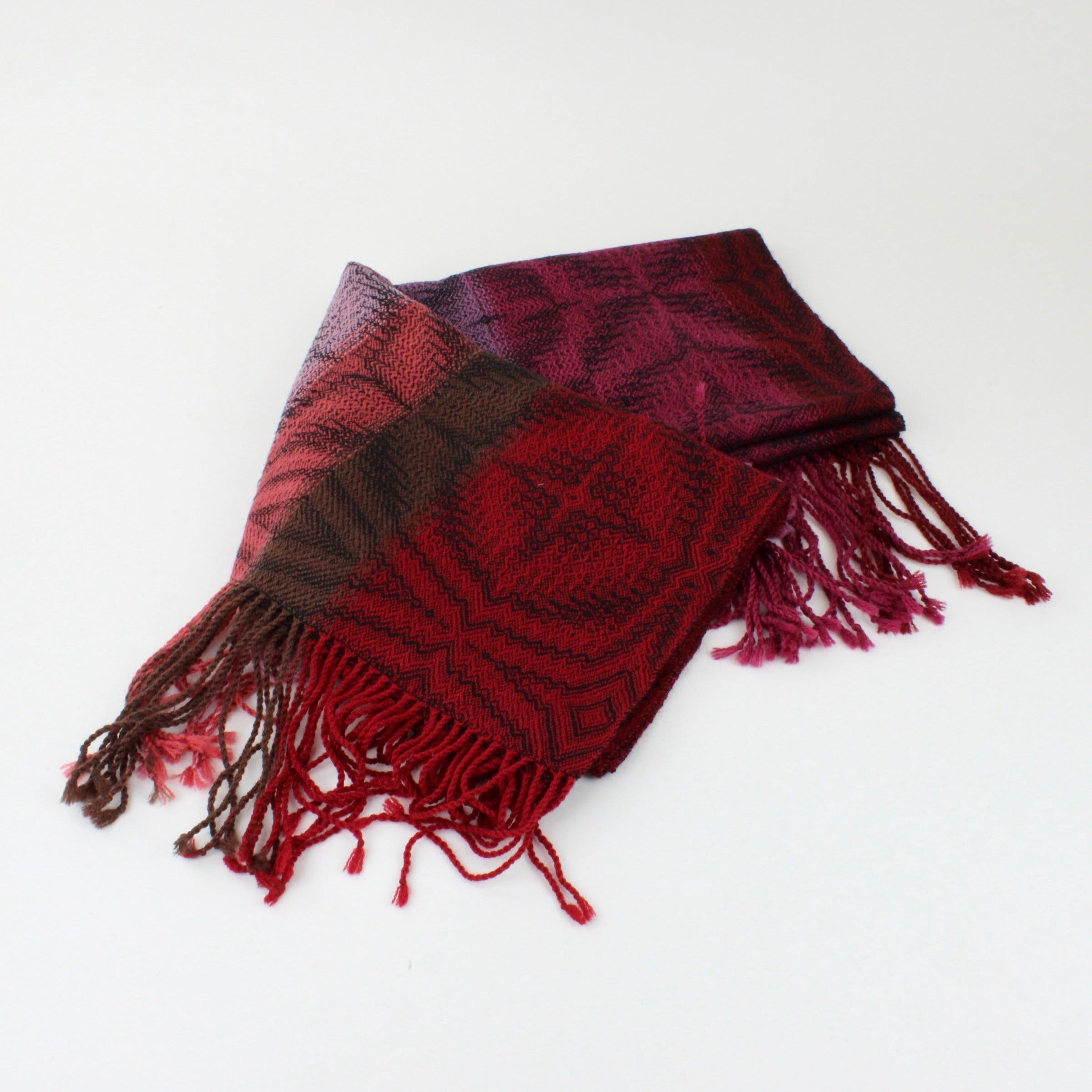 Individually handwoven on Dianne Dudfield's domestic loom. Dianne prides herself on supporting NZ producers of fibre. The yarns are all hand dyed in a method developed by Dianne making each piece unique.