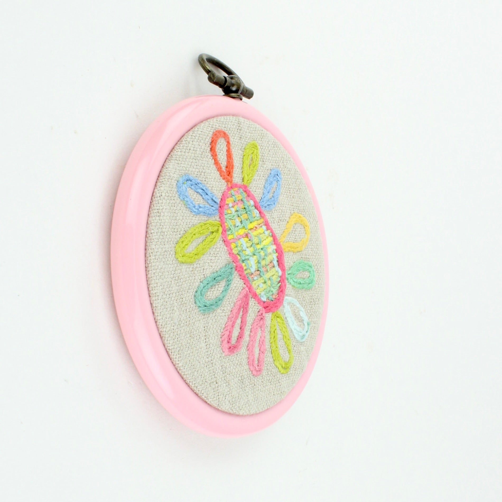 Guided by a commitment to sustainability, Hannah’s creative practice embraces vintage materials, breathing new life into forgotten fabrics and colourful embroidery hoops. Her work reflects a harmonious balance between nature’s impermanence and her dedication to preserving its essence.