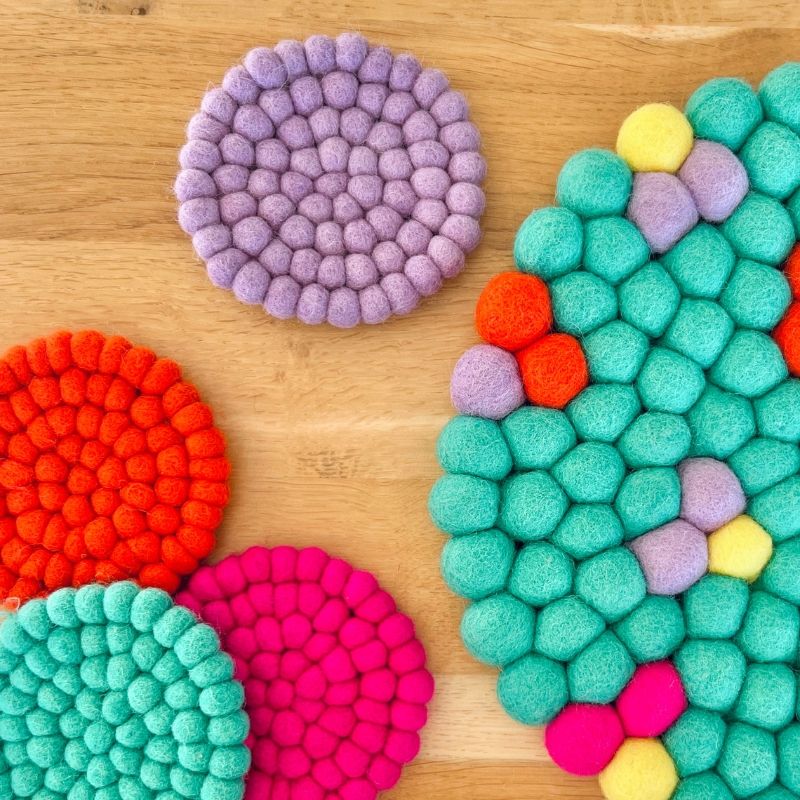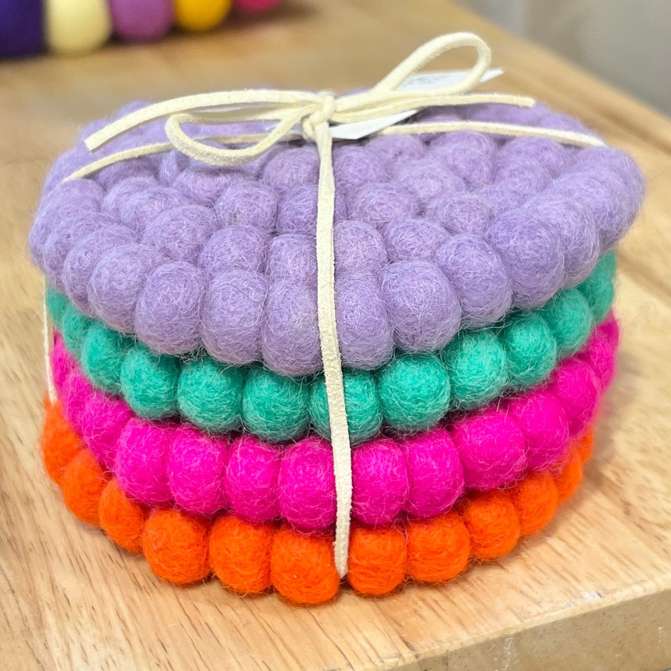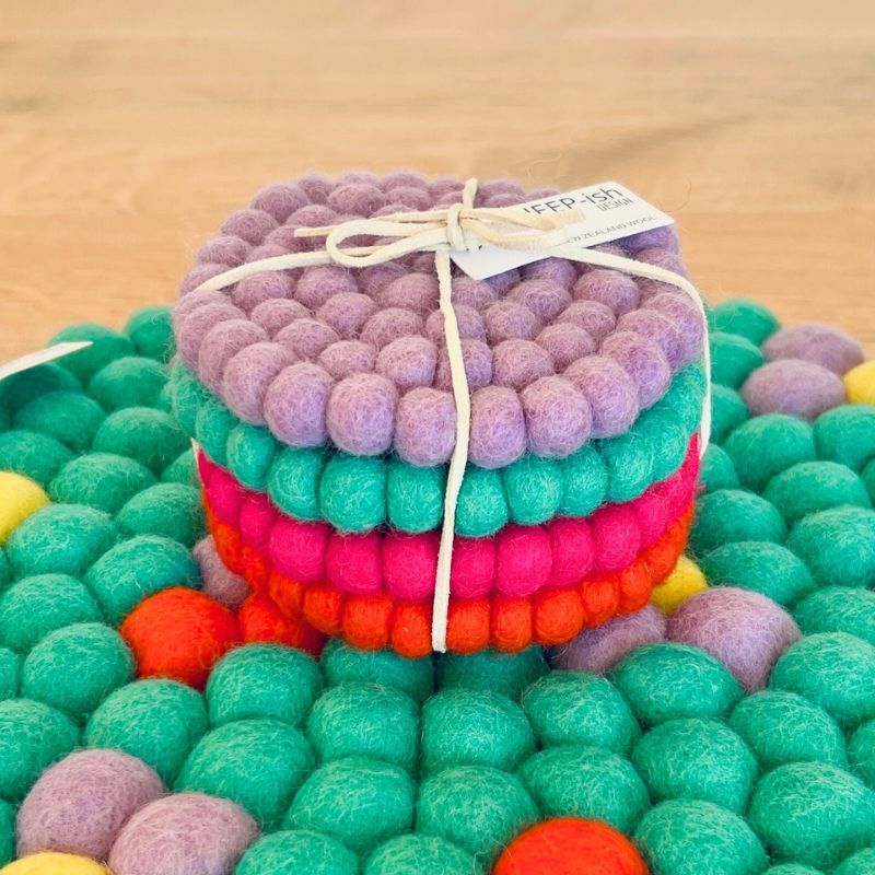 Home/Sheep-ish Design/Felt ball coasters - Bright Stack