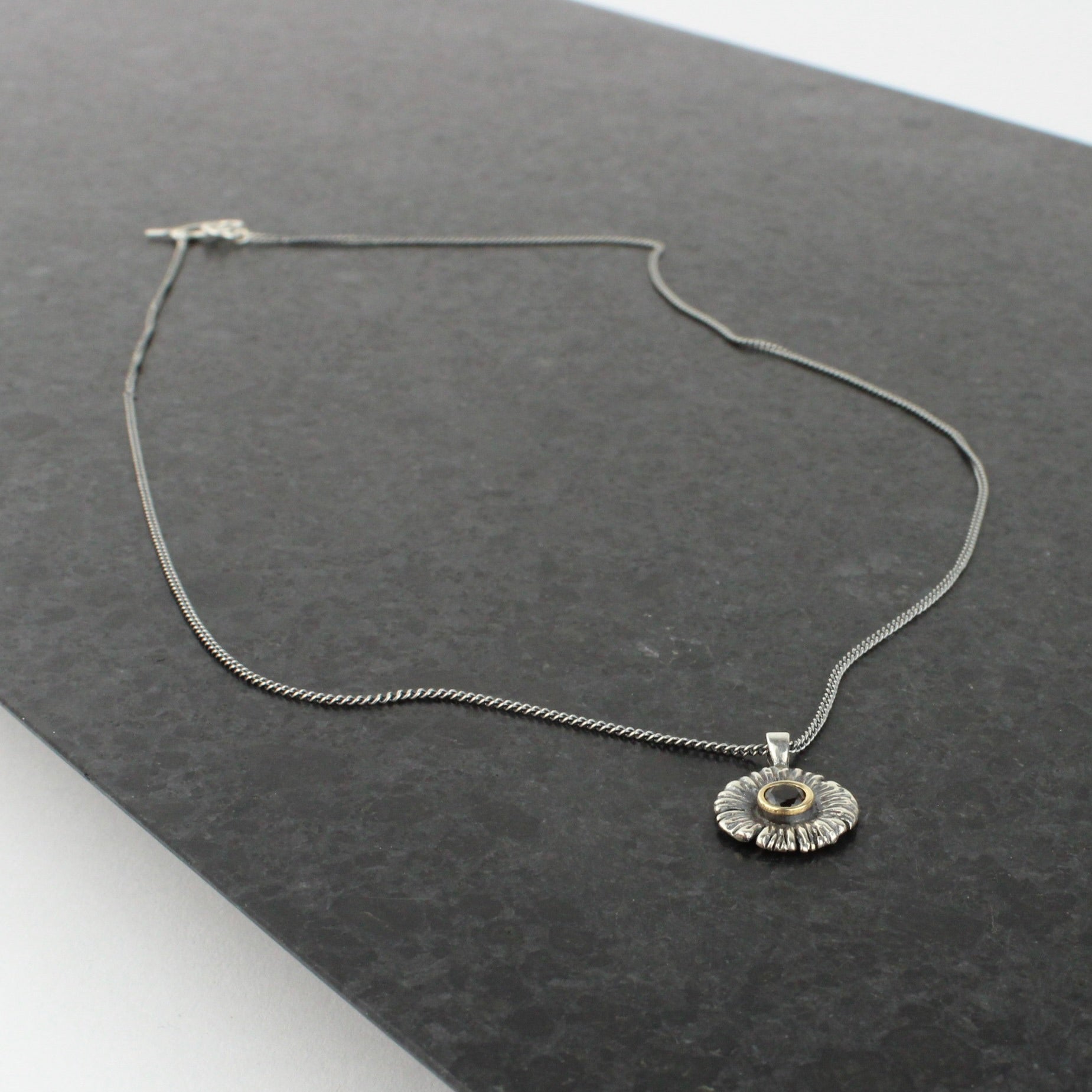Mirroring the organic shapes of woodland fungi, this artisan sterling silver necklace features a smoky topaz set in 9ct yellow gold. It embodies earthy charm and timeless elegance, serving as a subtle reminder of the enchanting beauty of the forest. This necklace is perfect for those seeking unique and nature-inspired jewellery by New Zealand jewellery, Louise Douglas.