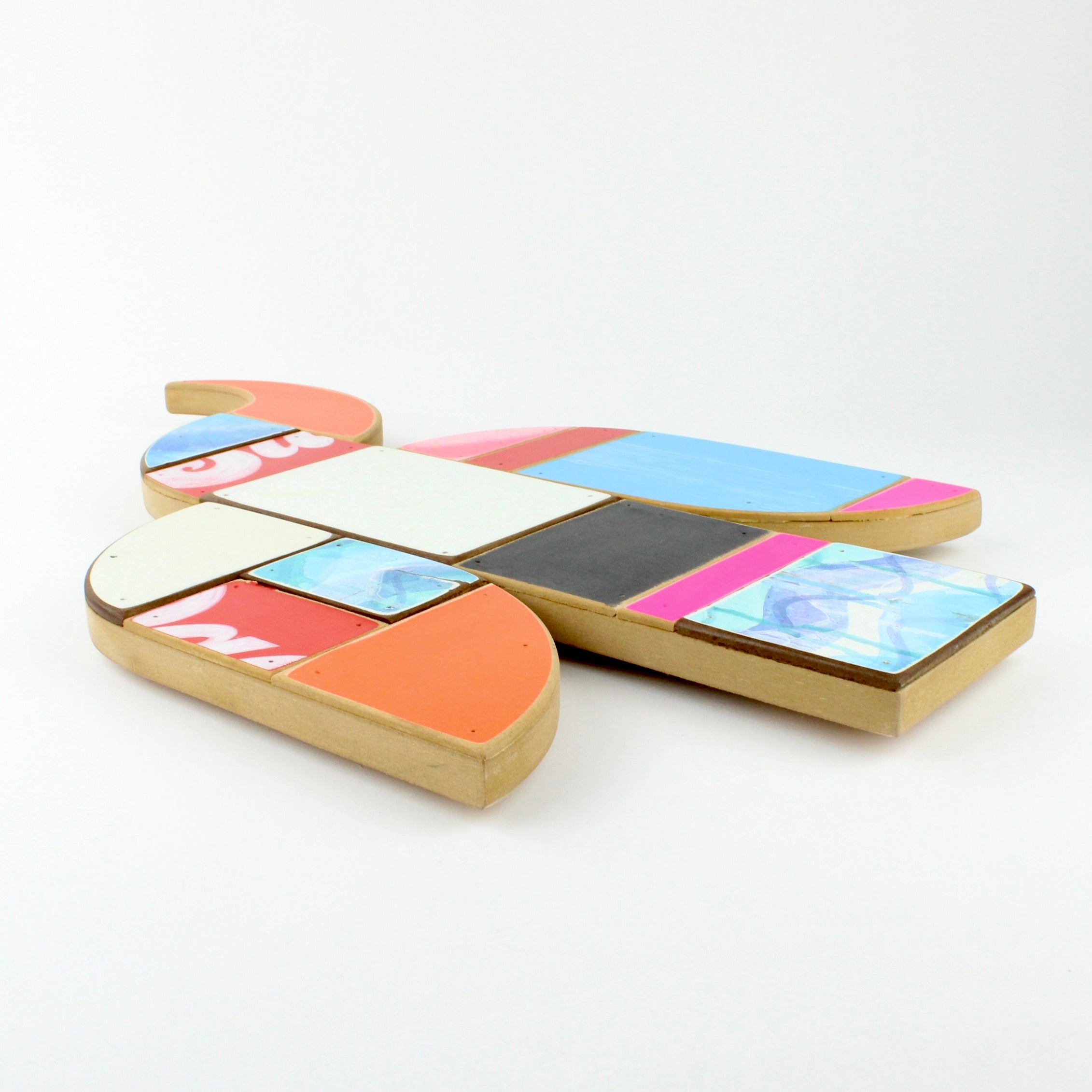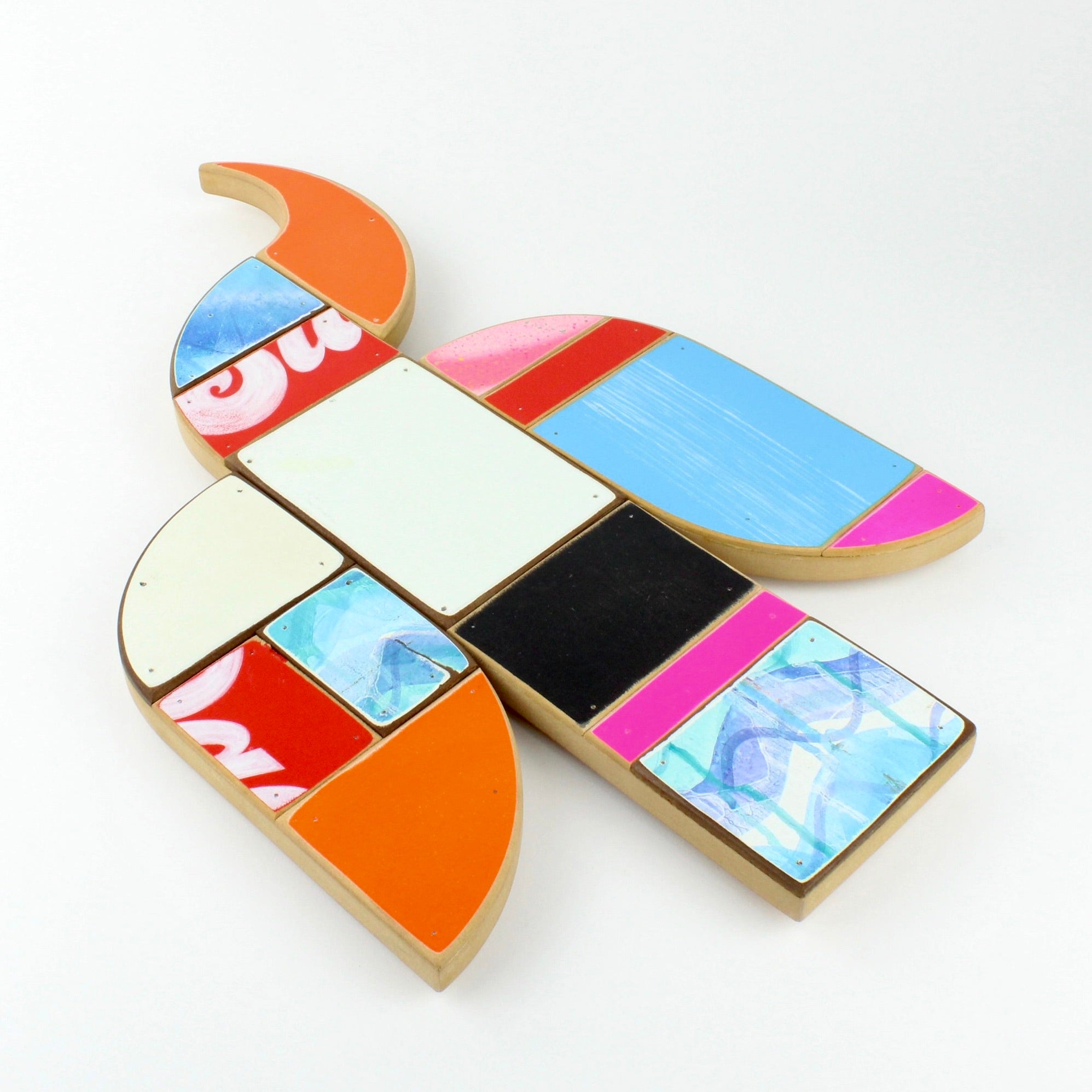 Utilising recycled timber, graphic design methodologies and elegant brush work, Tony Harrington's creations exude a sense of both nostalgia and current day references to the fabric which weaves together the cultural landscape of Aotearoa.