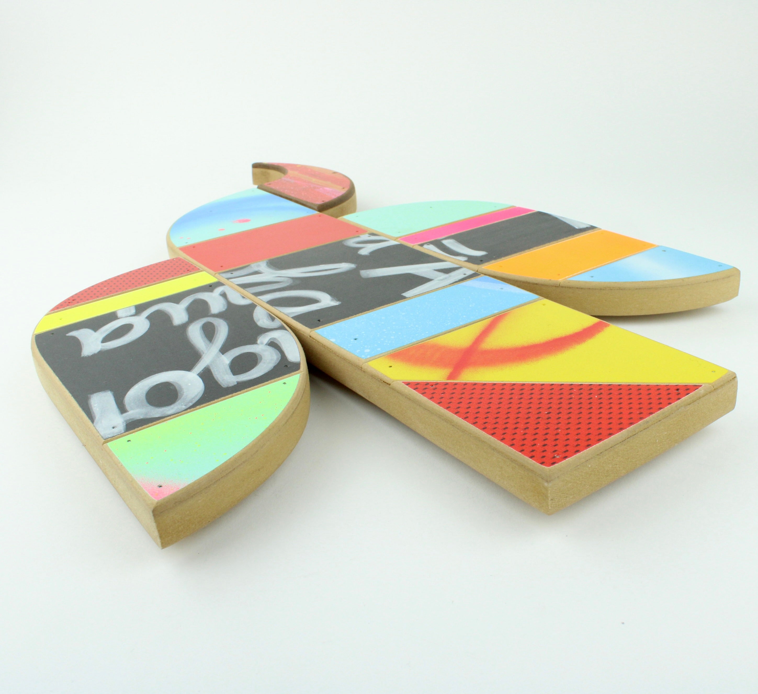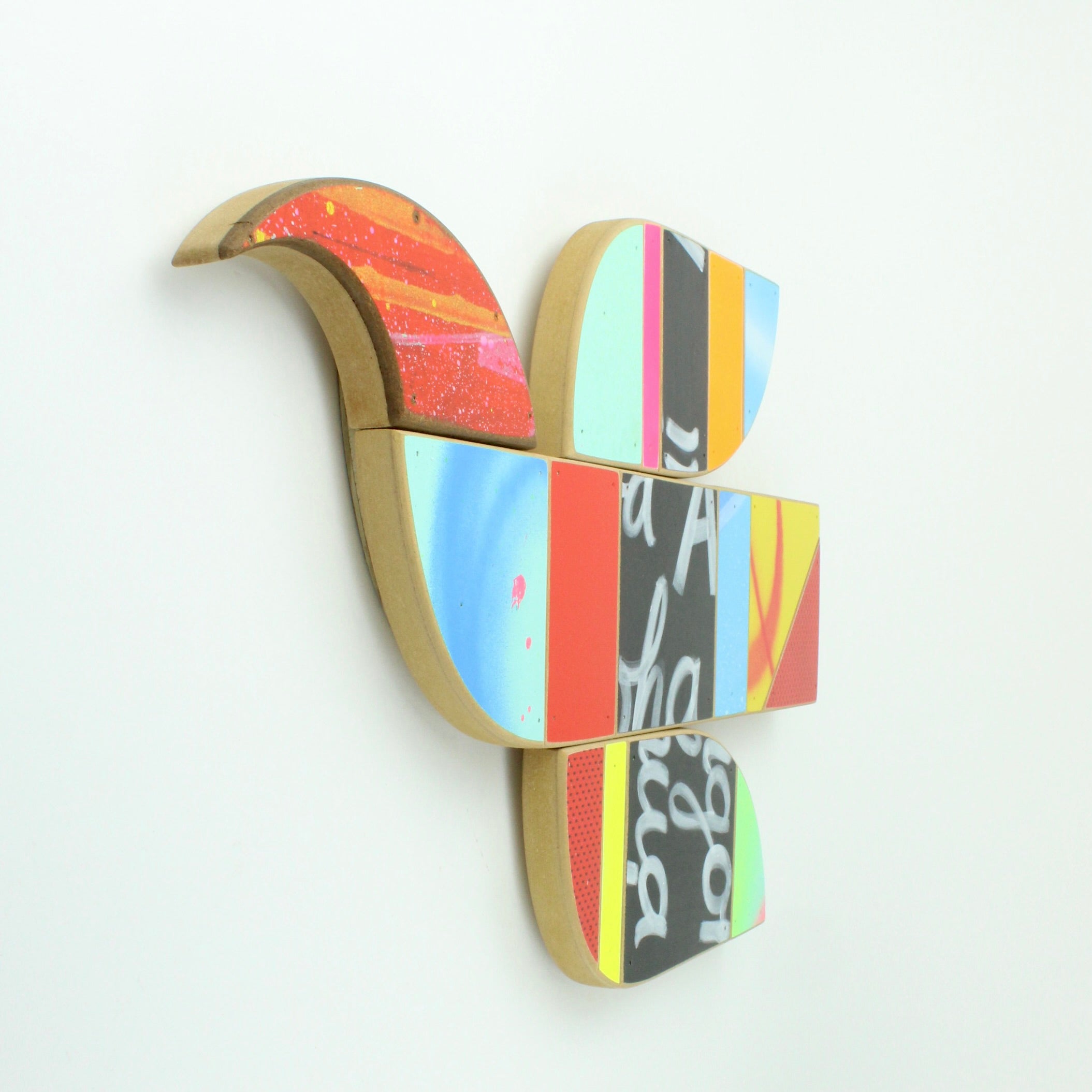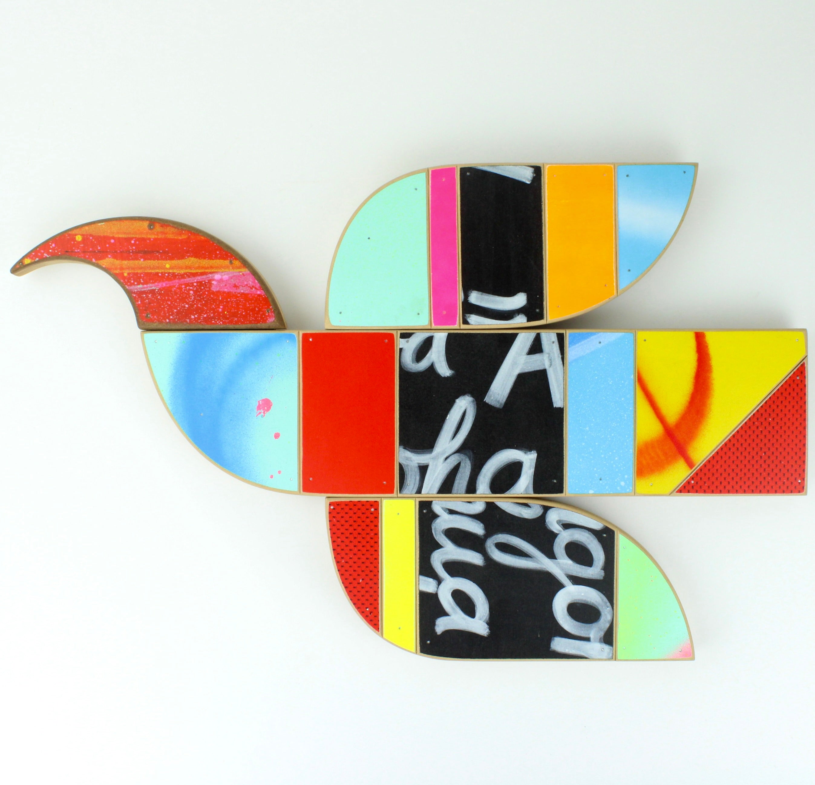 Utilising recycled timber, graphic design methodologies and elegant brush work, Tony Harrington's creations exude a sense of both nostalgia and current day references to the fabric which weaves together the cultural landscape of Aotearoa.