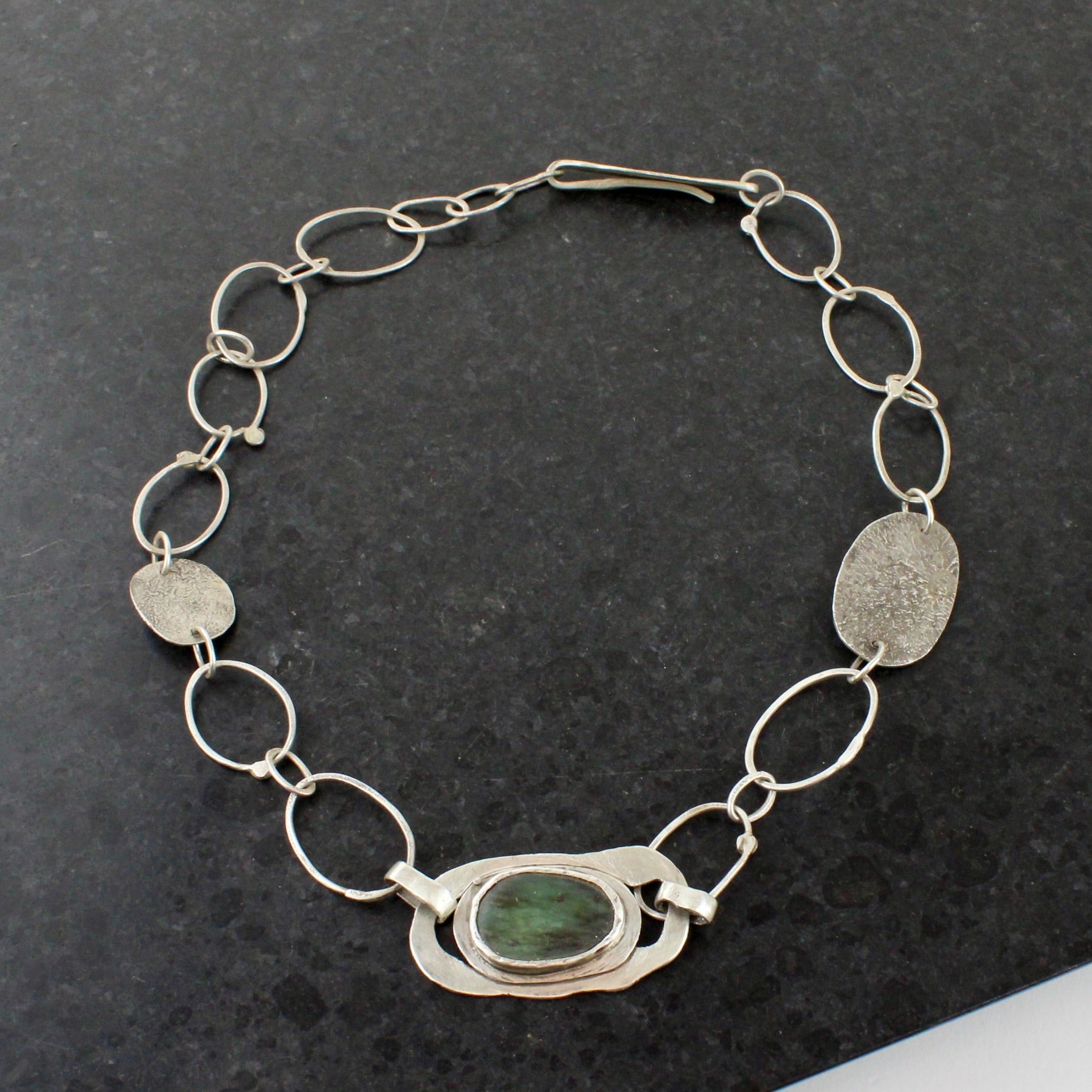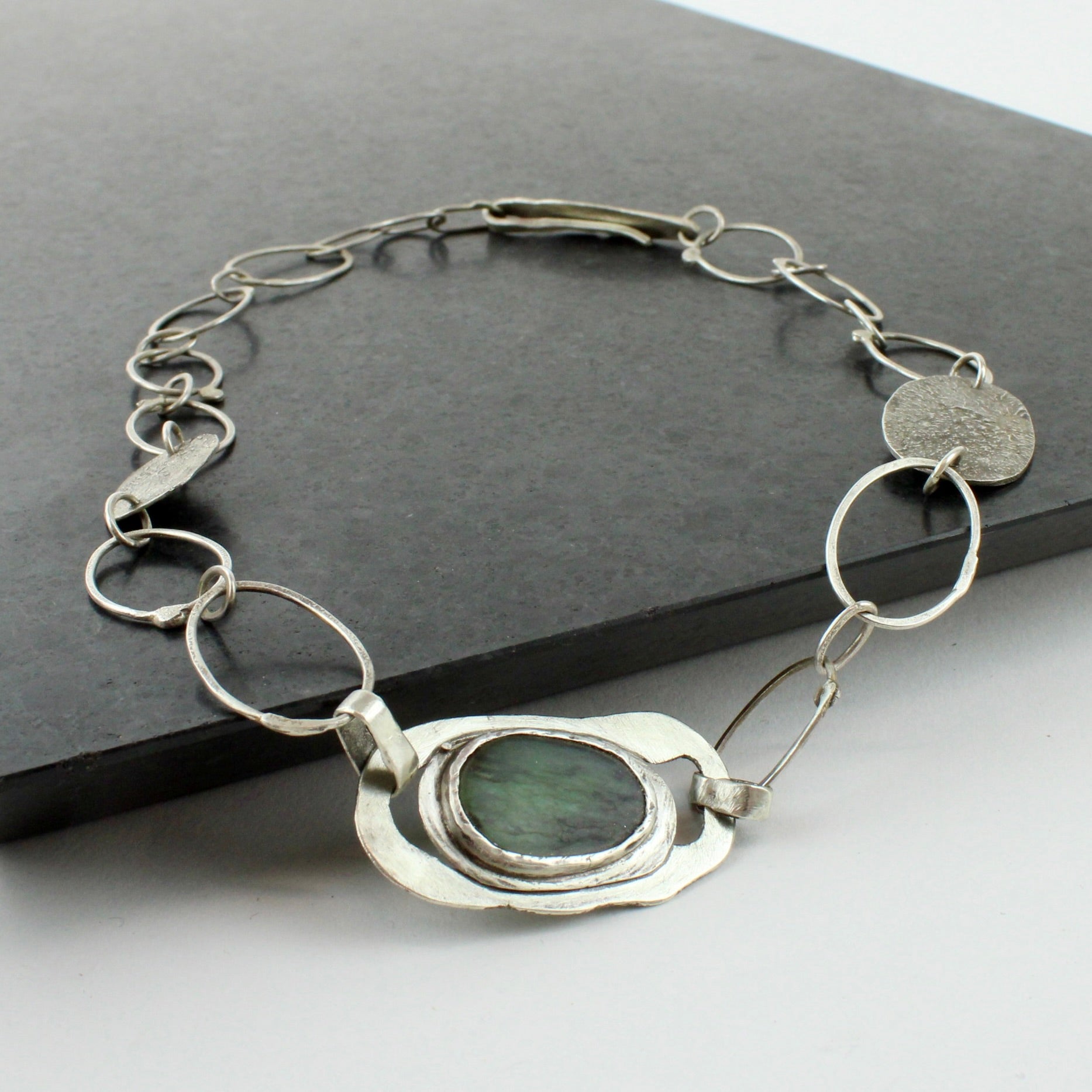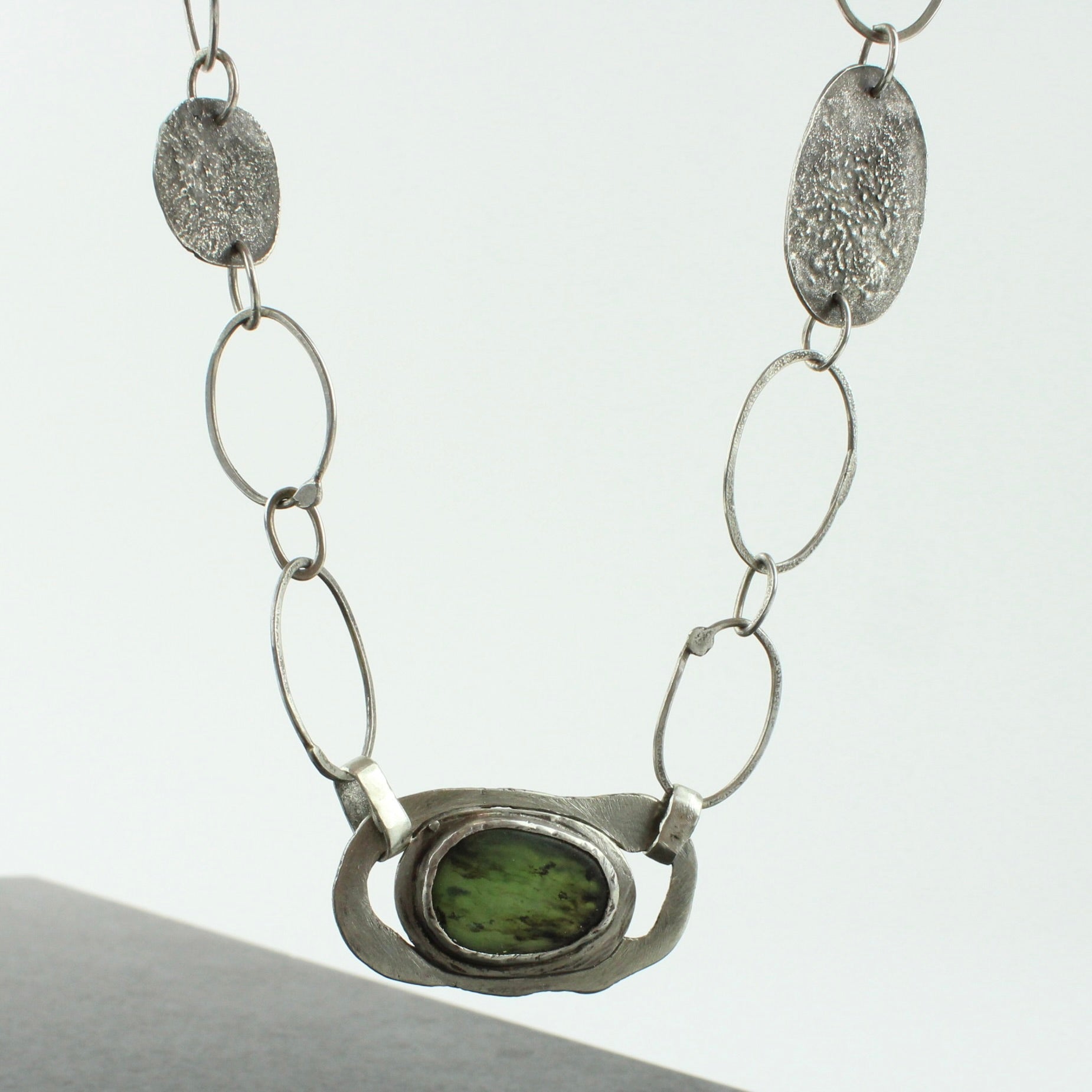 Jacqueline Morren creates striking pieces using ethical oxidised silver and New Zealand greenstone, bringing forth their intrinsic qualities in a raw, organic form. Jacqueline has a deep connection and passion for greenstone and being an approved authenticated carver by Ngai Tahu ensures her integrity working with this precious stone.