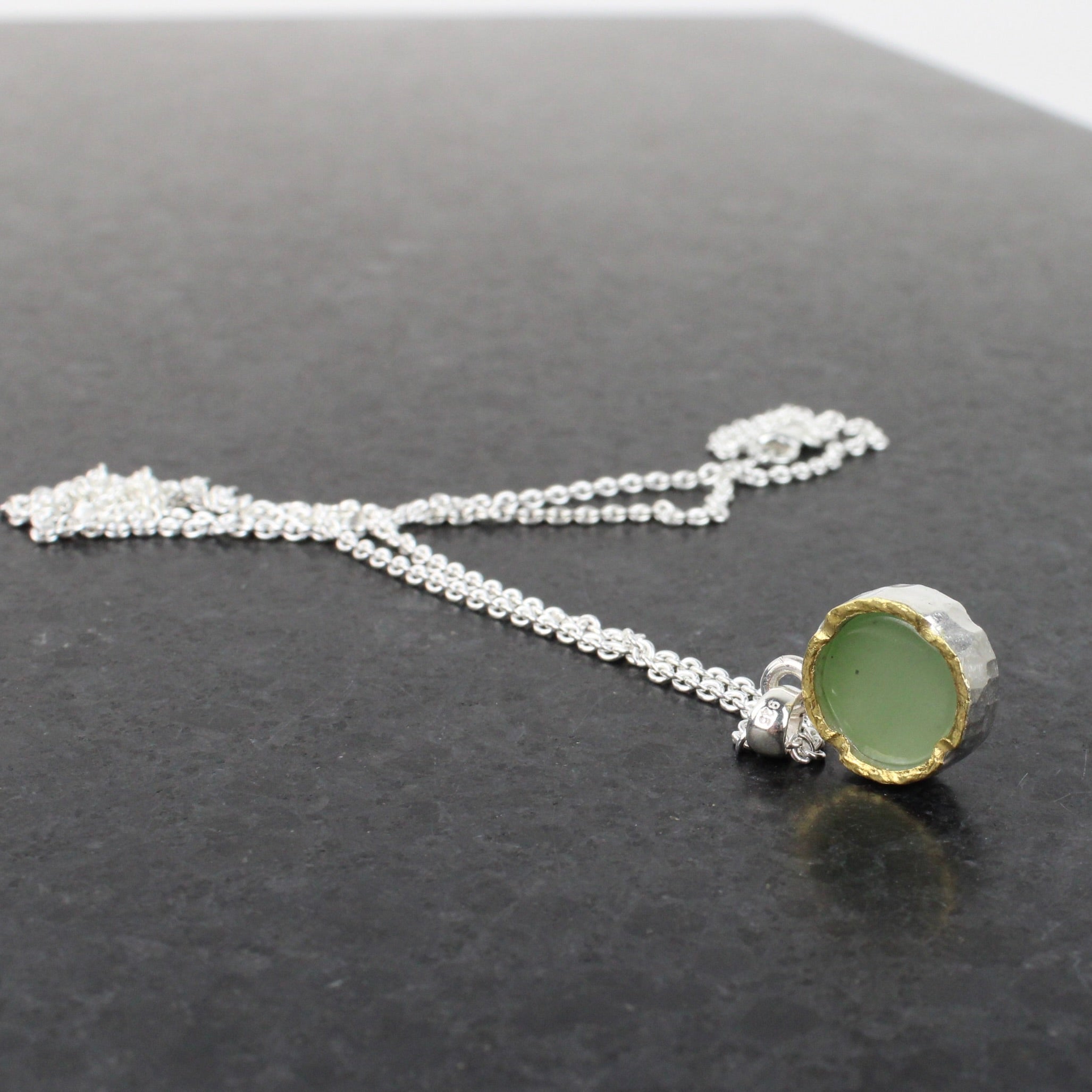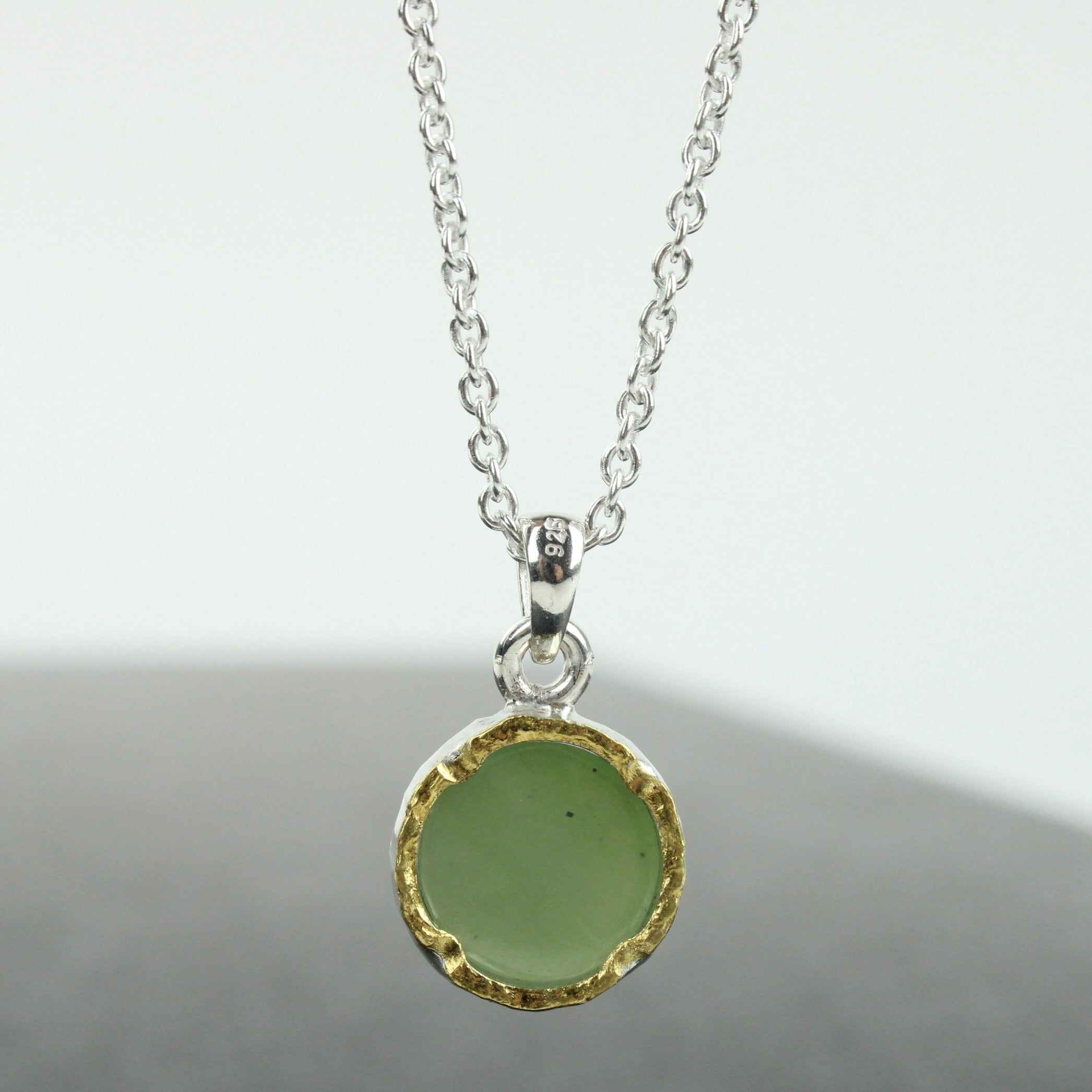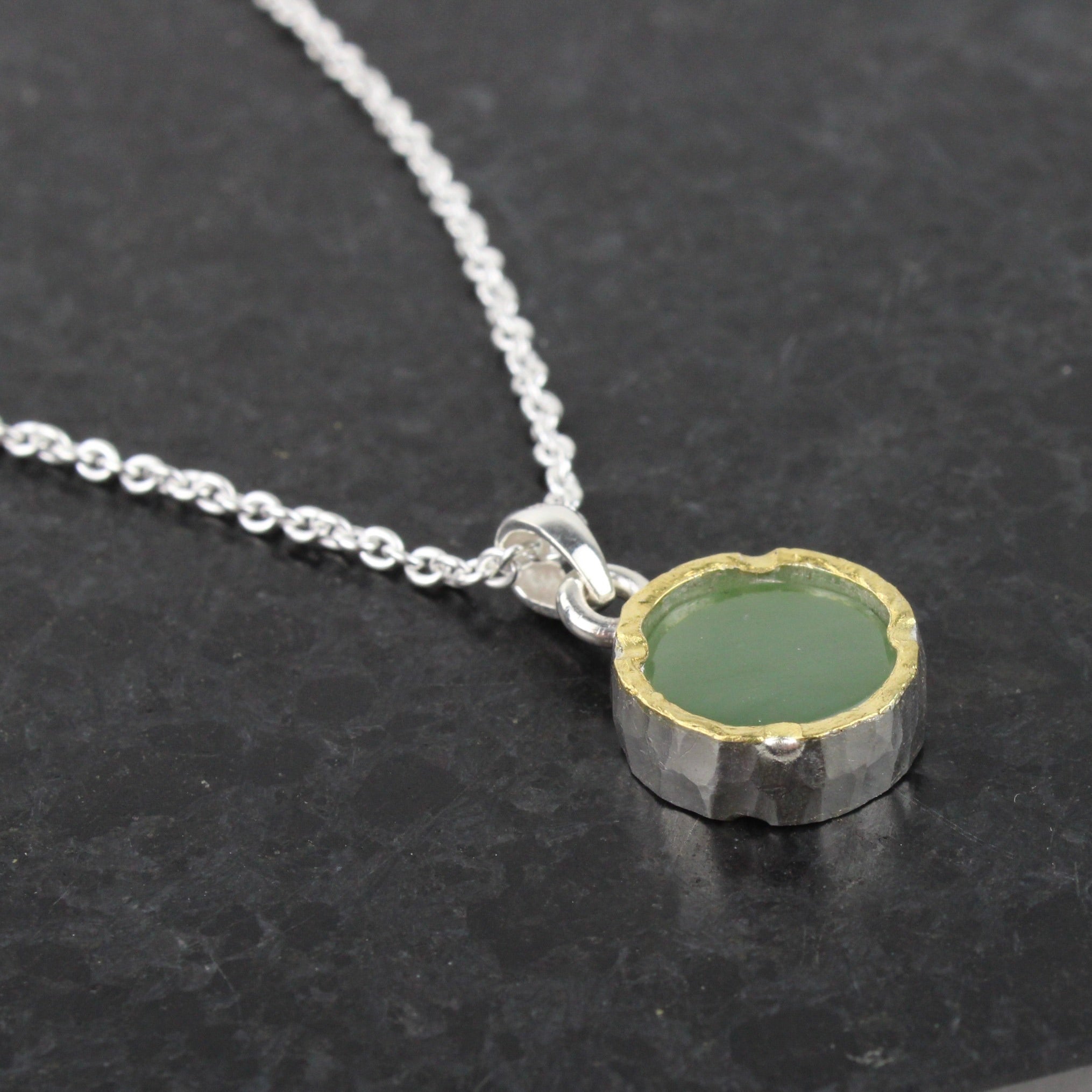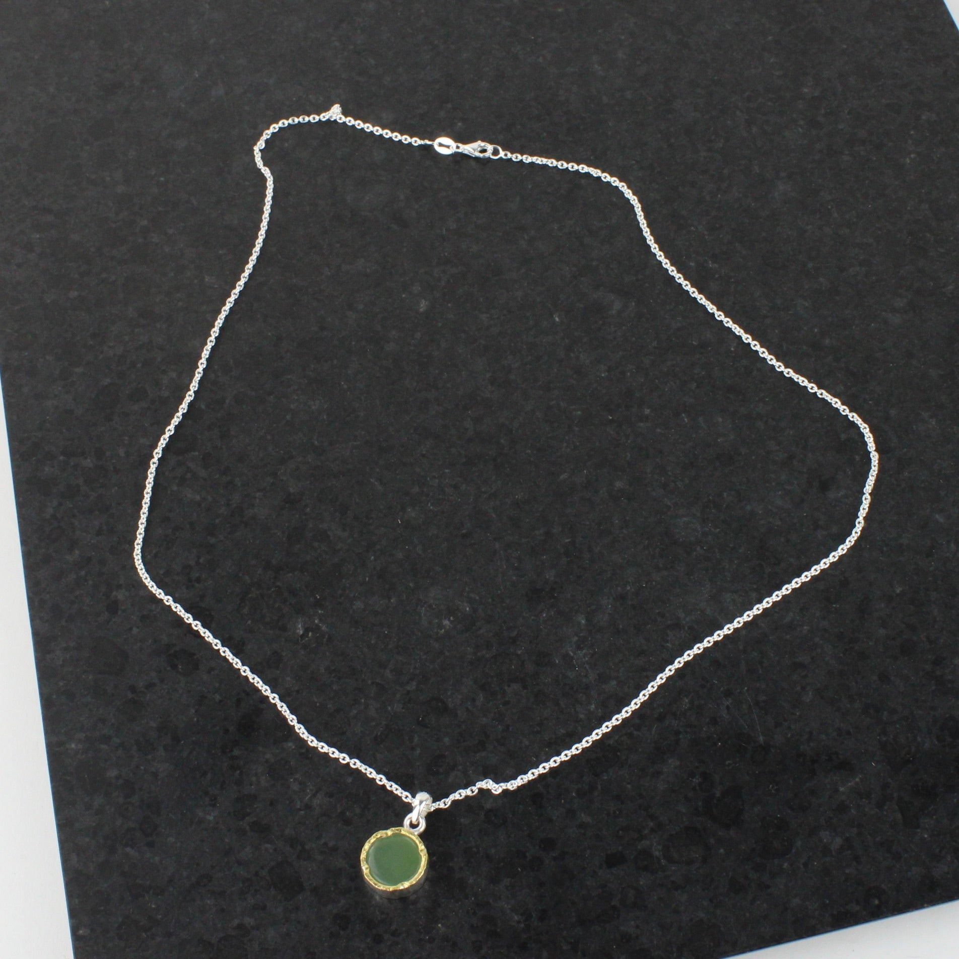 New Zealand Greenstone (pounamu) with solid 22ct gold layer over sterling silver