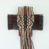 Gilly Sheffield’s corrugated iron crosses explore the interwoven nature of whānau and culture. Using iconic corrugated iron—long associated with sheltering New Zealand homes—and combining it with traditional weaving, she highlights the skills and knowledge passed down through generations across the diverse cultures that shape Aotearoa.