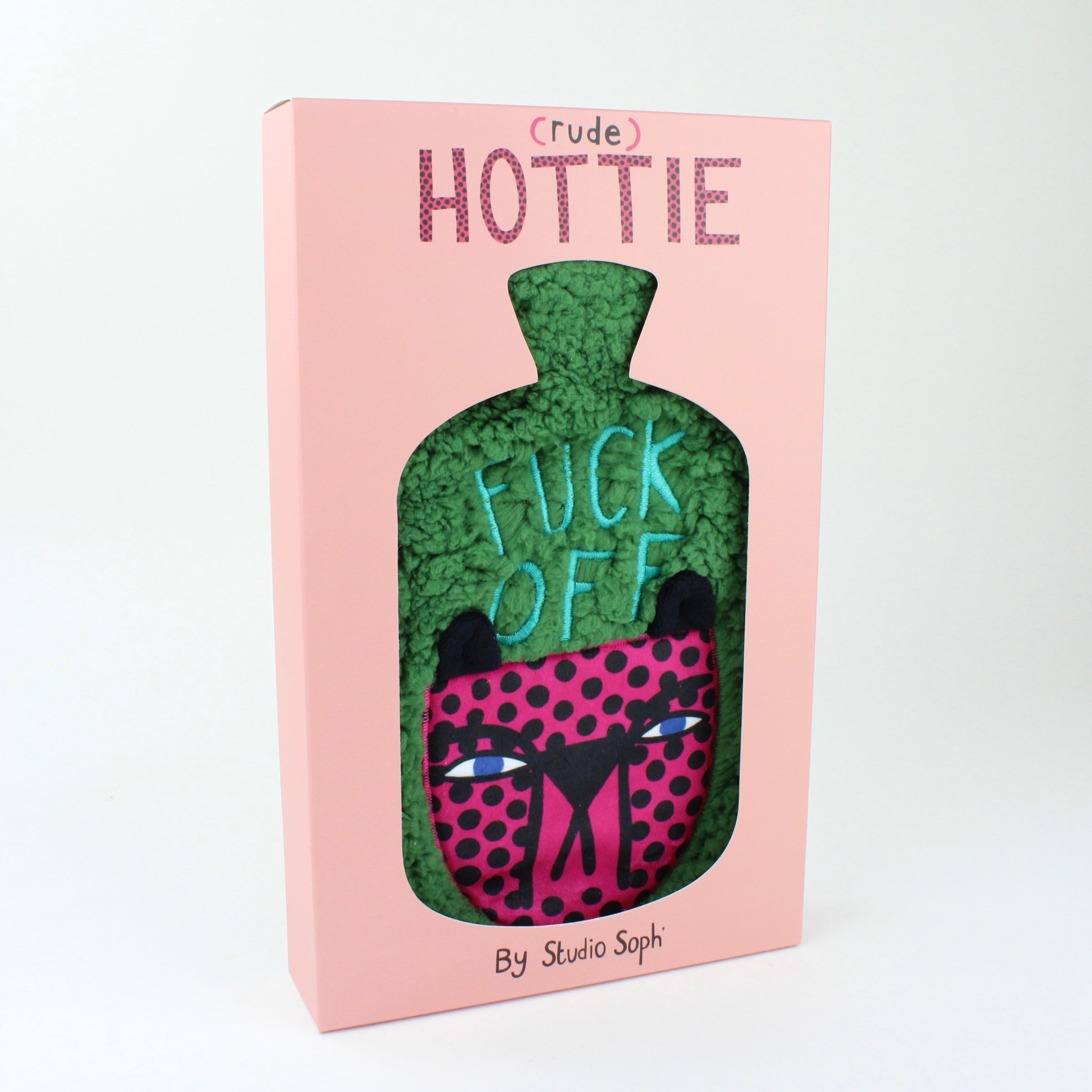 Keeping you cosy while saying what you really mean. This cheeky Studio Soph' designed hot water bottle cover pairs snug warmth with a bold sense of humour. Each one comes packaged in a cool, stylish box, making it the perfect gift for someone who loves comfort with attitude.