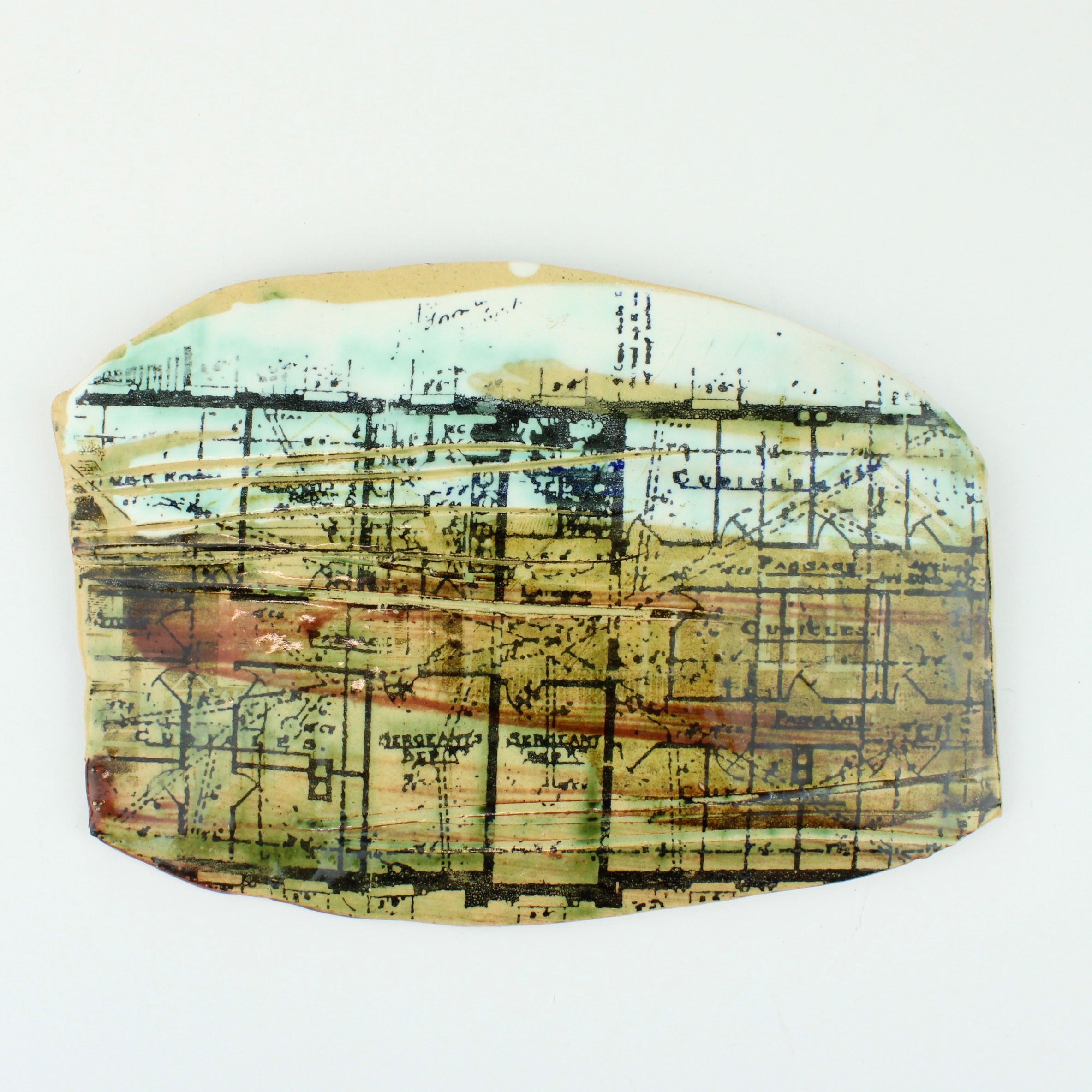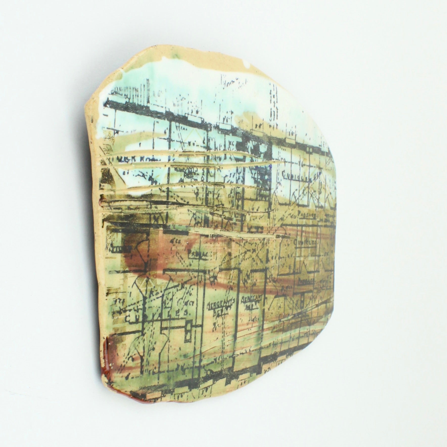 Kate McLean's collection of photographic and drawn ceramic forms create a dynamic tension between the organic nature of clay and the graphic systems layered upon it. Kate’s work invites viewers to consider how memory, place, and visual language imprint themselves onto the material world. In these clustered pieces, the traces of human gesture, printed image, and earthy form coexist, offering a quiet but compelling meditation on how we read, carry, and reinterpret the marks of everyday life.