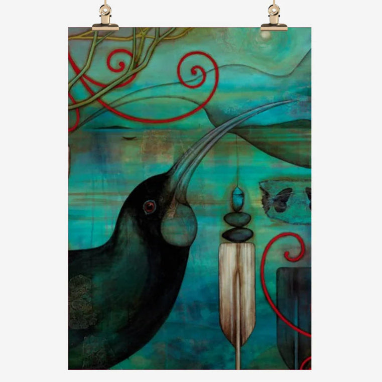 Kathryn Furniss, a self-taught painter from Nelson, New Zealand, draws inspiration from the Pacific landscape and native birds. Her acrylic and ink works feature layered techniques, blending abstract washes with detailed strokes. Through her art, Kathryn tells stories of protection, journeys, and connections between past and present. Kathryn's work is a celebration of New Zealand essence.