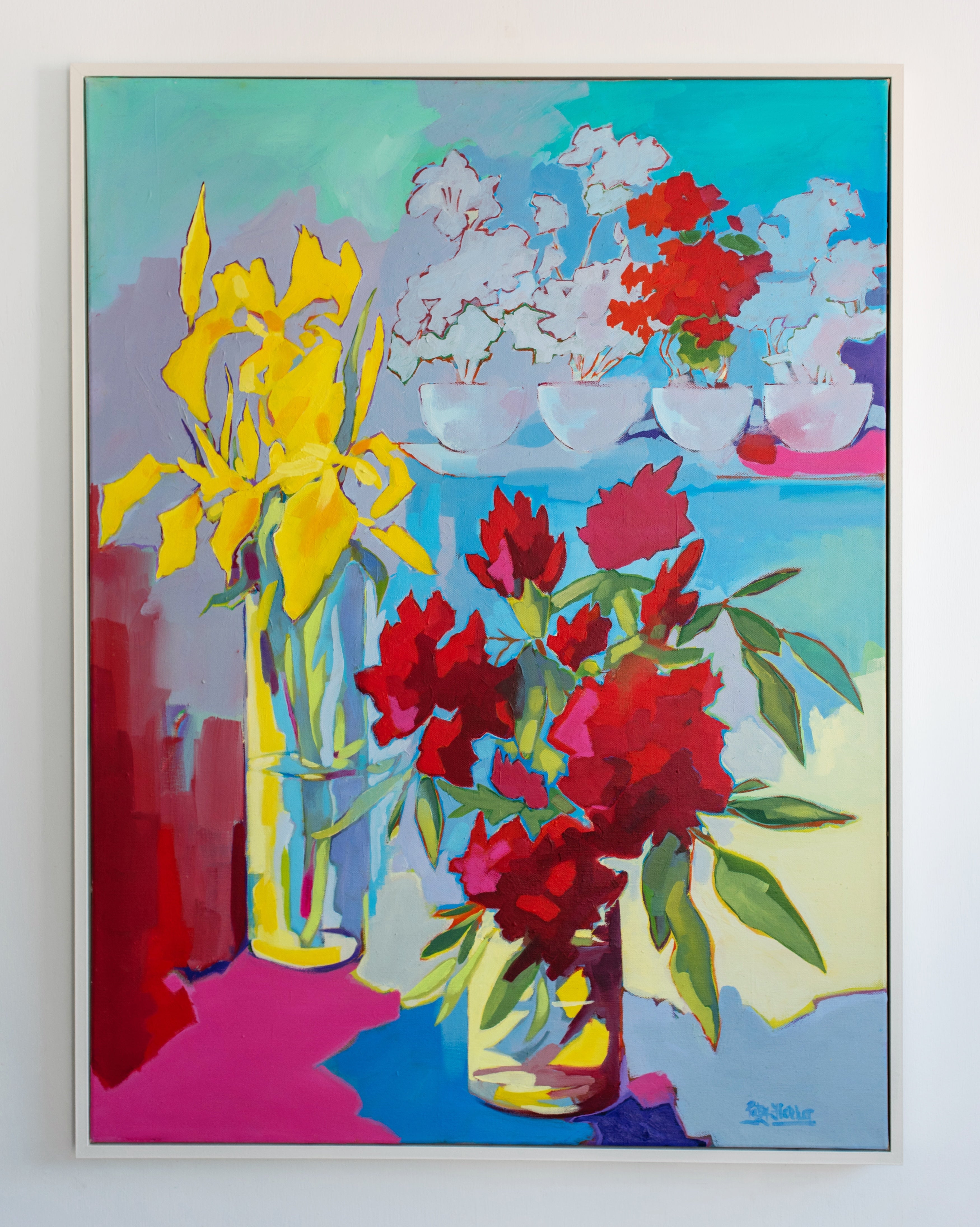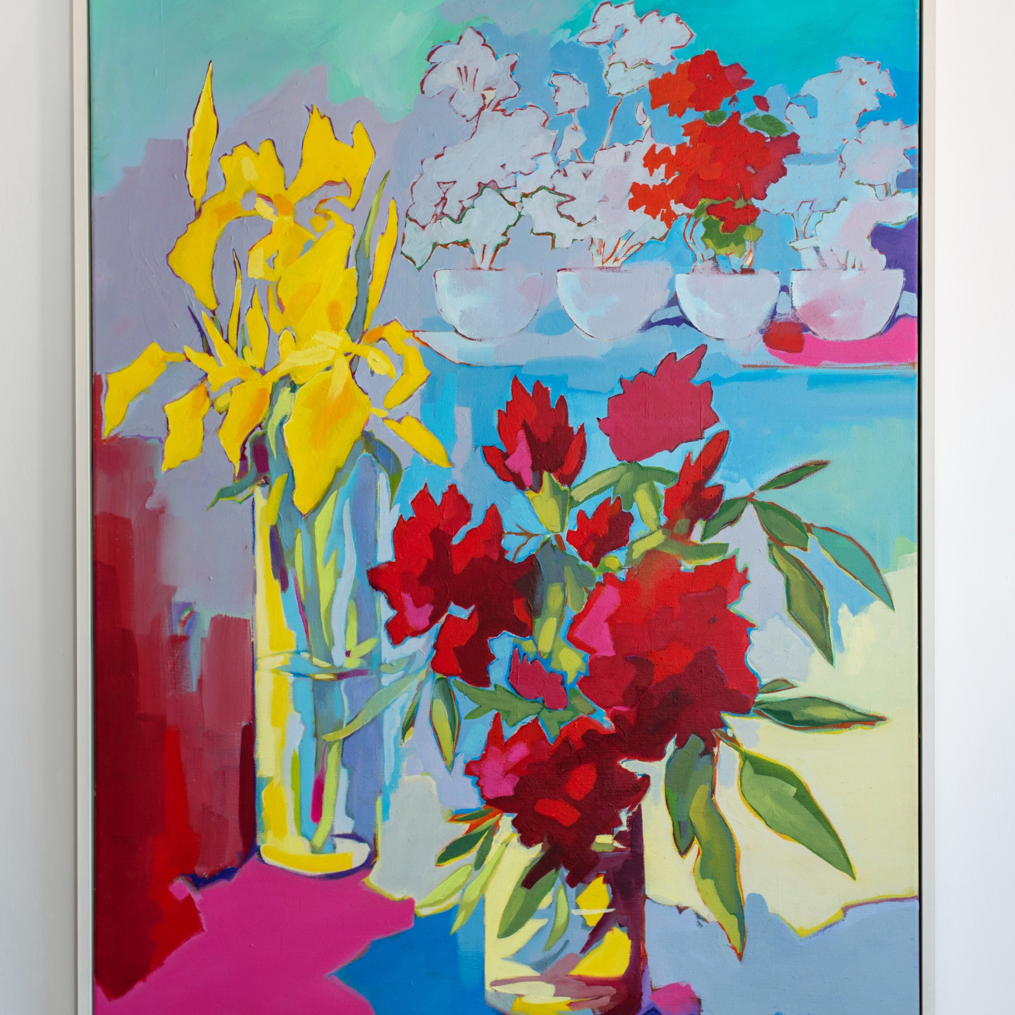 Patsy Fletcher's art bursts with vivid colour and thoughtful symbolism. Her work captures the beauty of everyday life, offering a sense of lightness and uplift in contrast to the weight of the modern world. Influenced by the Vanitas tradition of still life painting, she takes classic symbols of impermanence—like flowers—and reinvents them with intense, vibrant tones. In doing so, she shifts the focus from loss and decay to celebration and vitality, breathing new life into these age-old themes.