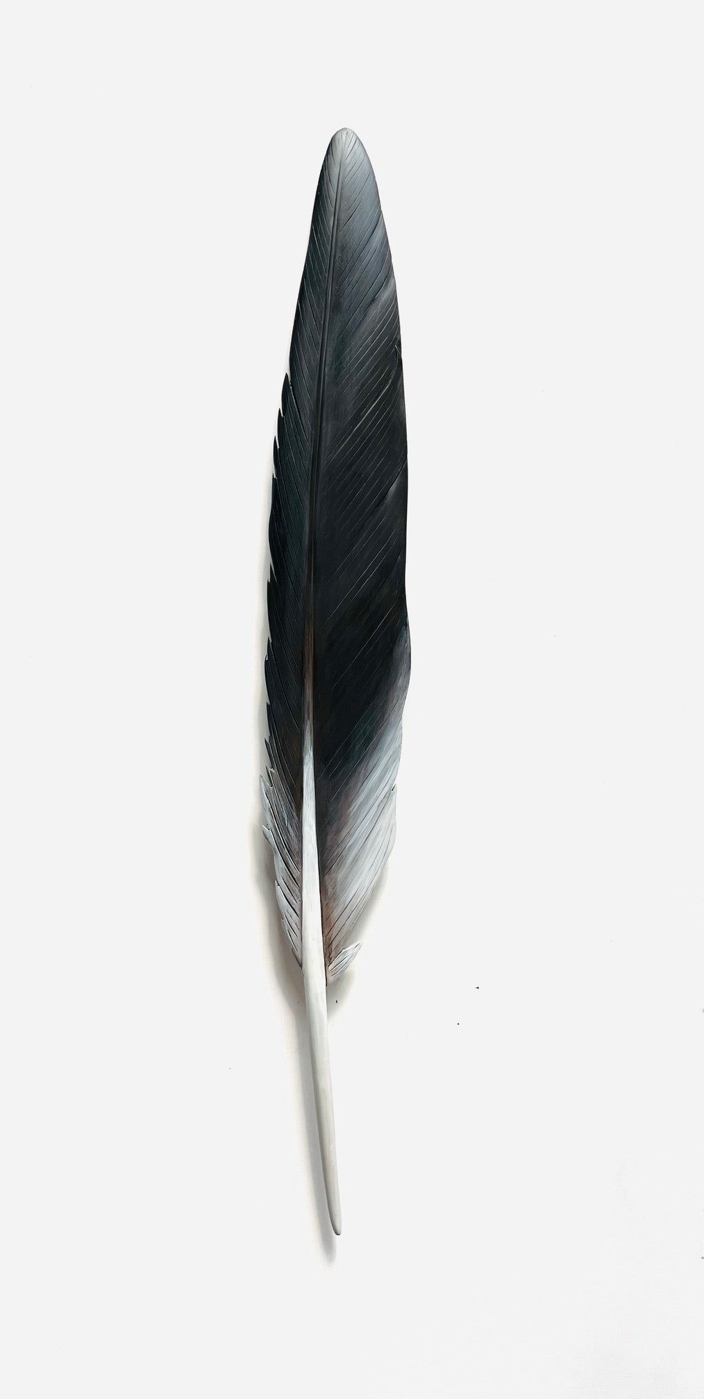 Kawau as New Zealand's Cormorant or Shag. Claire has focused on the accuracy of the feather being as true as possible to the real feather.