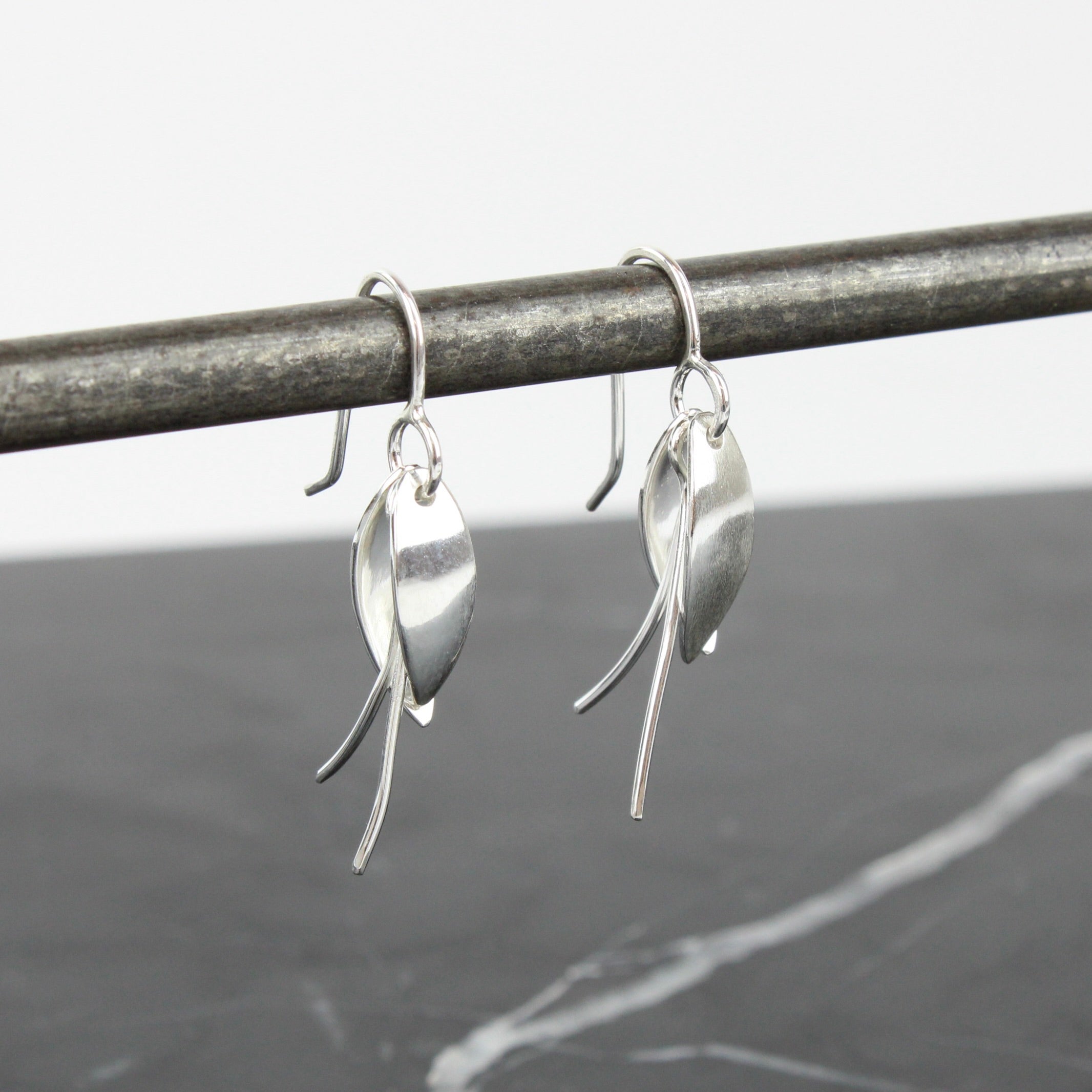 Sterling silver dangle earrings with 2 flower petals - inspired by our native kowhai flower.