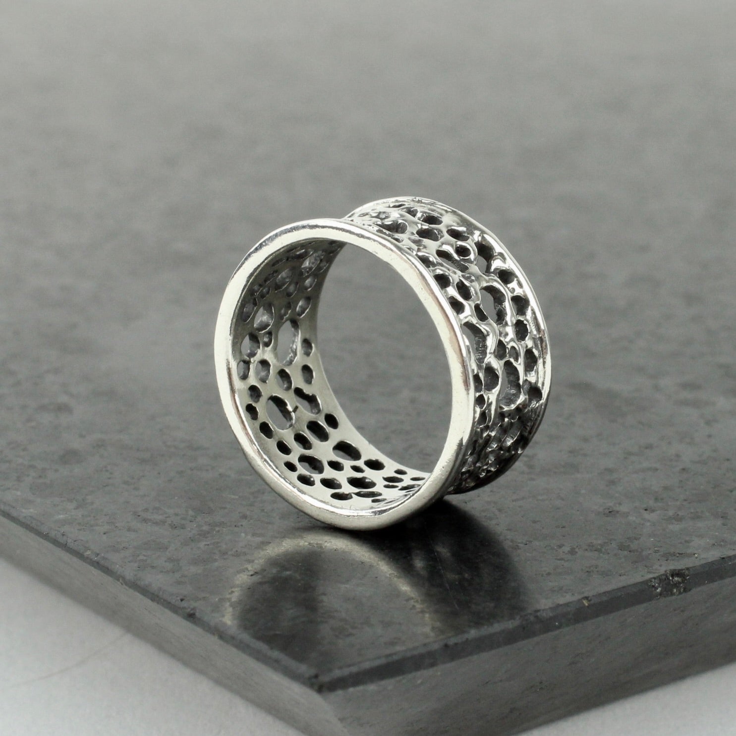 A stunning ring with a vibrant and captivating surface that echoes the raw textures of the ocean. Made in sterling silver with an oxidised finish.
