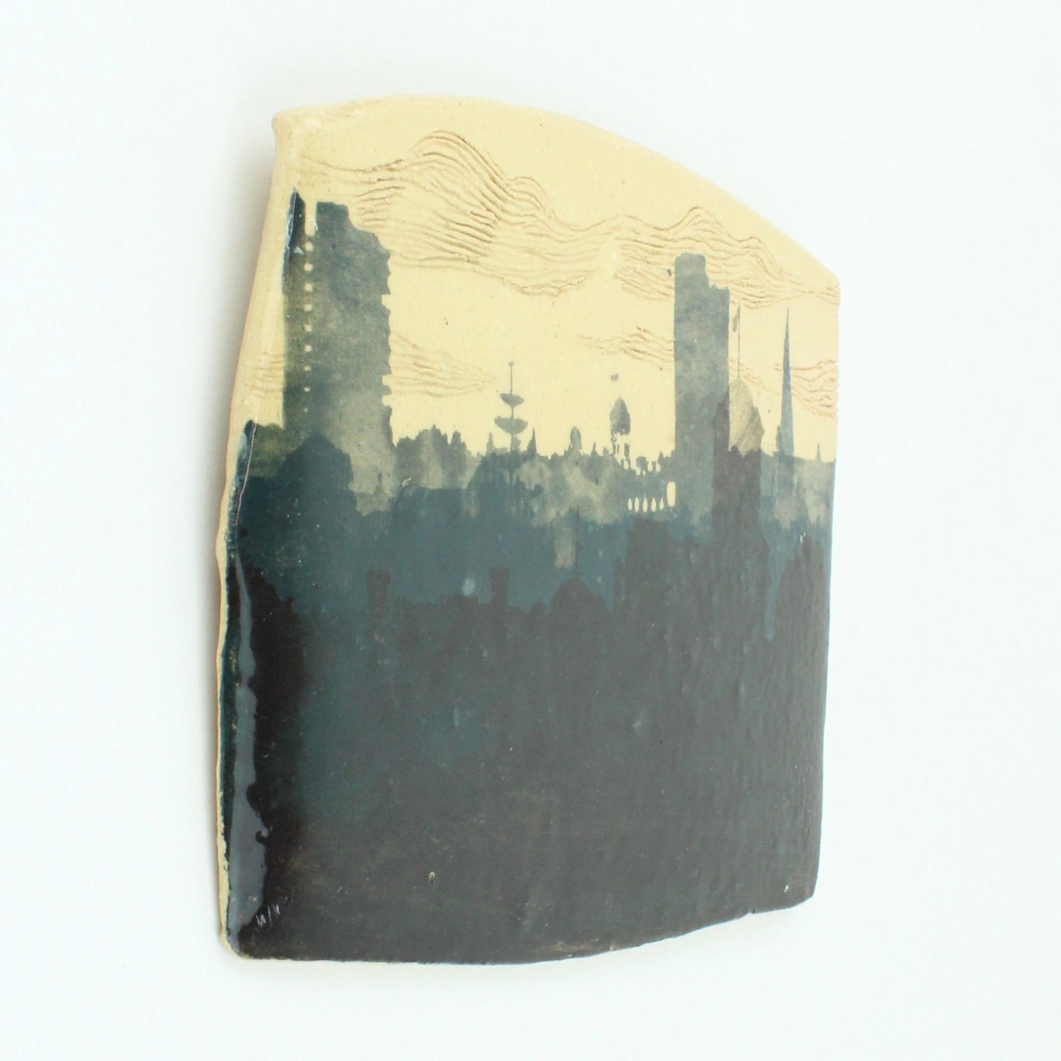 Kate McLean's collection of photographic and drawn ceramic forms create a dynamic tension between the organic nature of clay and the graphic systems layered upon it. Kate’s work invites viewers to consider how memory, place, and visual language imprint themselves onto the material world. In these clustered pieces, the traces of human gesture, printed image, and earthy form coexist, offering a quiet but compelling meditation on how we read, carry, and reinterpret the marks of everyday life.