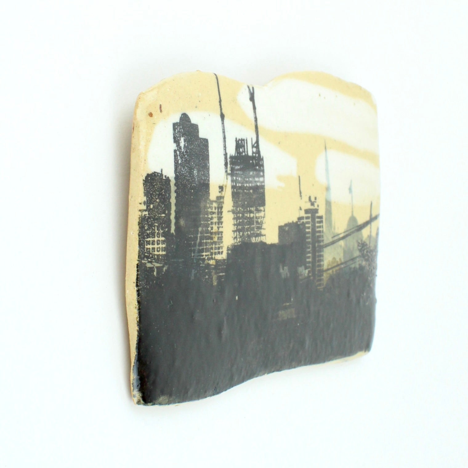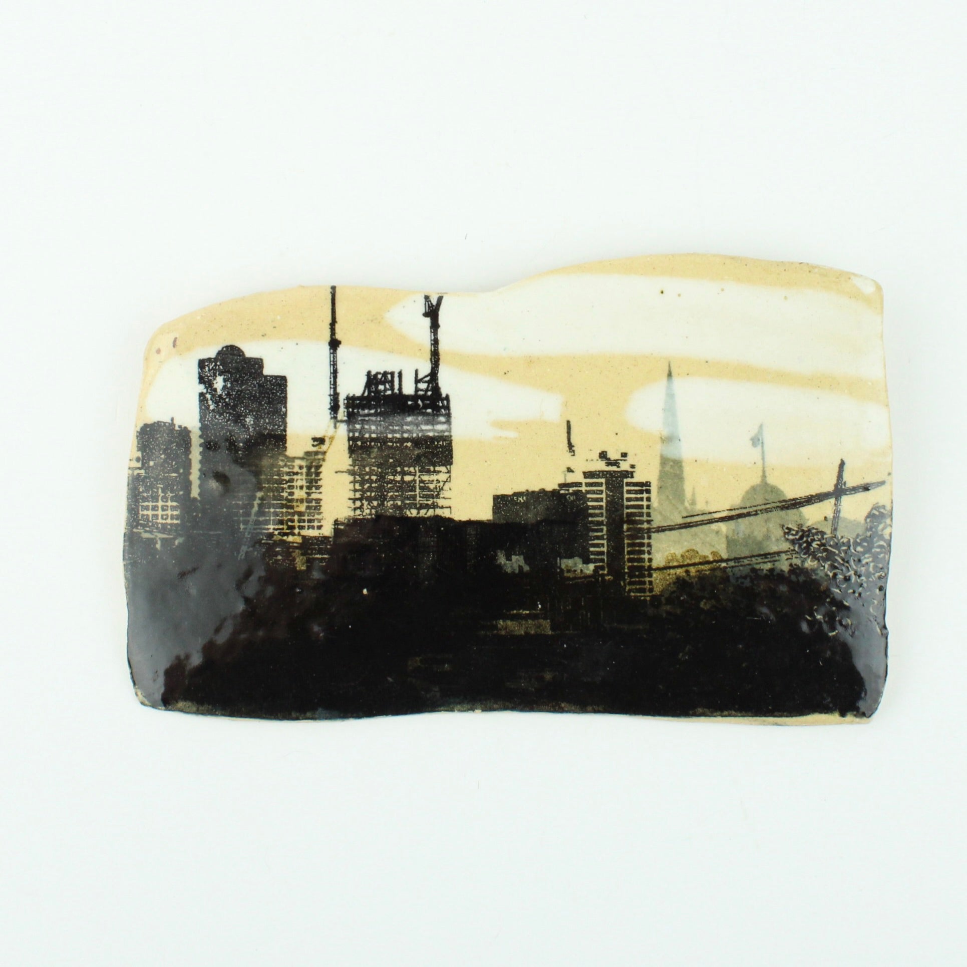 Kate McLean's collection of photographic and drawn ceramic forms create a dynamic tension between the organic nature of clay and the graphic systems layered upon it. Kate’s work invites viewers to consider how memory, place, and visual language imprint themselves onto the material world. In these clustered pieces, the traces of human gesture, printed image, and earthy form coexist, offering a quiet but compelling meditation on how we read, carry, and reinterpret the marks of everyday life.