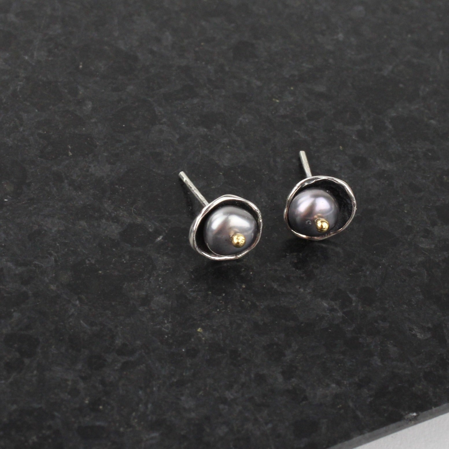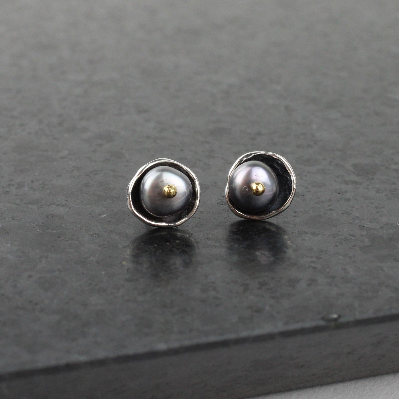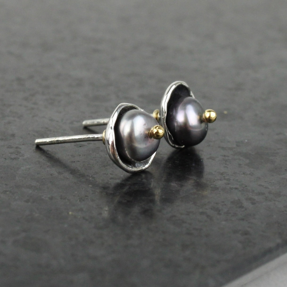 Finish your look with these sterling silver caps holding freshwater pearls and finished with silver posts and butterfly backs.
