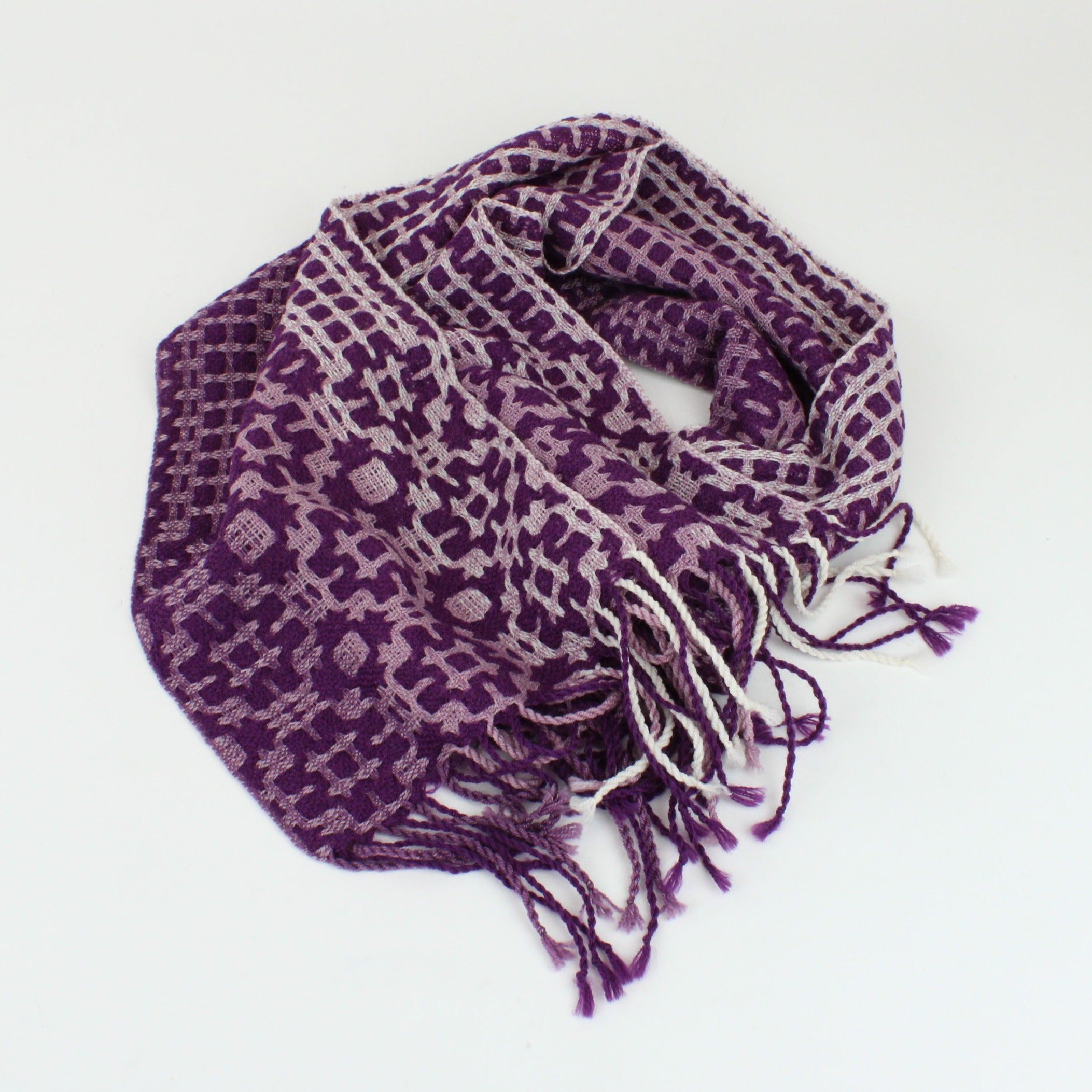 Individually crafted on Dianne Dudfield's domestic loom. Dianne prides herself on supporting NZ producers of fibre. The yarns are all hand dyed in a method developed by Dianne making each unique.