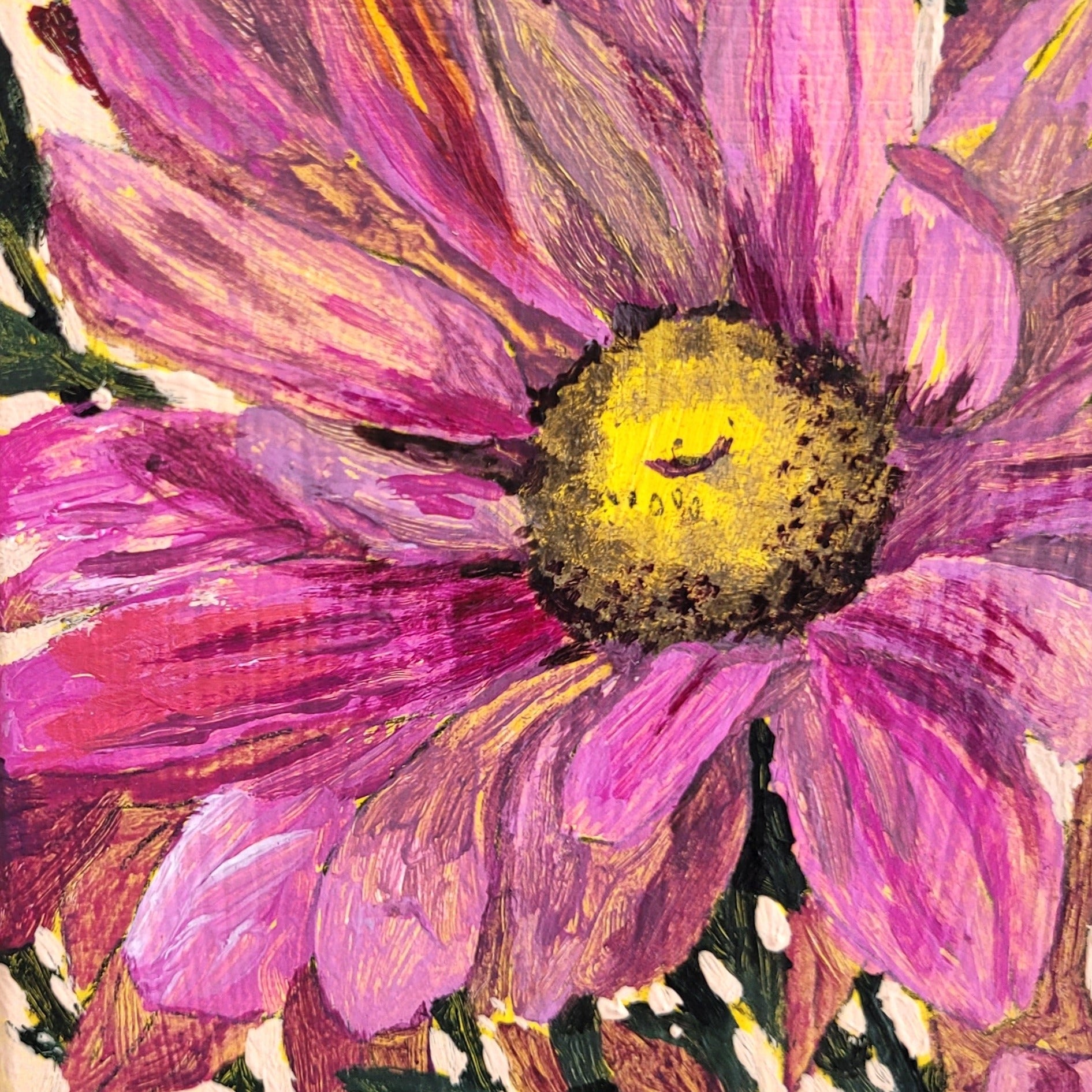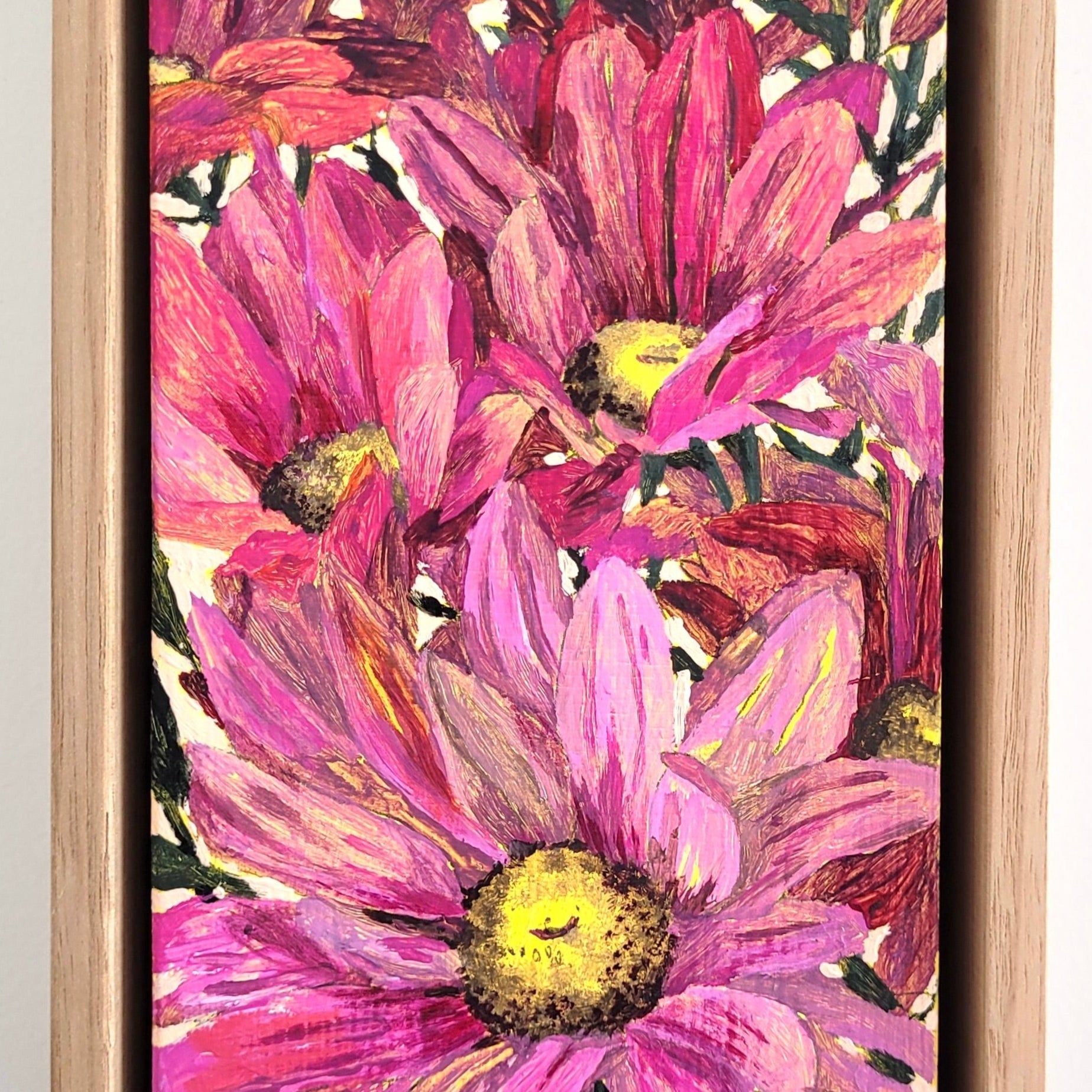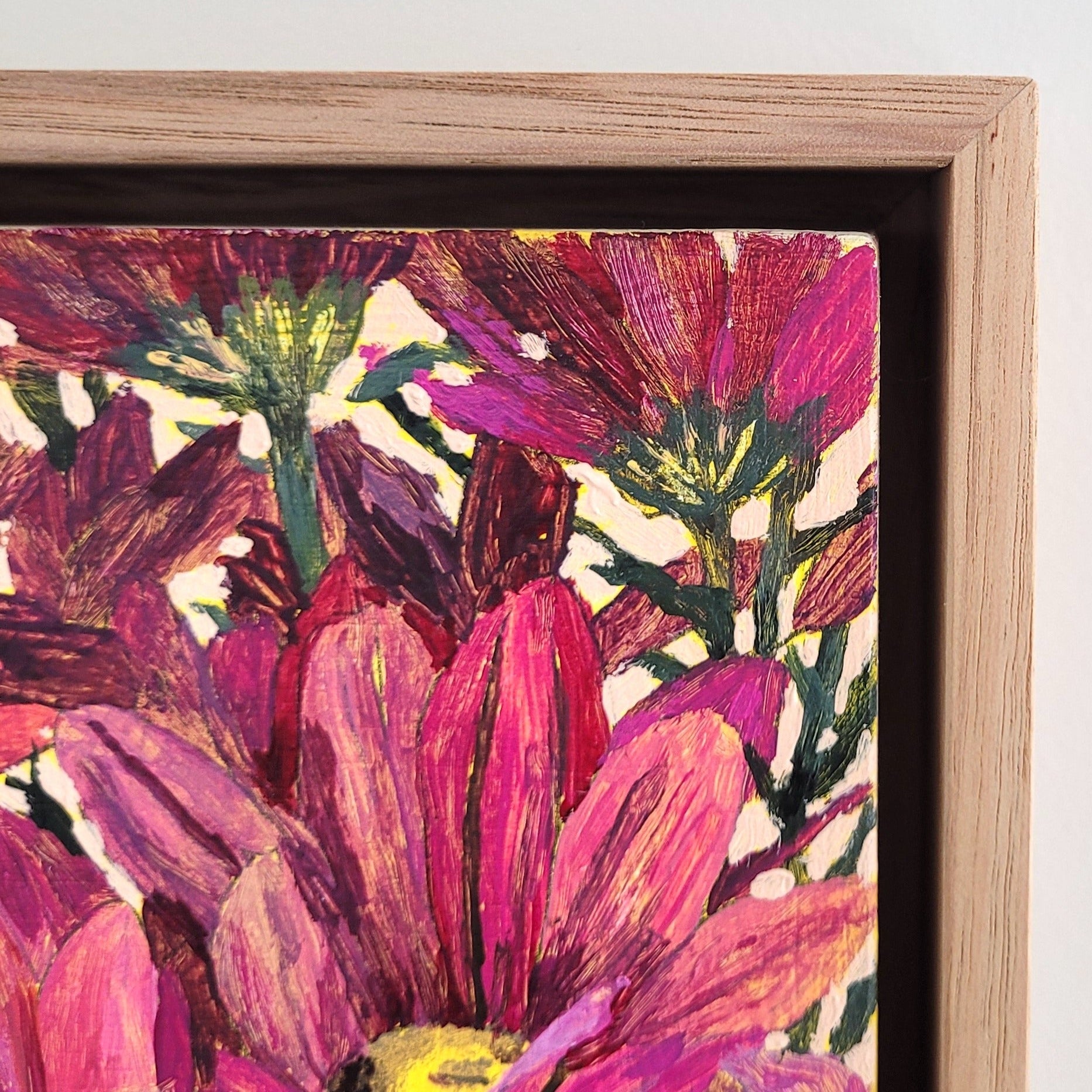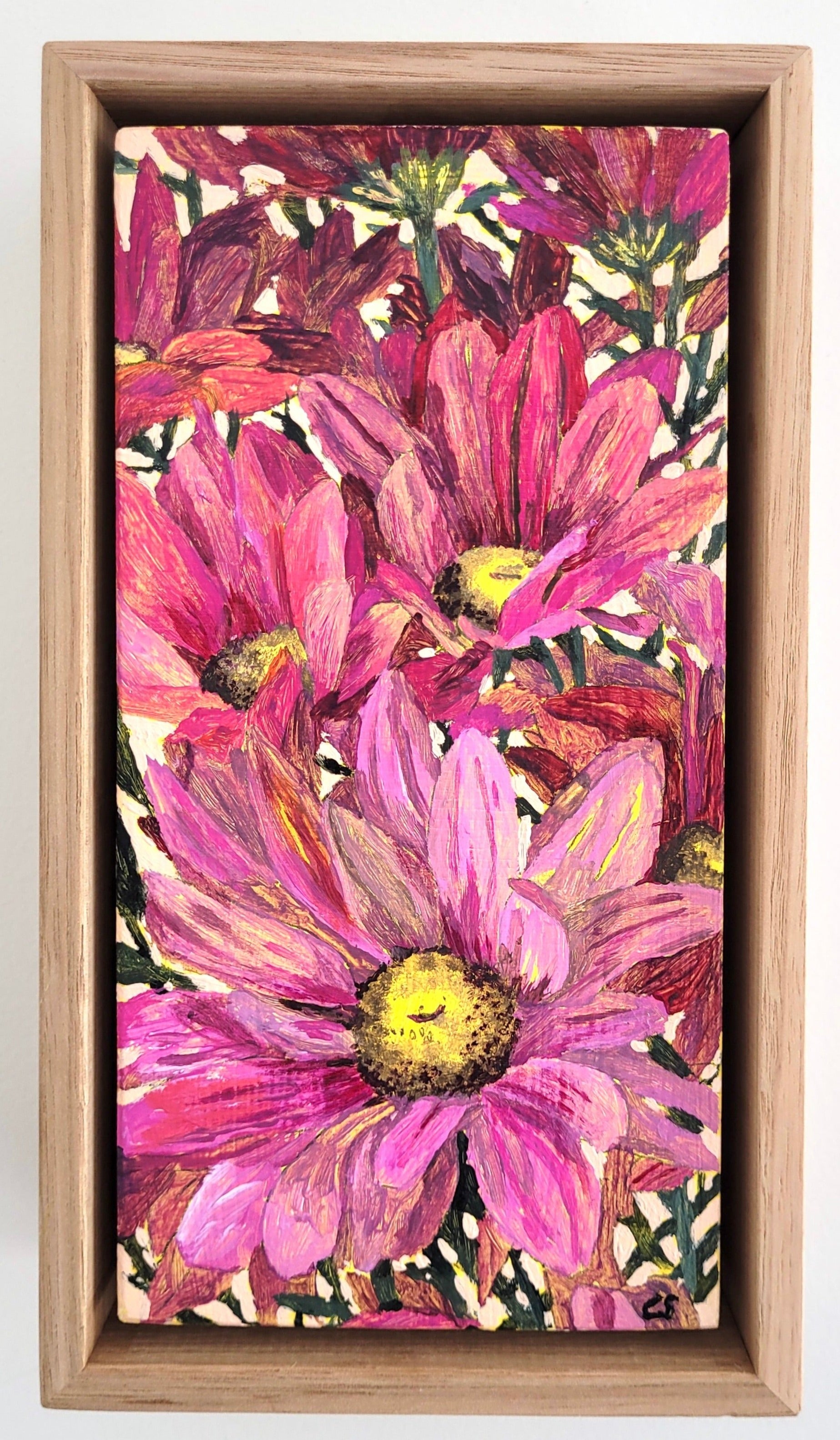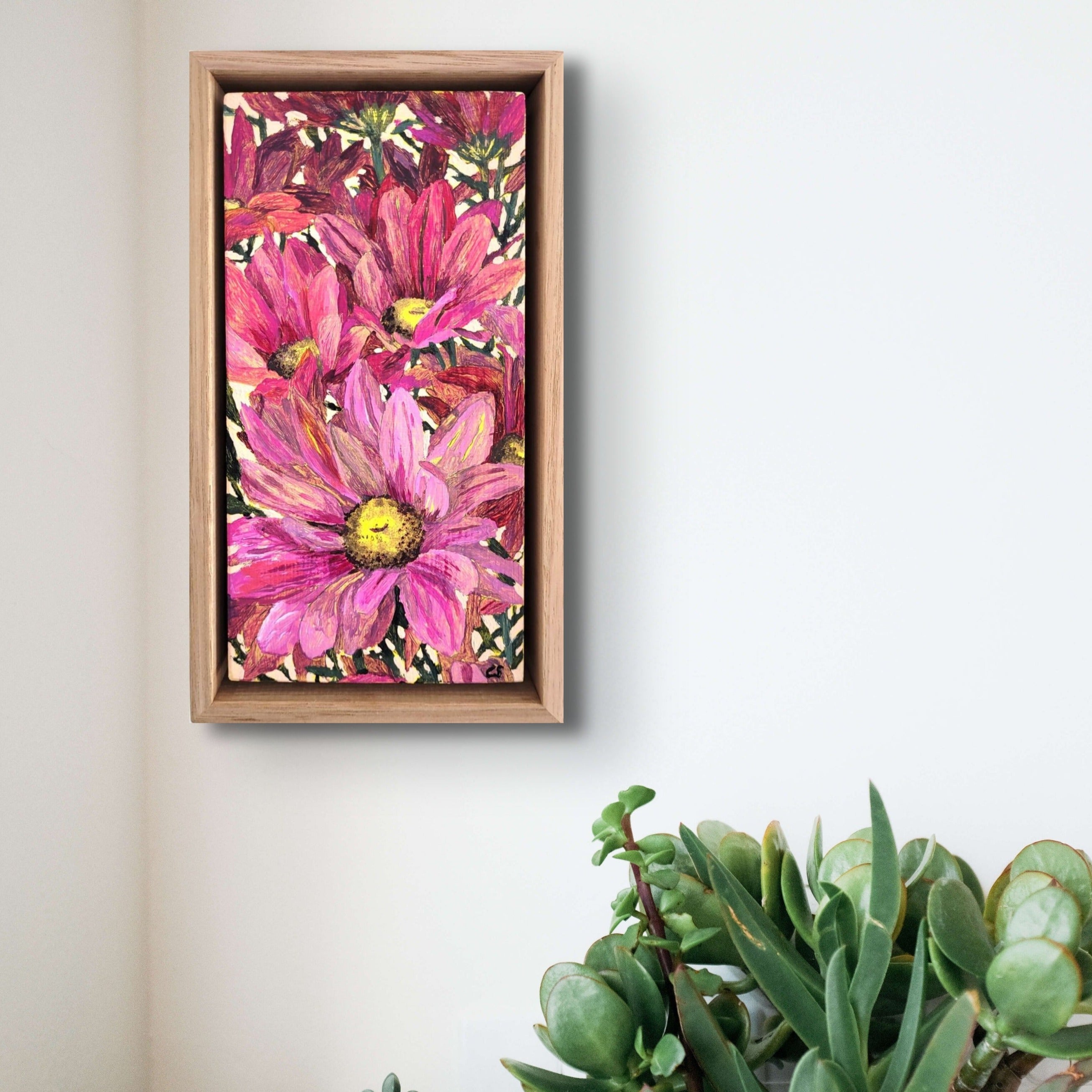 Lolly pop: A vibrant pop of magenta tones explode on this mini canvas, bringing a joyful display of daisies.