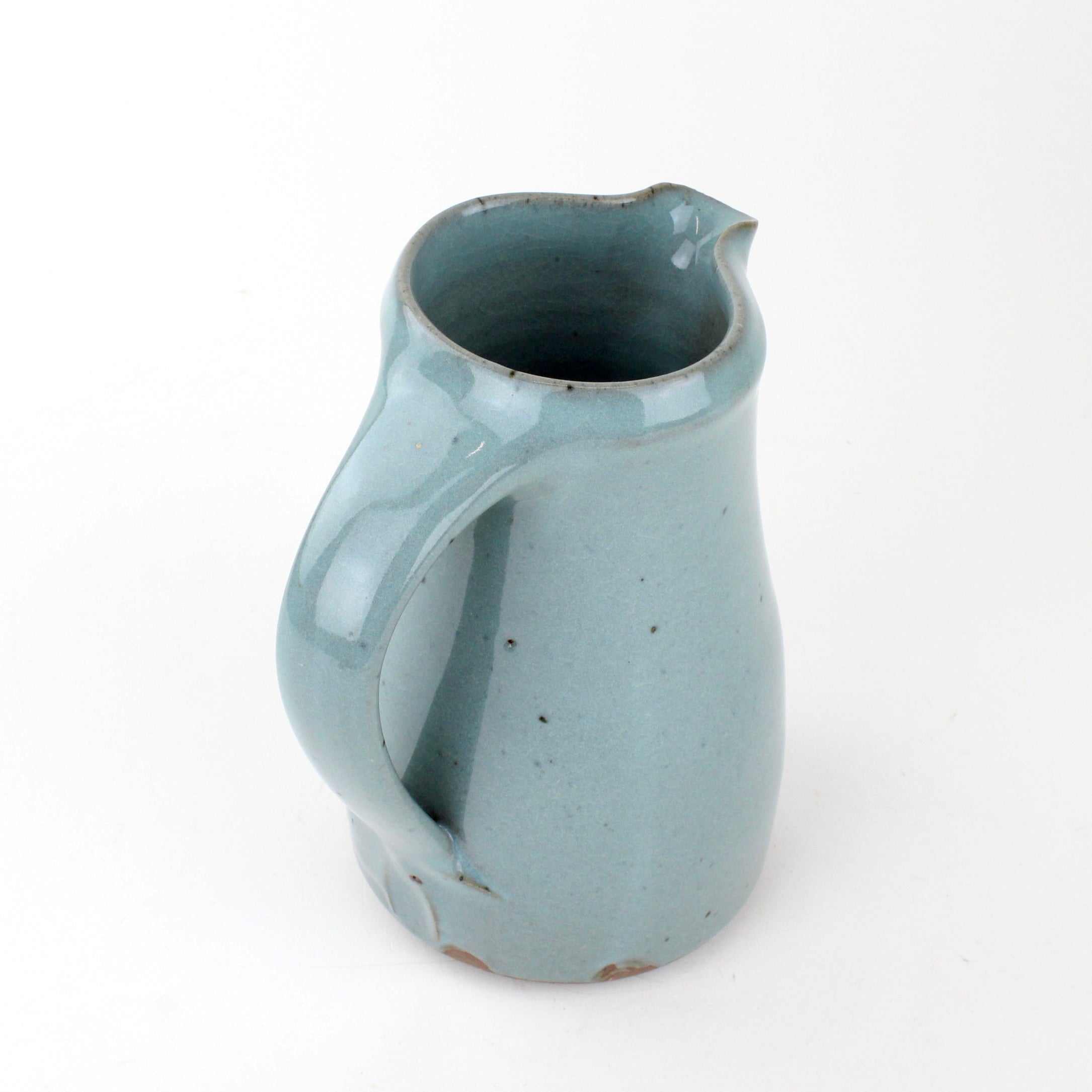 Handcrafted medium jug, chun glazed with a smooth soft blue finish