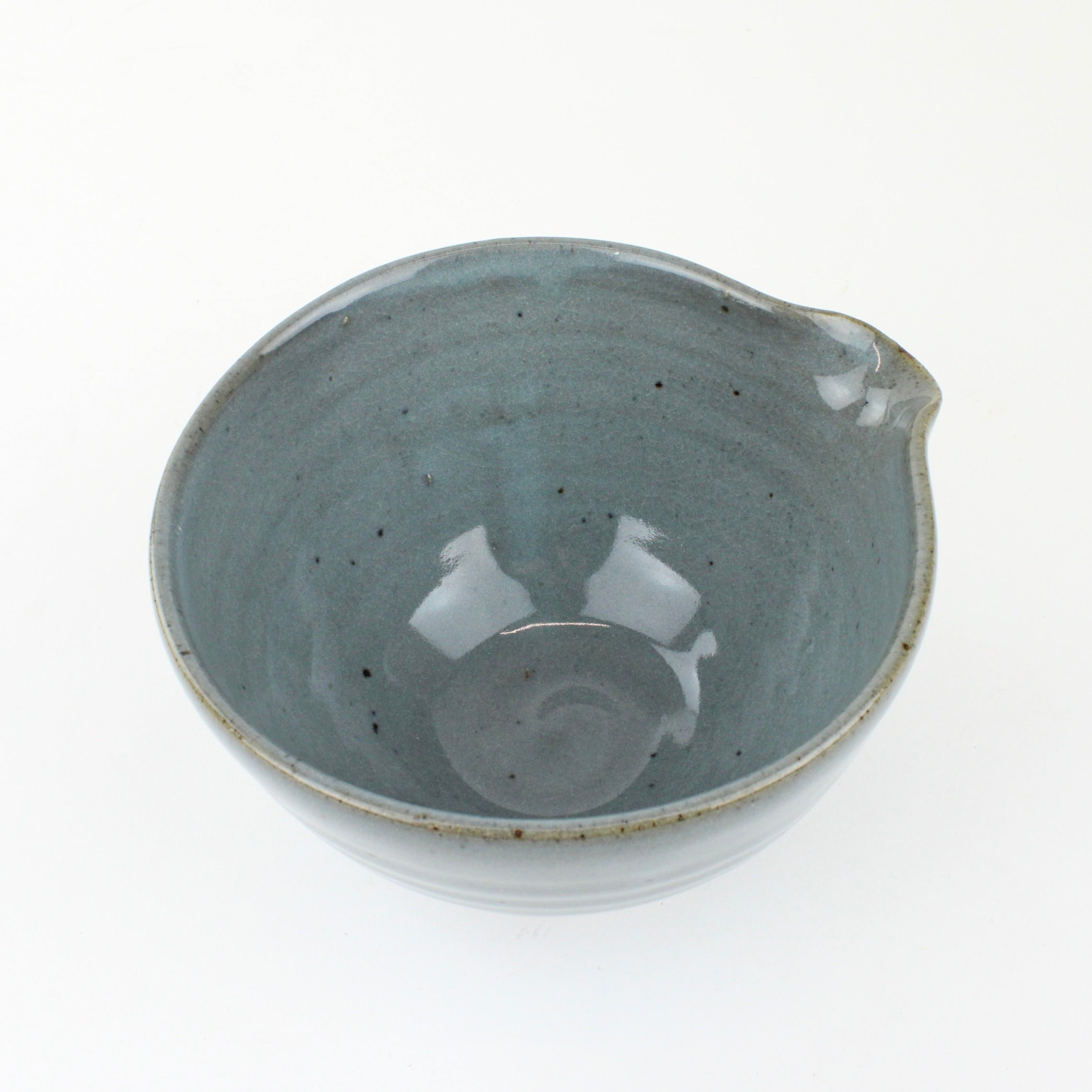 Handcrafted medium pouring bowl, chun glazed with a smooth soft blue finish