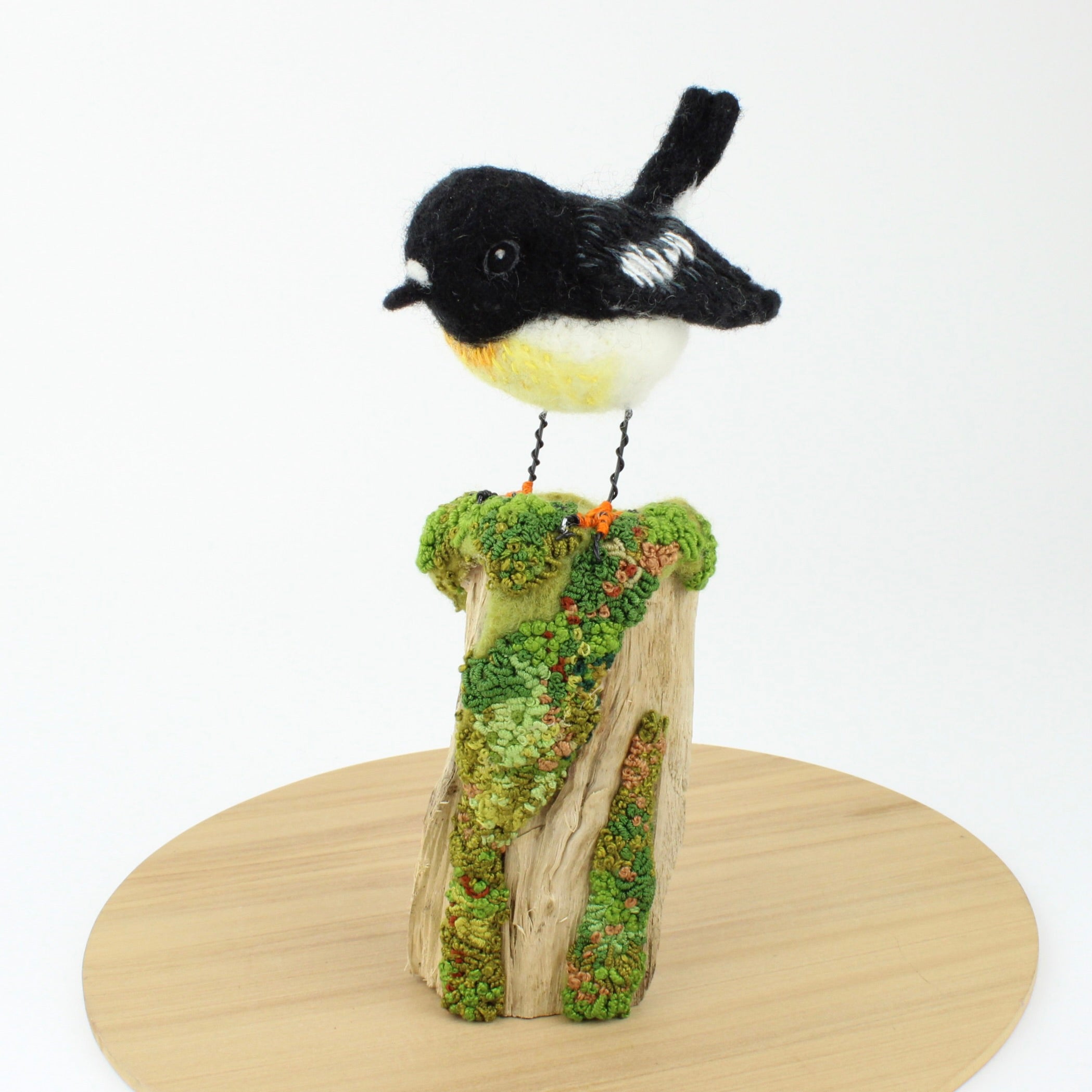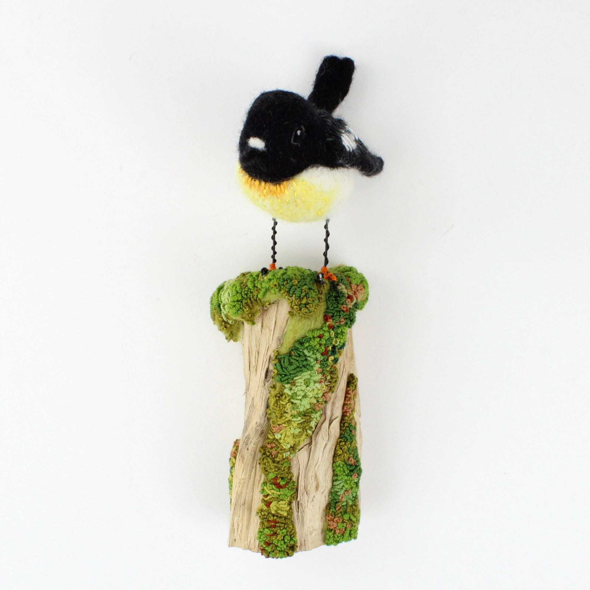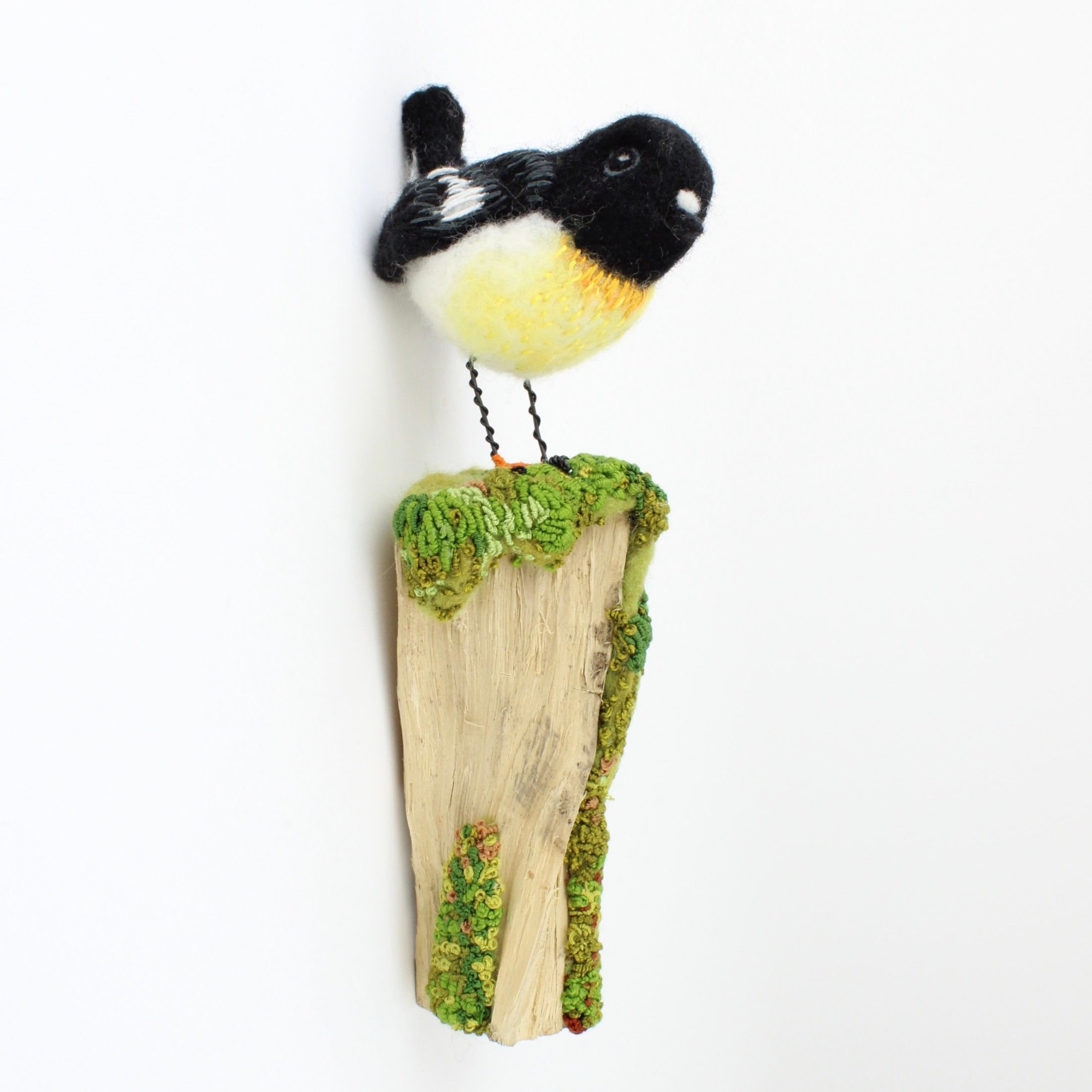 Jenny Pullar’s passion for textiles was sparked when her needlework teacher introduced her to the art of freestyle machine embroidery. Over time, her inspiration has evolved to reflect her interests in the moment—often drawn from her deep appreciation for wildlife. She is particularly captivated by the needle felting process, which transforms simple sheep’s wool into intricate three-dimensional forms using a barbed needle. Jenny describes the process as a meditative beginning with a concept and raw materials which gradually take shape through hours of patient work.