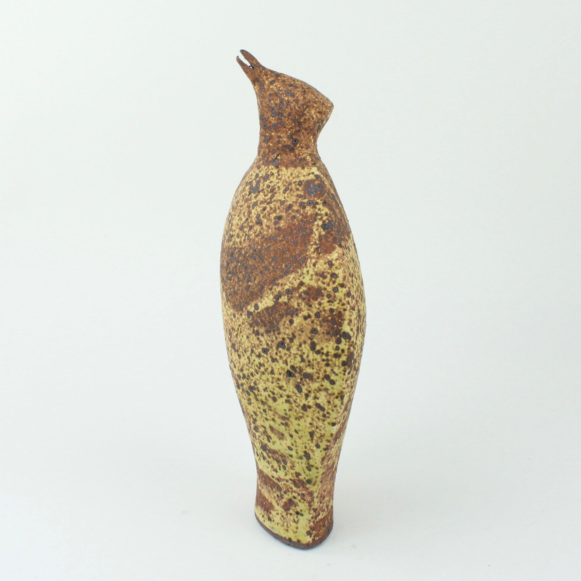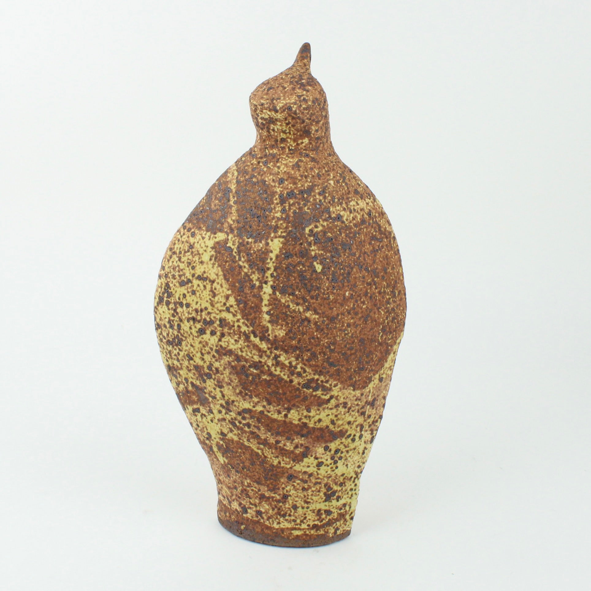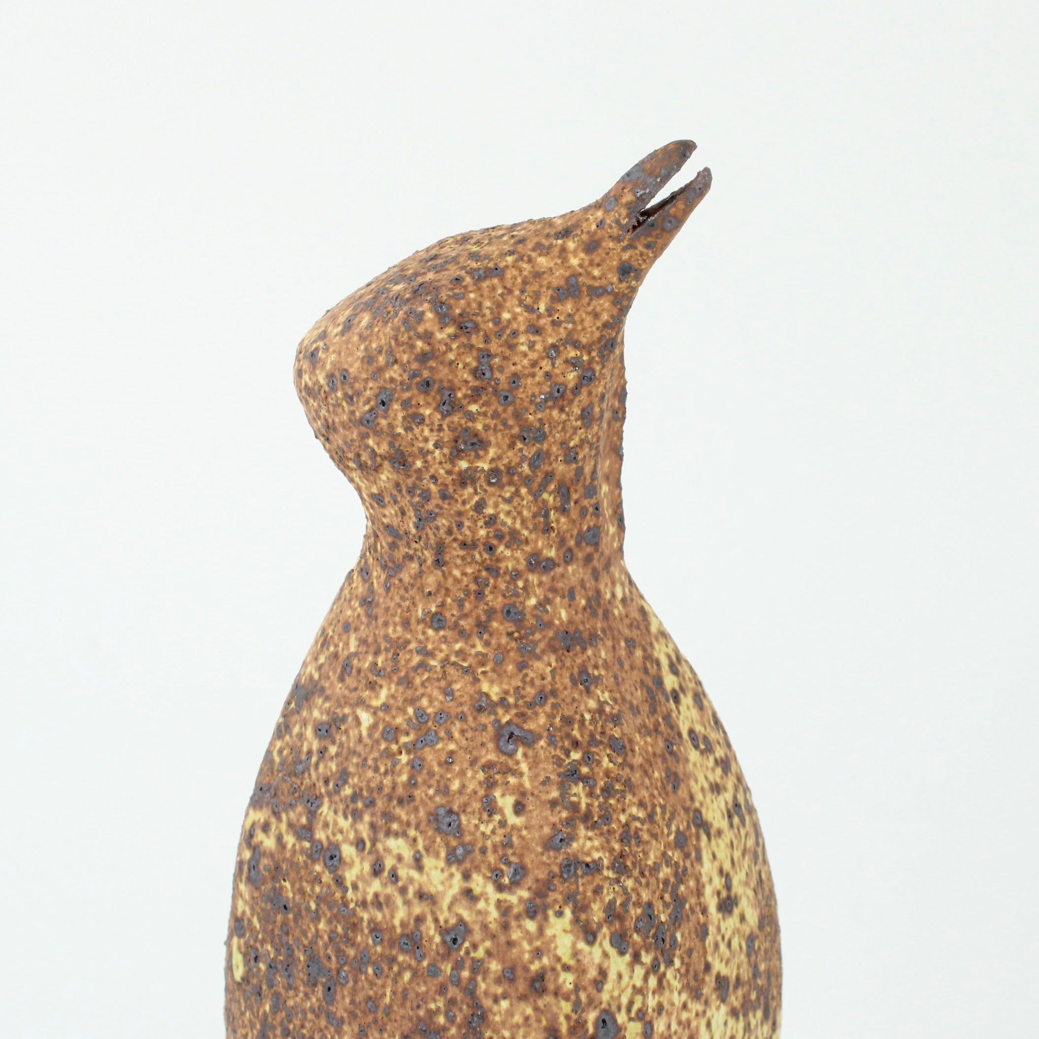 Aimée's birds are coil built from a speckled Australian clay called BRT. They are refined, after the shape has been formed, with a hacksaw blade until they are smooth.