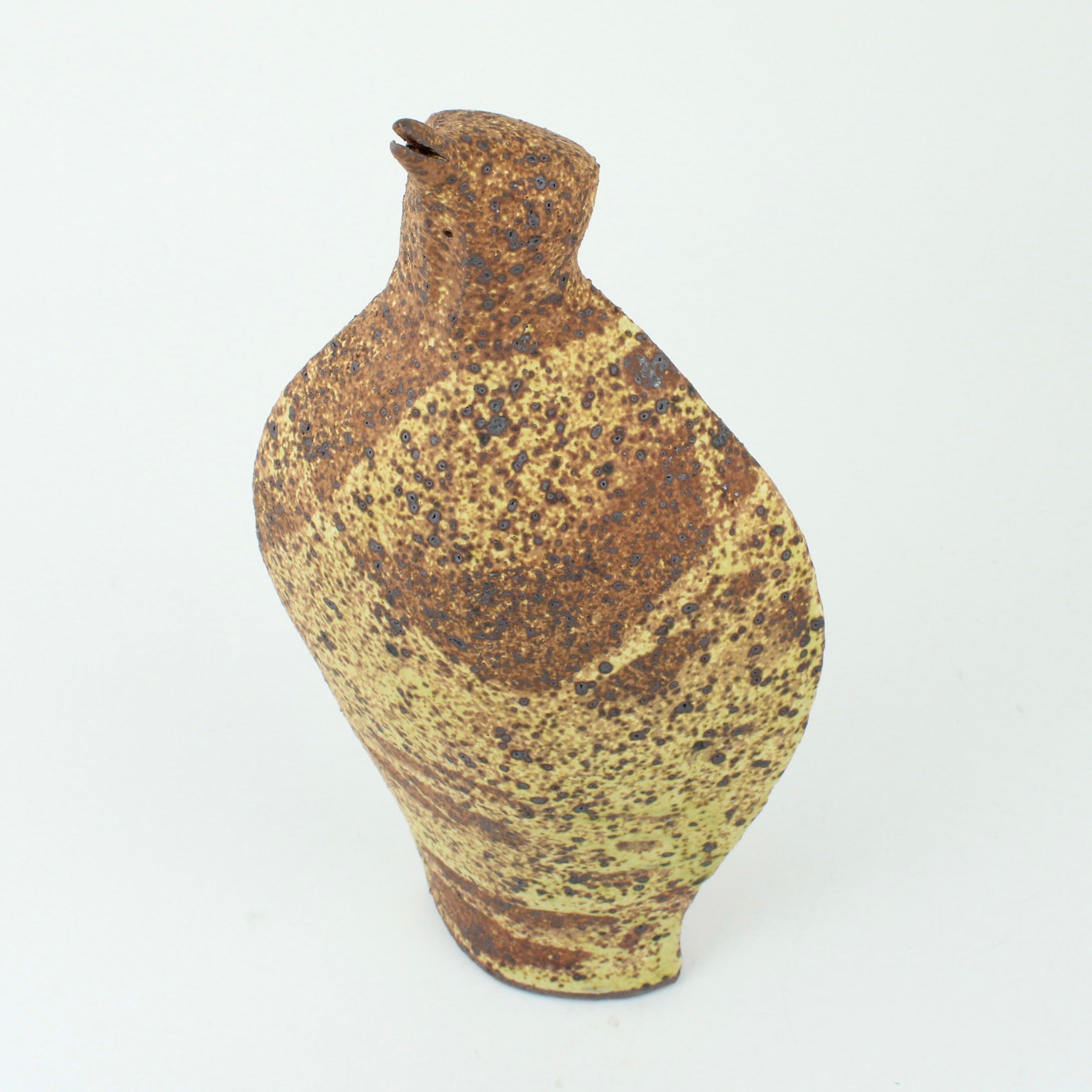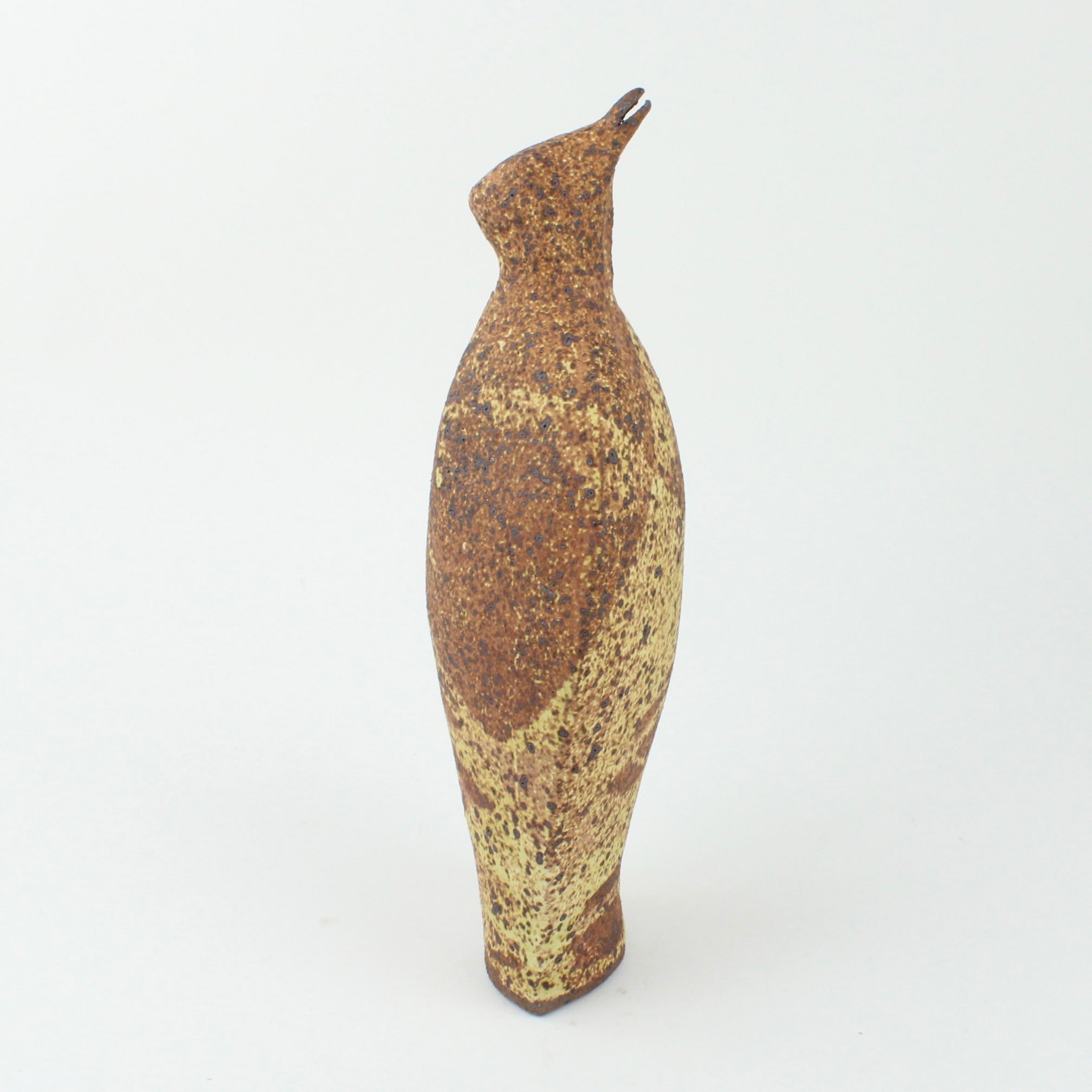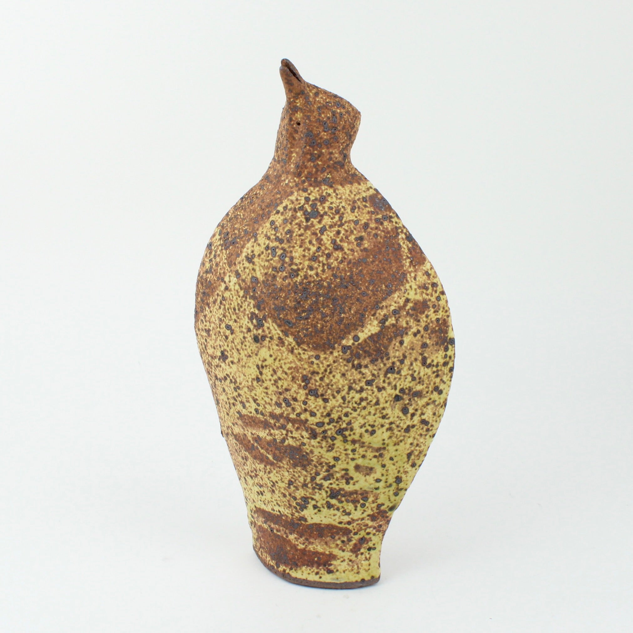 Aimée's birds are coil built from a speckled Australian clay called BRT. They are refined, after the shape has been formed, with a hacksaw blade until they are smooth.
