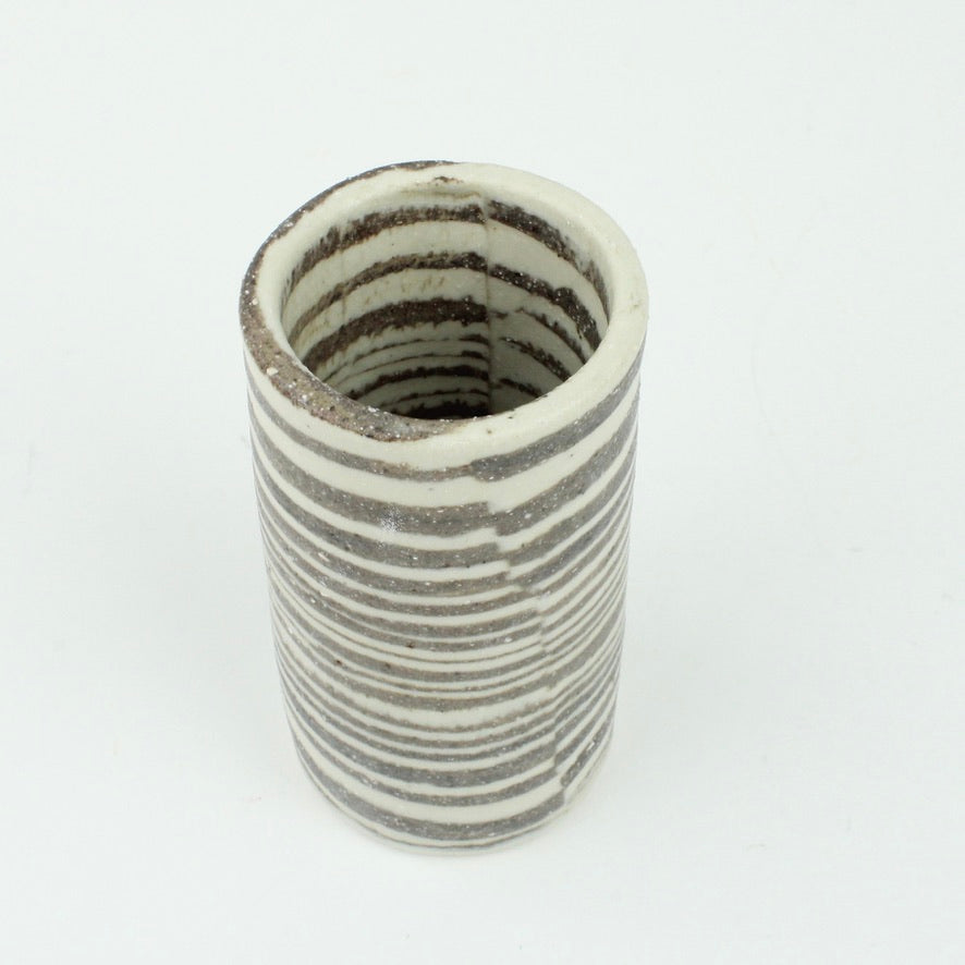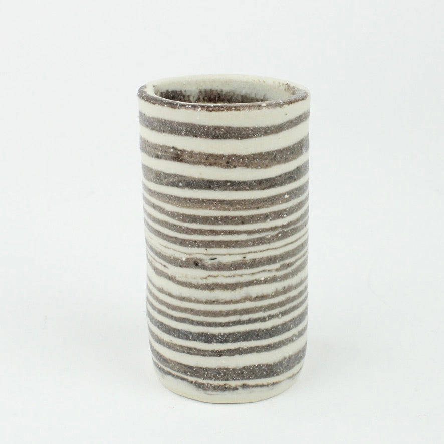 'I love this technique so much that I incorporate pattern making into the entire body of the vessel. The stripes are made directly from the slices off a patterned block of clay.' Alex