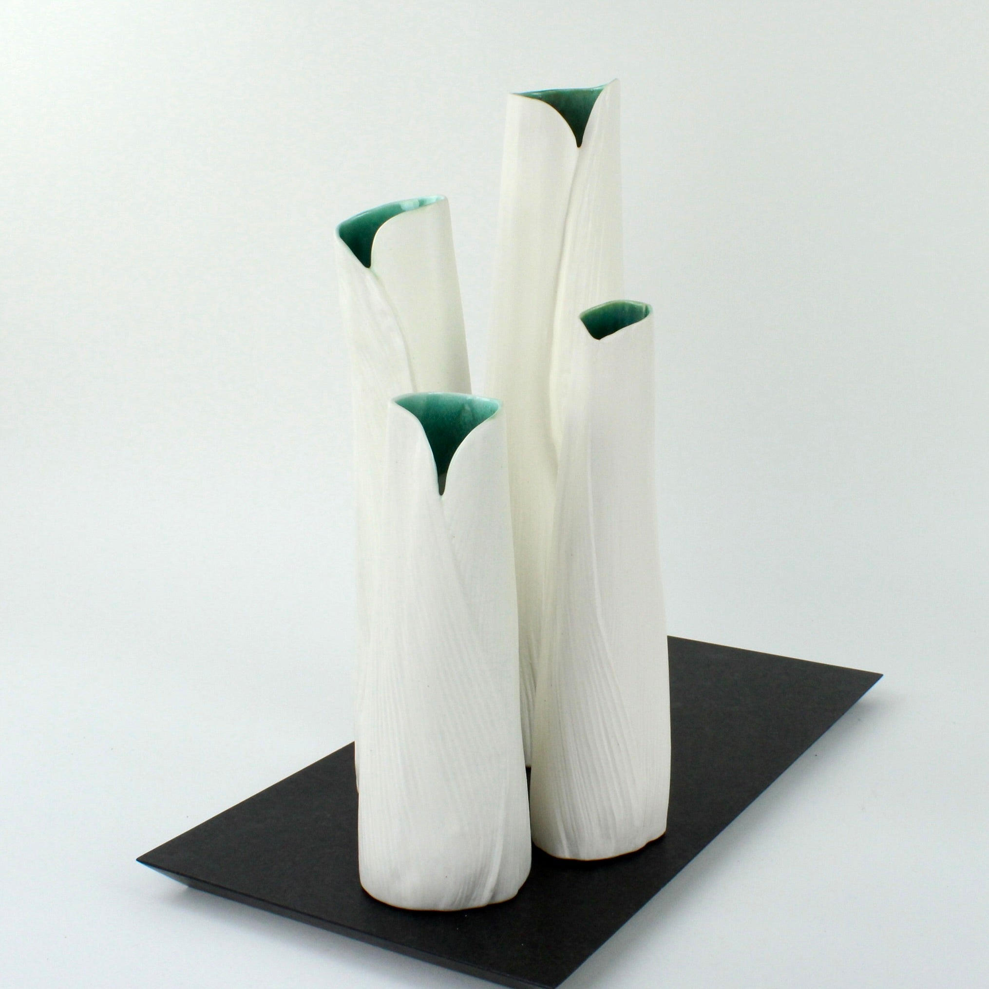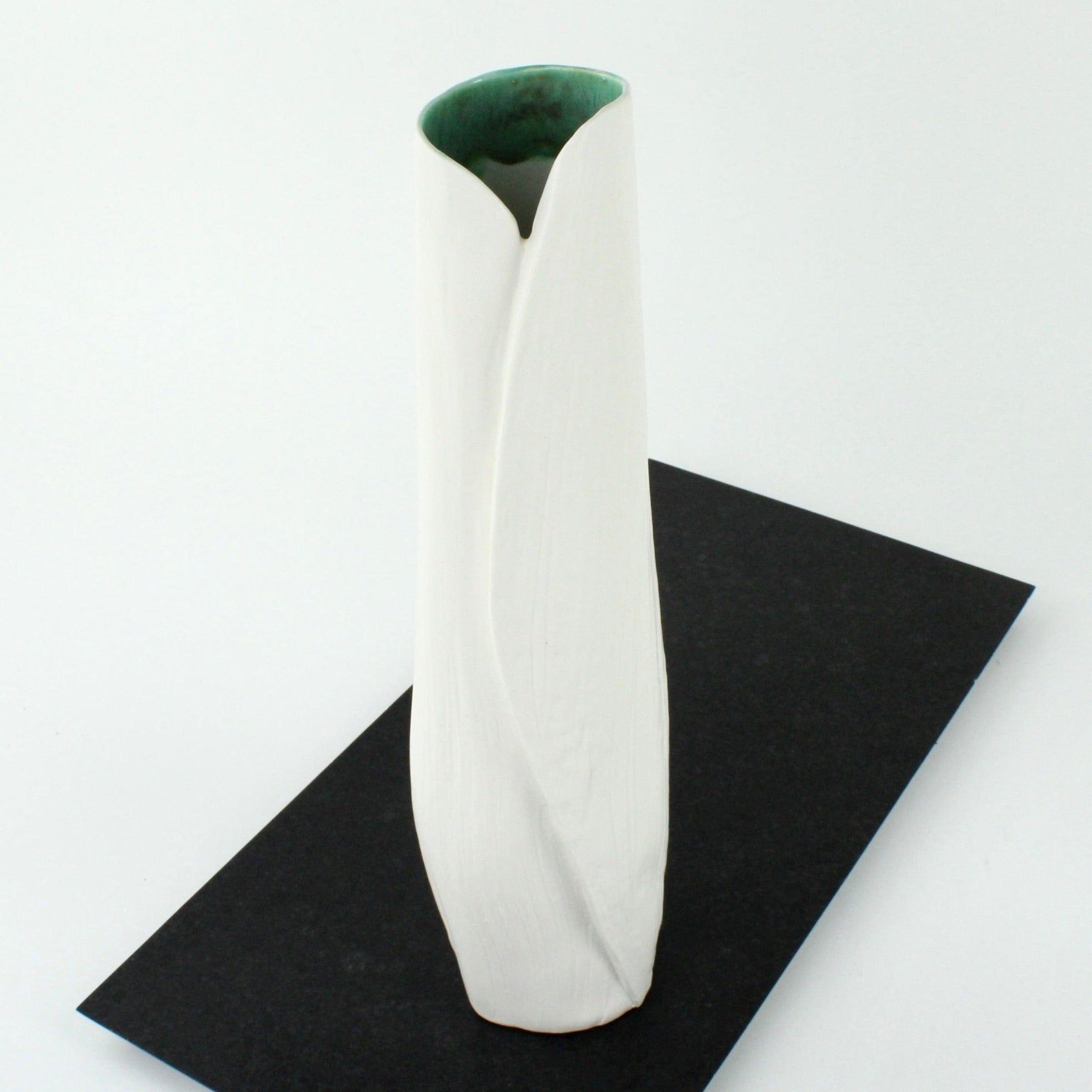 Ceramic vase cast using nikau fronds. Watertight.