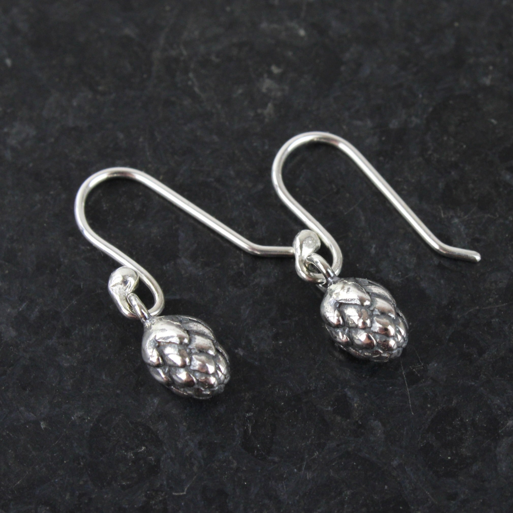 These earrings are inspired by the Norfolk pine needle and represent a tiny new pine needle bud. They were cast in sterling silver and have been slighlty oxidised to bring out the beautiful pattern that nature creates.