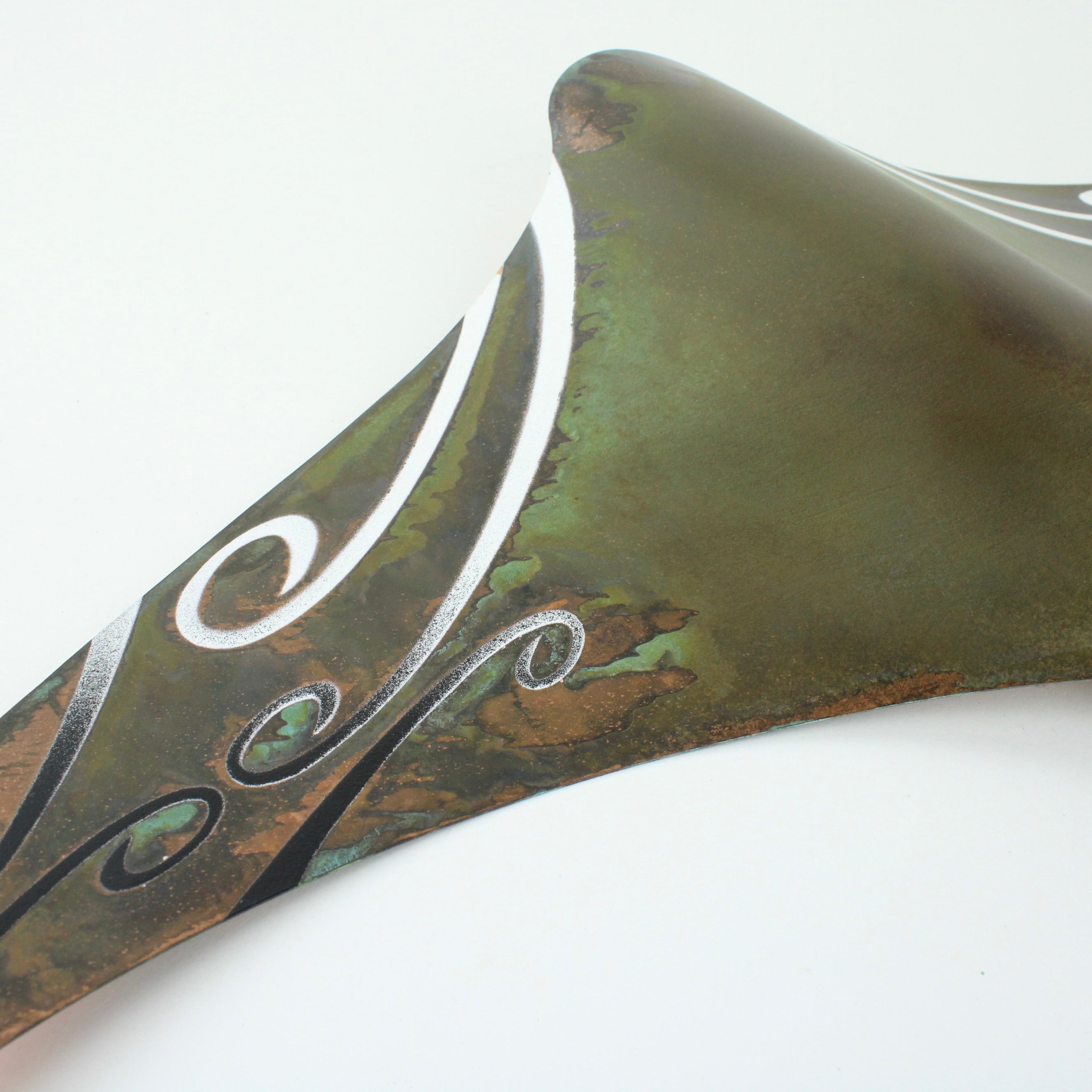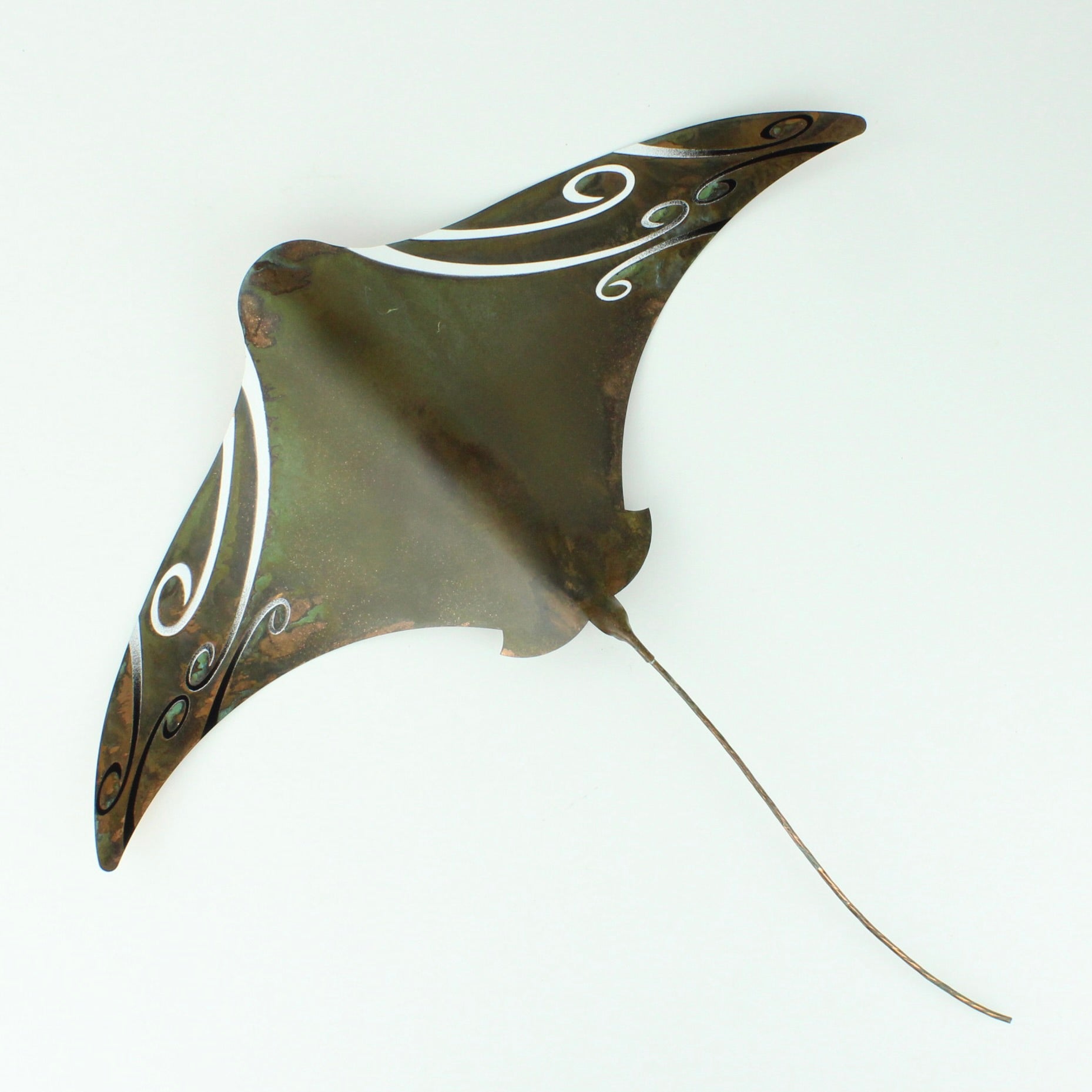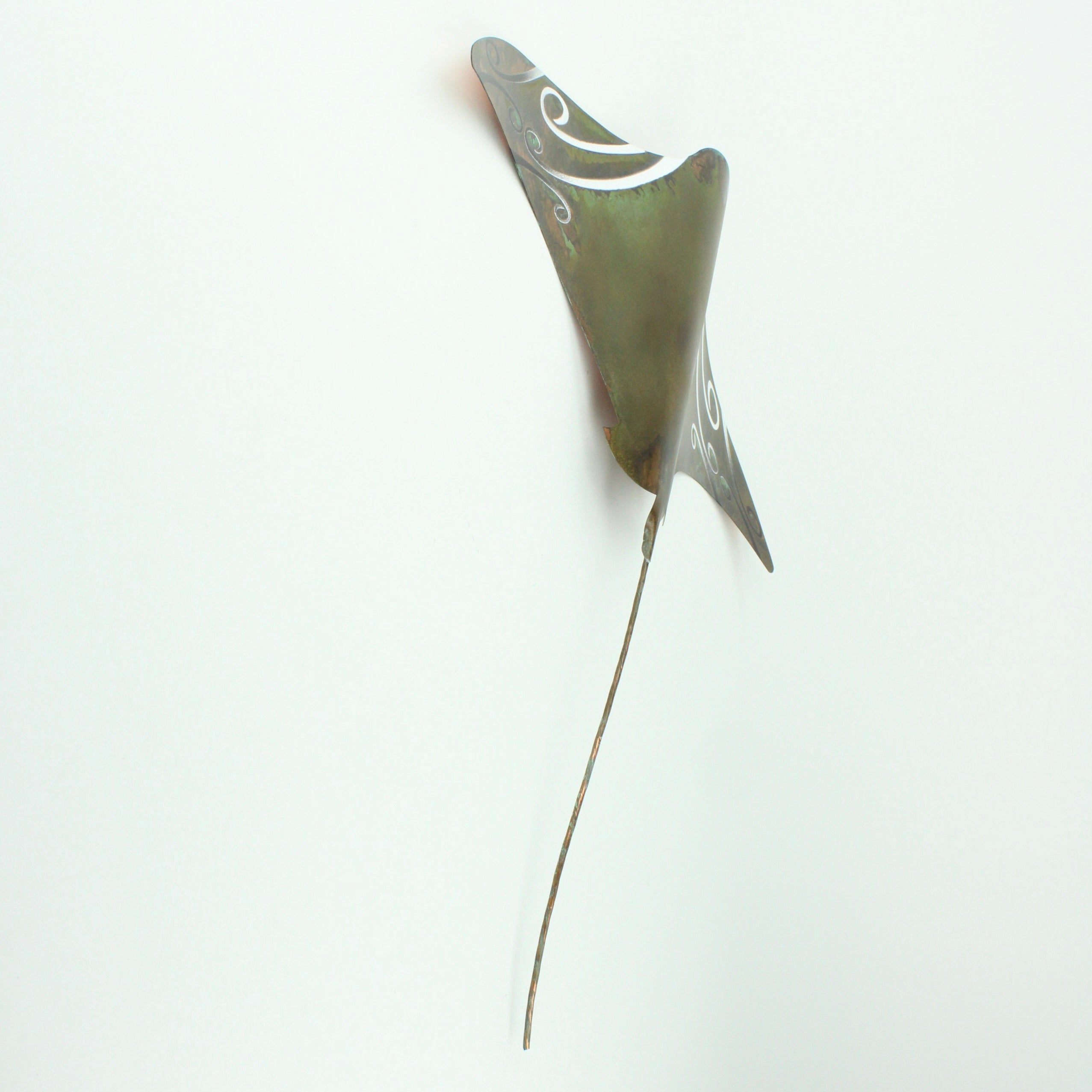 Daniel uses sheet copper to make each wall hung stingray and coats with protective finish