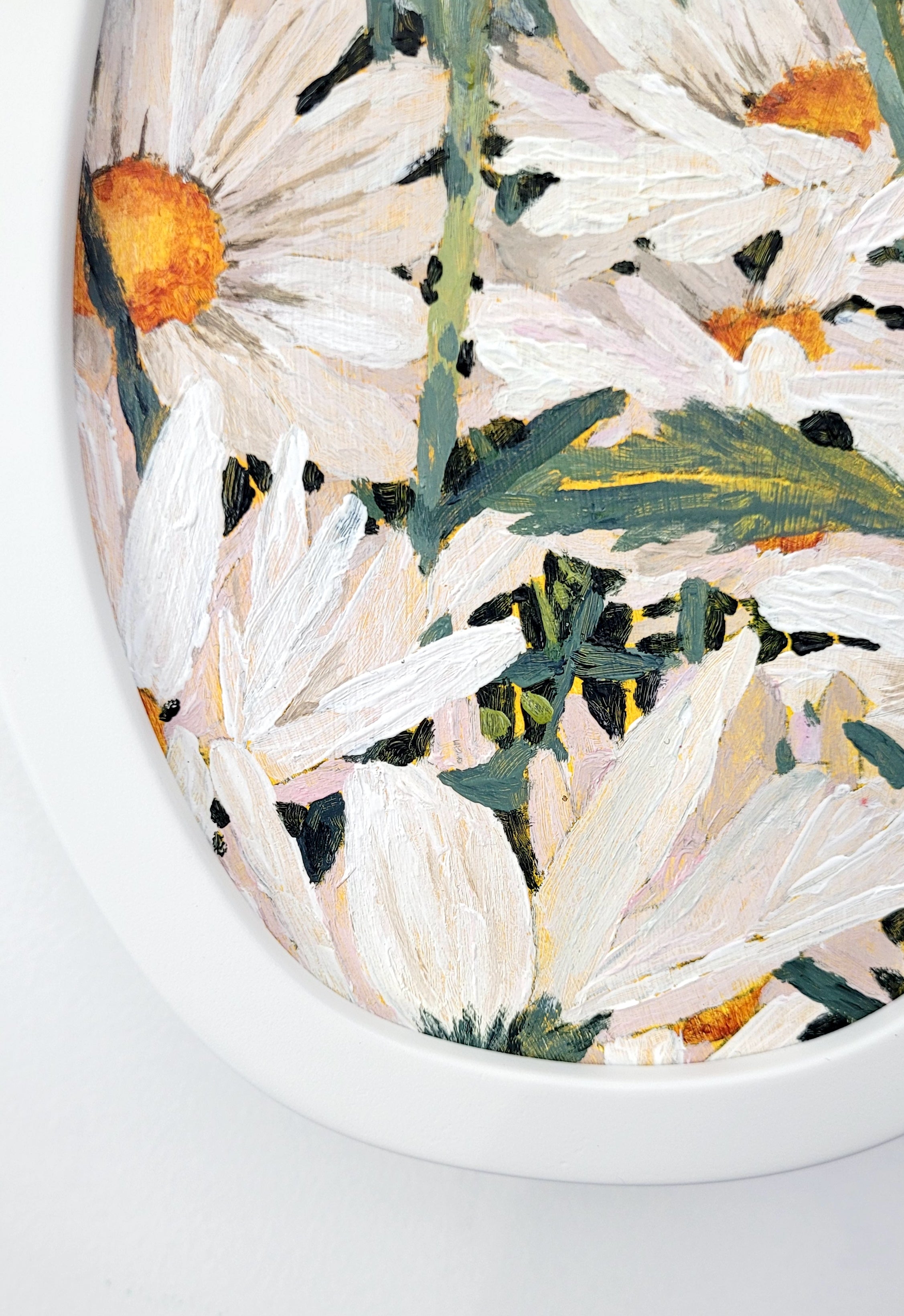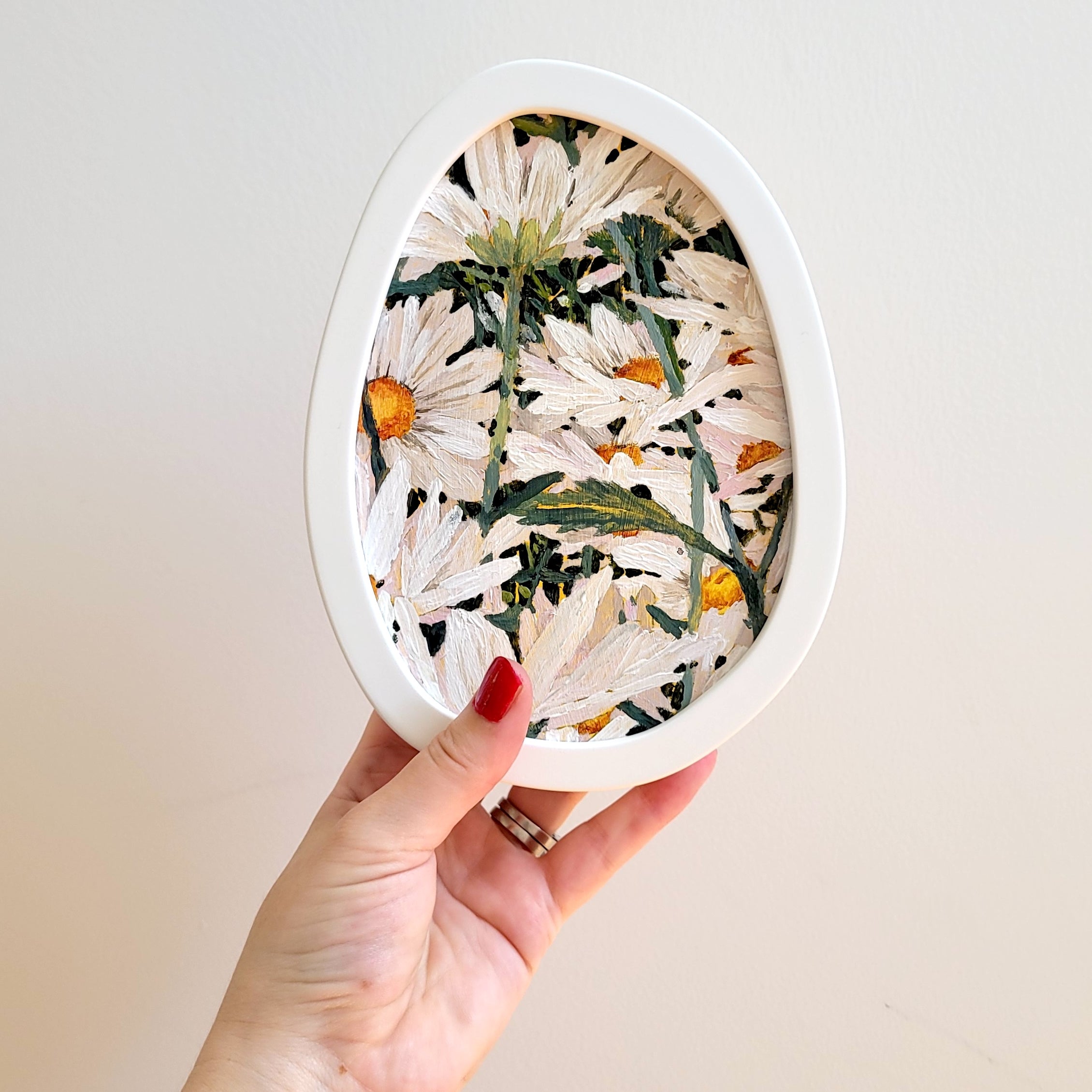 Framed in a custom made ‘wobbly’ frame in white with matt finish.