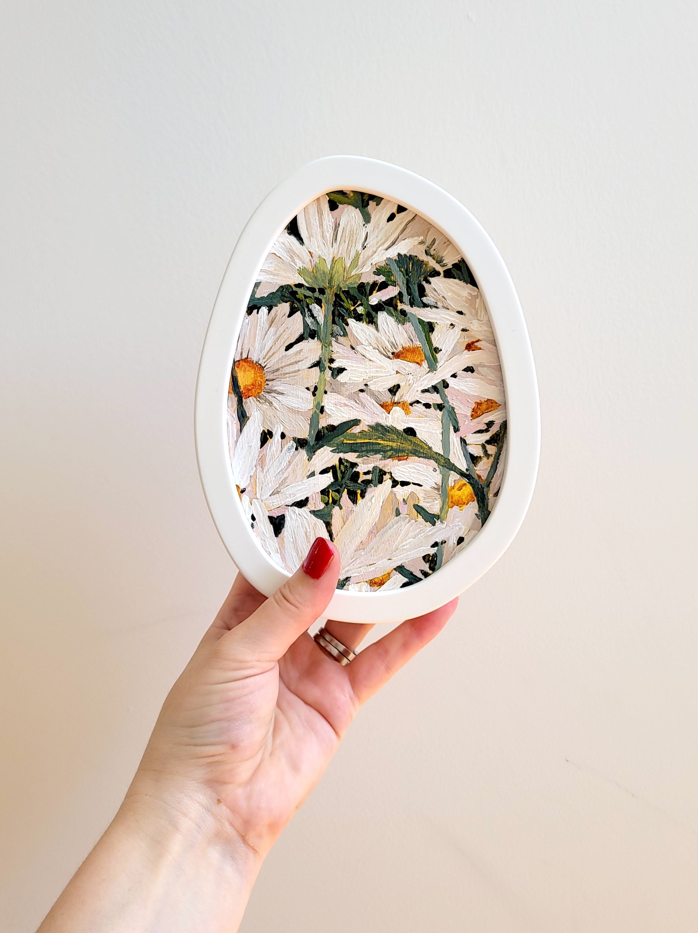 ‘The wobbly frame is based on a hand-drawn circle - no two are exactly alike’ Frames are 30mm in depth and come ready to hang.