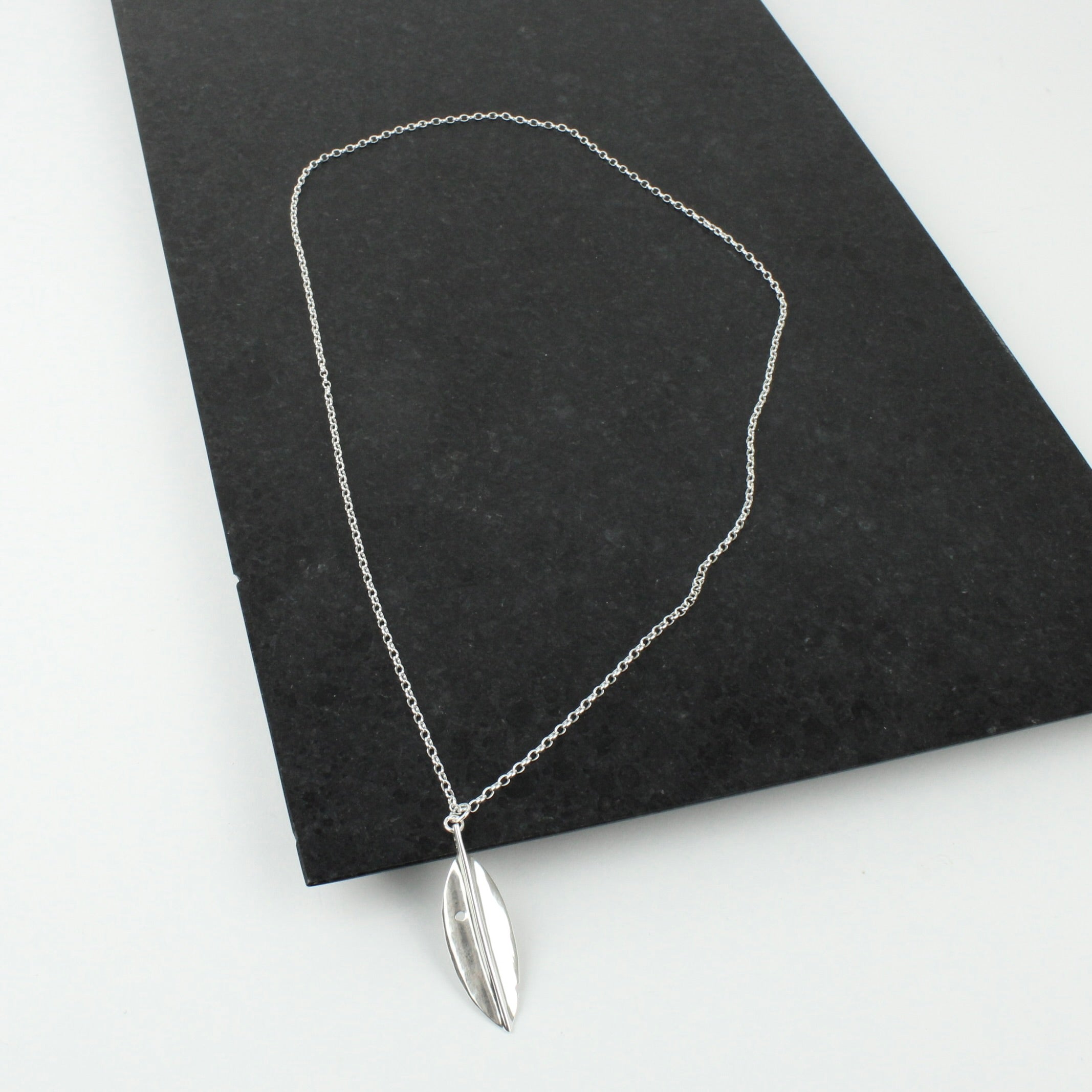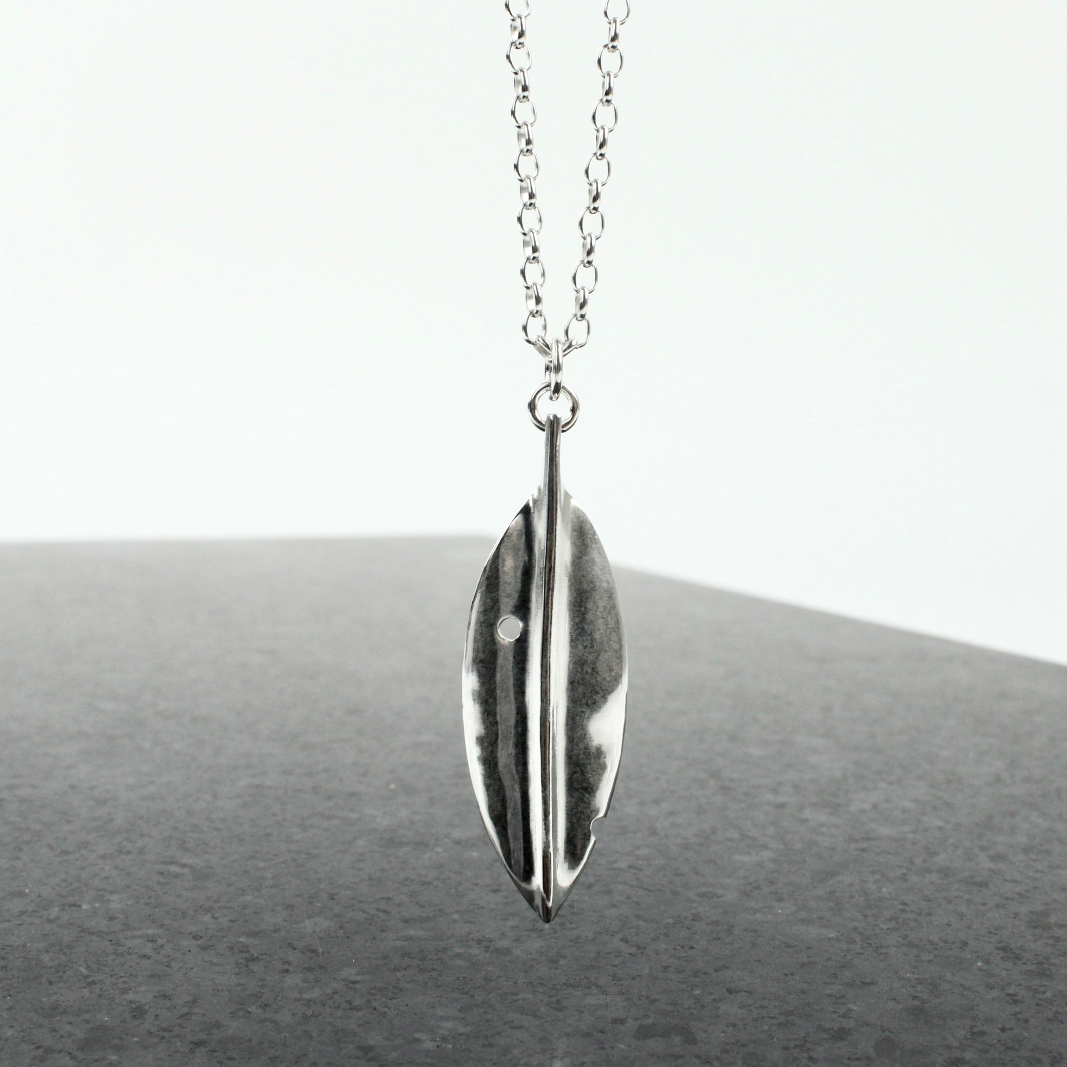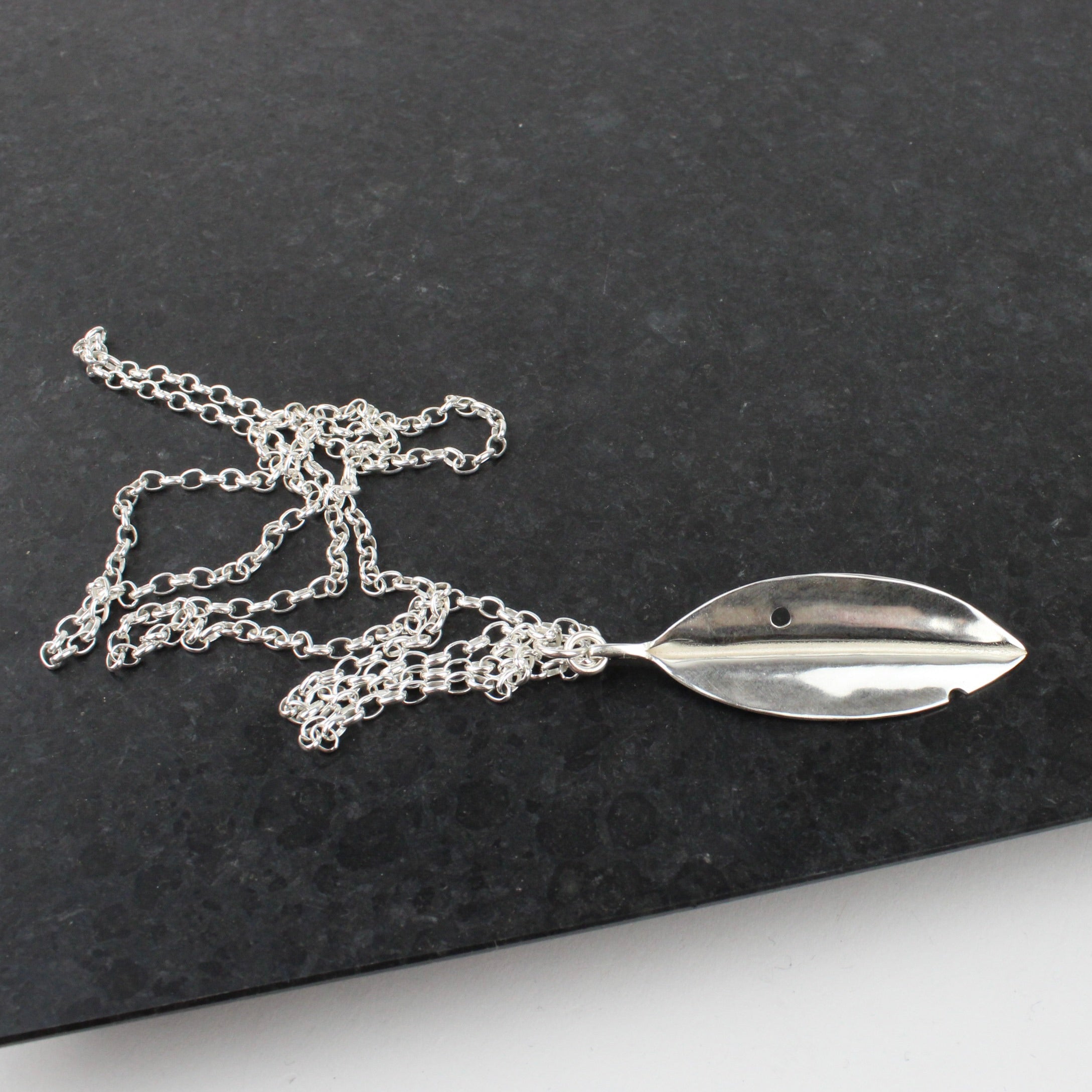 50mm sterling silver fold formed leaf on 700mm belcher chain