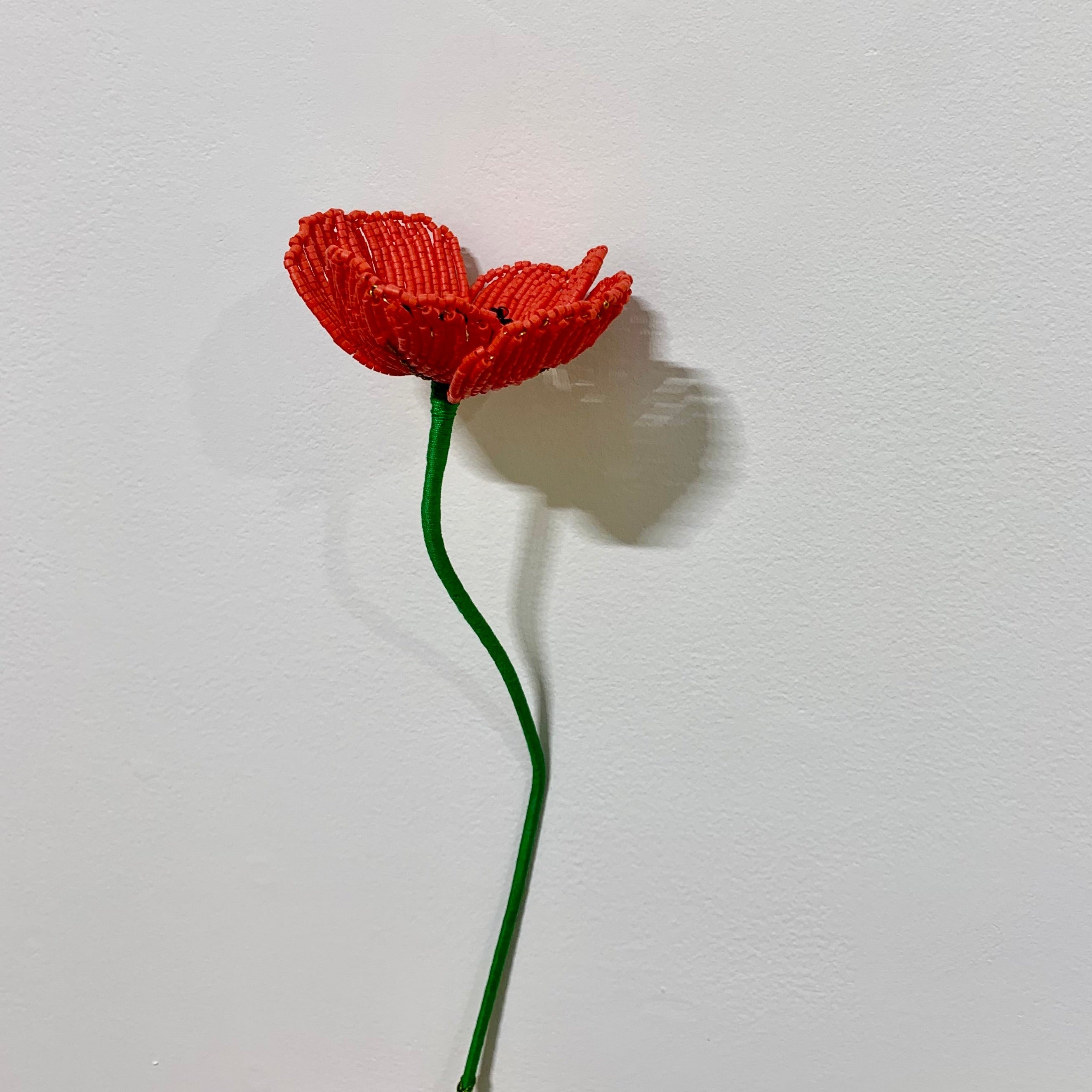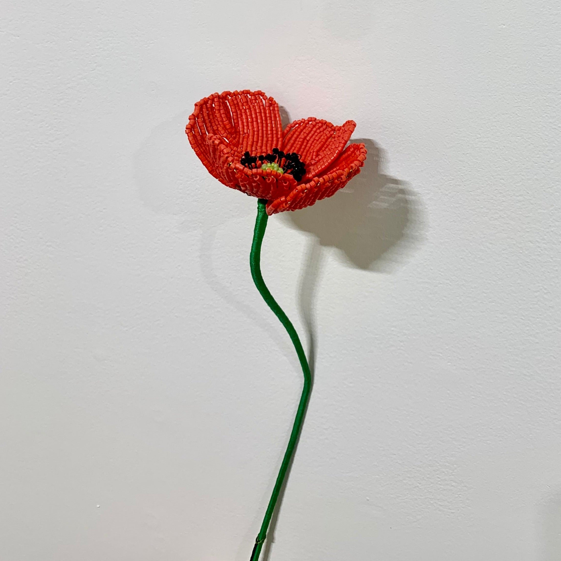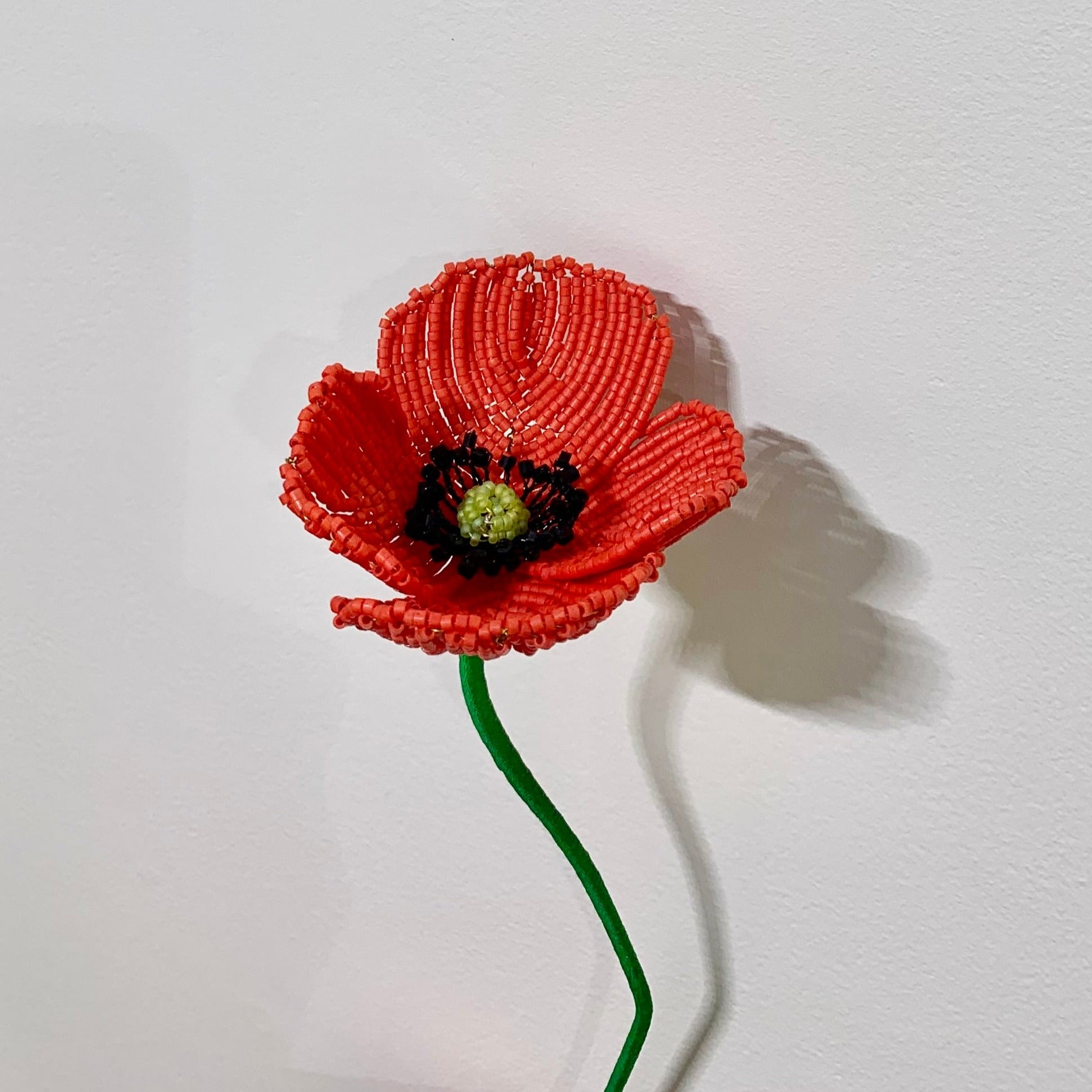Inspired by some ancient photographs of 19th-century French funeral wreaths adorned with intricate beadwork, Hollie Ryan embarked on a journey to explore their history and the beauty and transience of nature through intricate glass and wire botanical sculptures. Her art invites reflection on emotional resonance, memory, and the enduring power of botany.