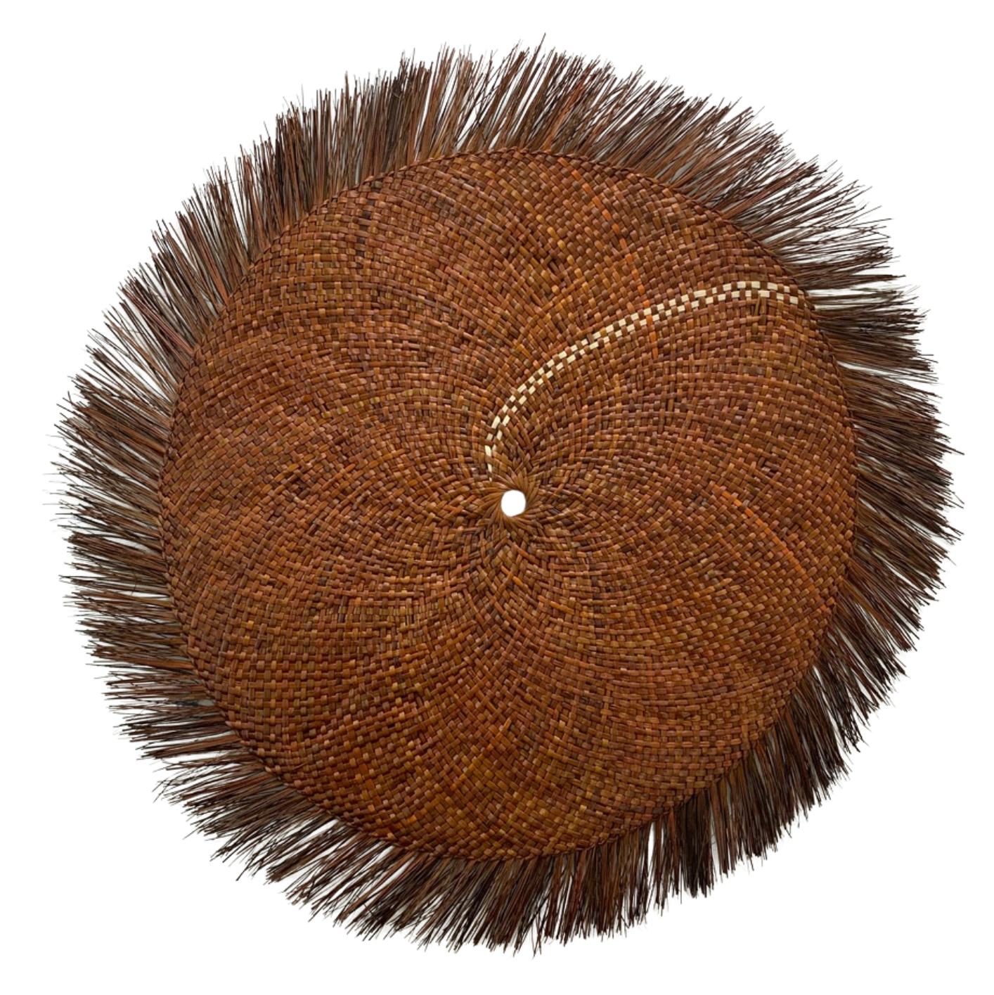 Bernadette Ross is a harakeke (flax) weaver whose practice is deeply grounded in the natural world and the traditions of raranga. Living near the bush and sea, she draws inspiration from the textures, colours and rhythms of her environment. Raised on farmland, Bernadette maintains a strong connection to the whenua, which informs her approach to hand-dyeing and weaving. Each piece she creates is a reflection of her surroundings and a continuation of a rich cultural lineage.