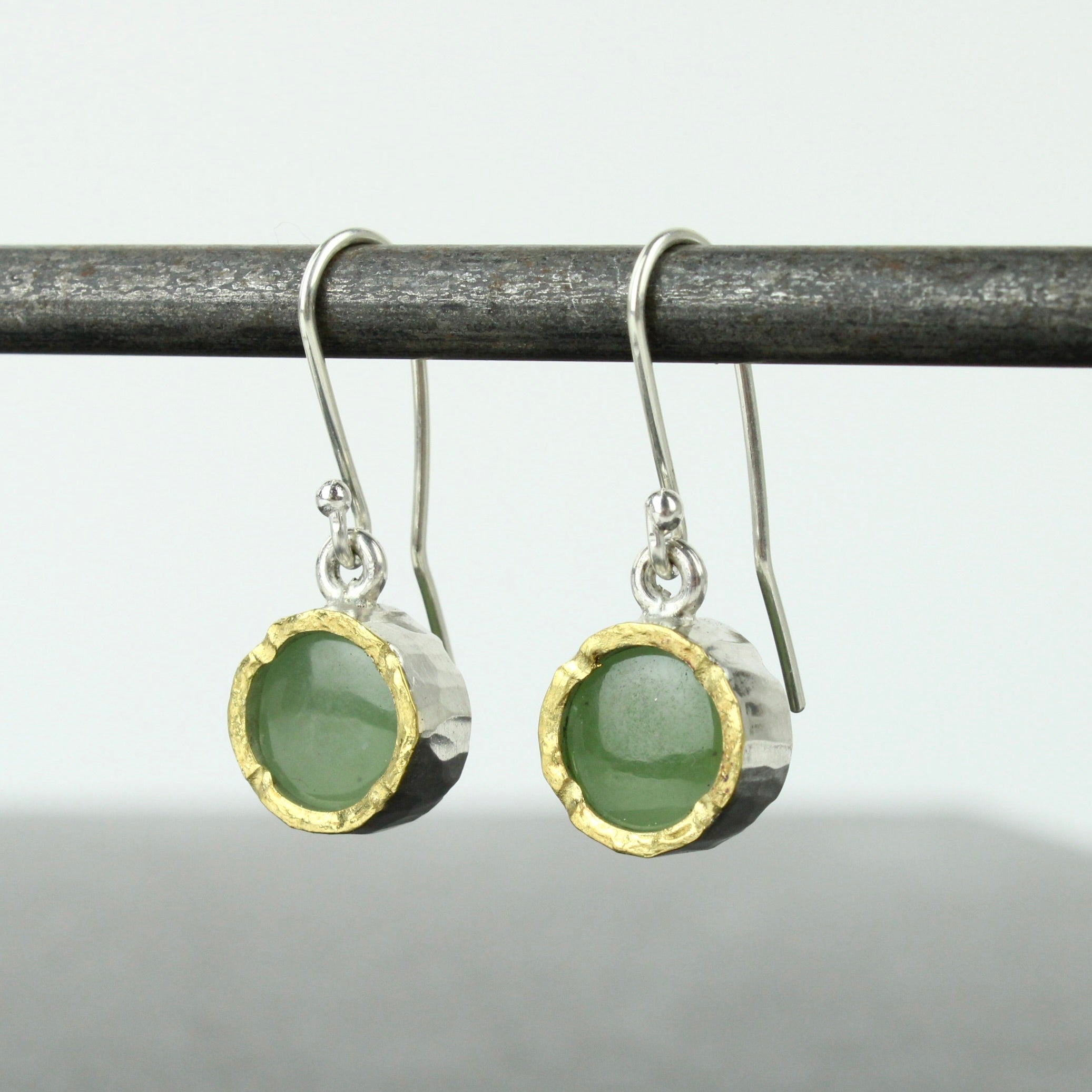 New Zealand greenstone (pounamu) set in sterling silver with a solid 22ct gold edge