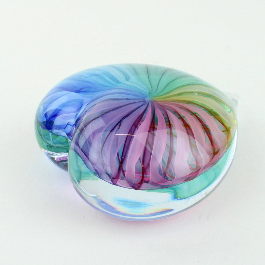 Justin Culina is a glass artist whose practice blends traditional craftsmanship with a contemporary sensibility. After studying Glass Production and Design, Justin honed his skills alongside both New Zealand and international artists, developing a distinctive approach to ancient techniques such as cane roll-ups, murrine, incalmo, filigree, and latticino. His work is deeply influenced by his connection to nature, particularly the coastal landscapes that inspire his forms and colour palettes. Justin's work continues to explore the expressive potential of glass with a deep respect for the material and the natural world.