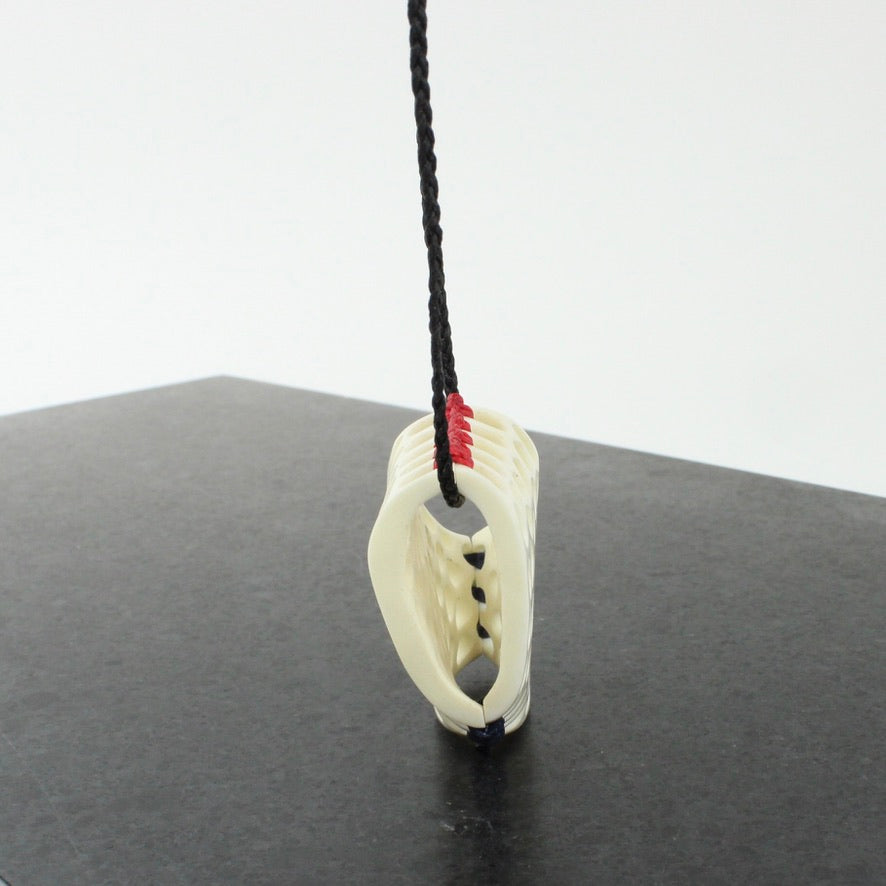 55mm H x 70mm W x 25mm D pendant on an adjustable braided cord